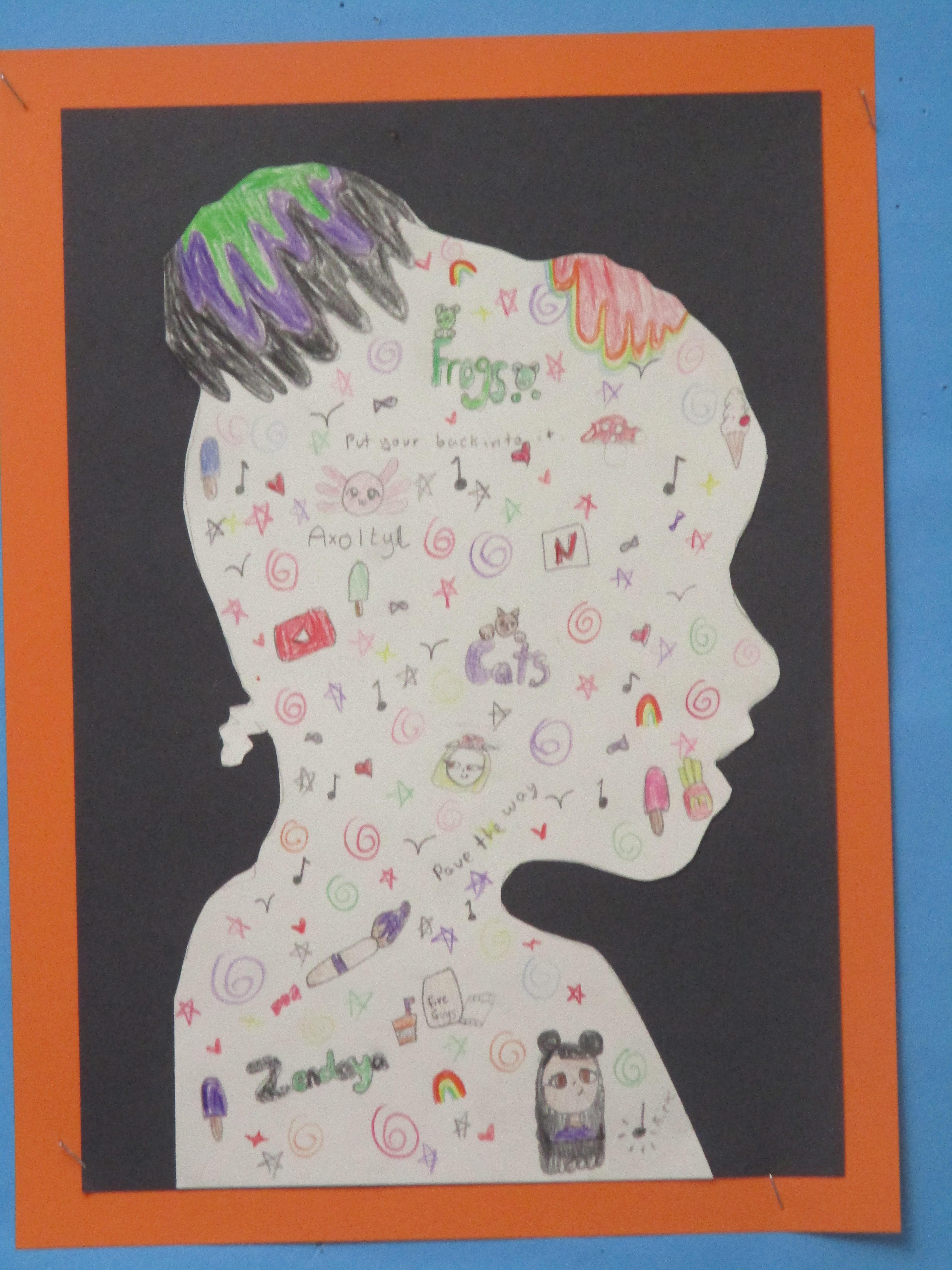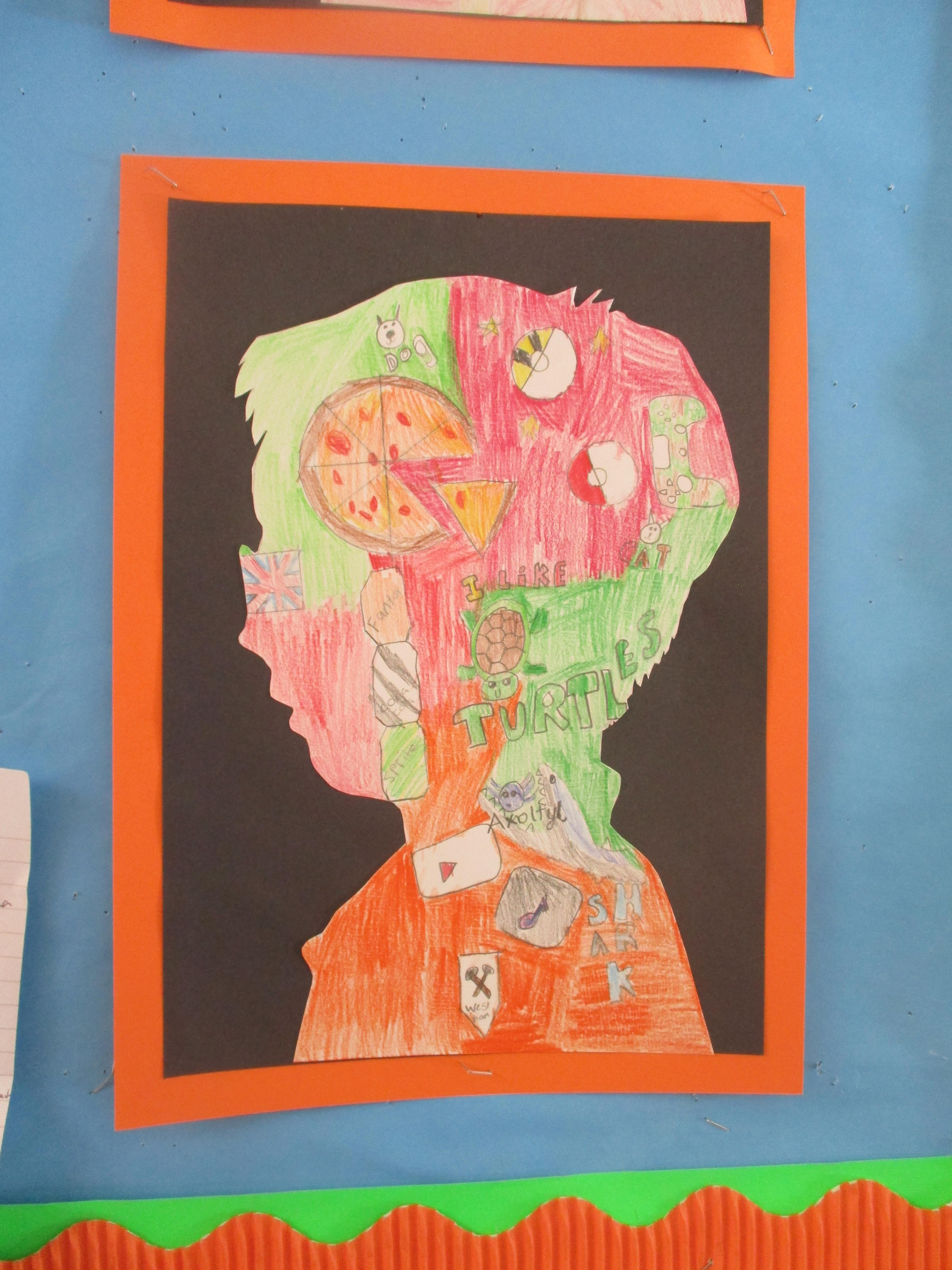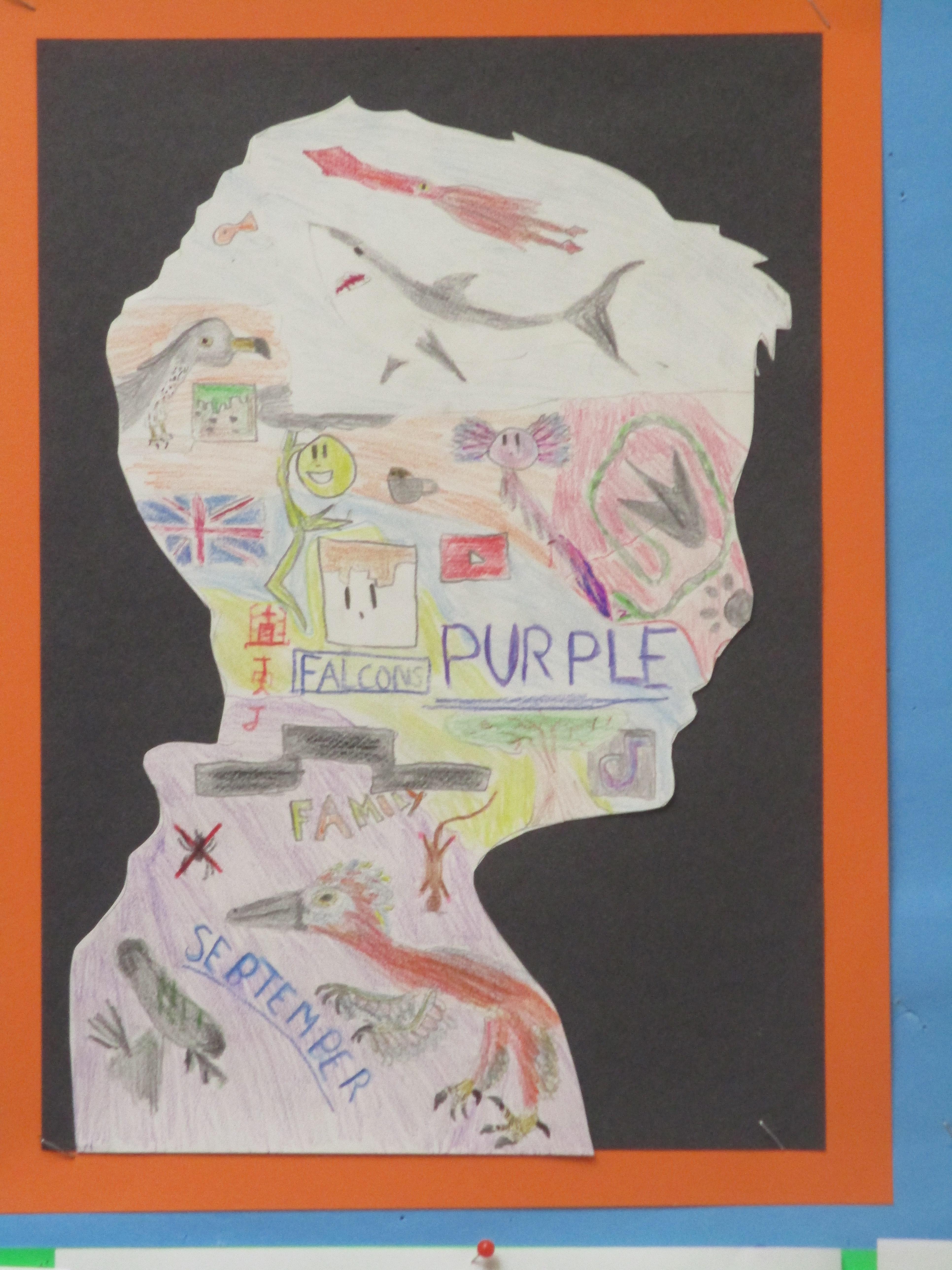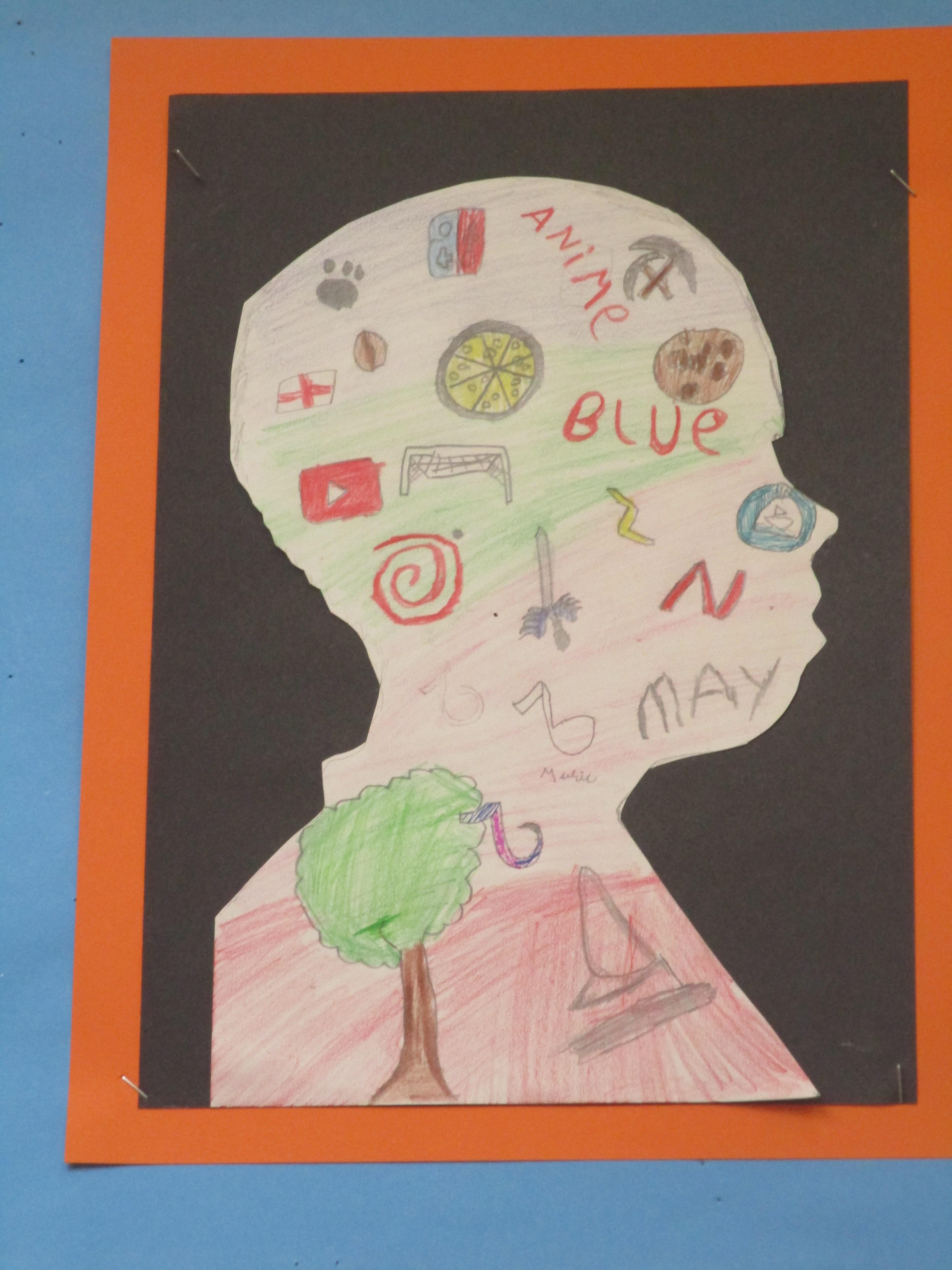 Also below our our completed silhouette portraits. Each one contains pictures of the things which are important to us, so they are very personal. Can you tell whose is whose?