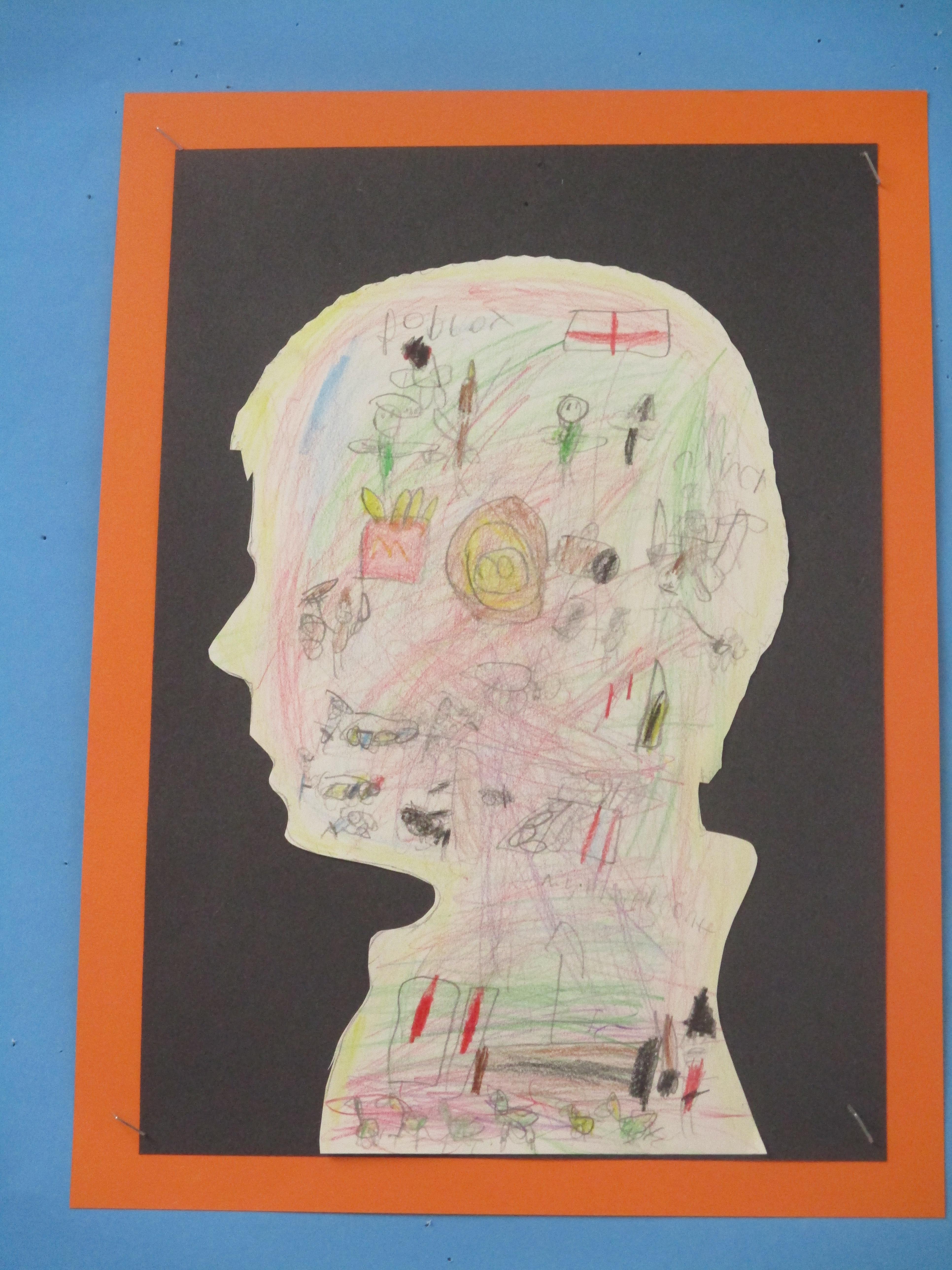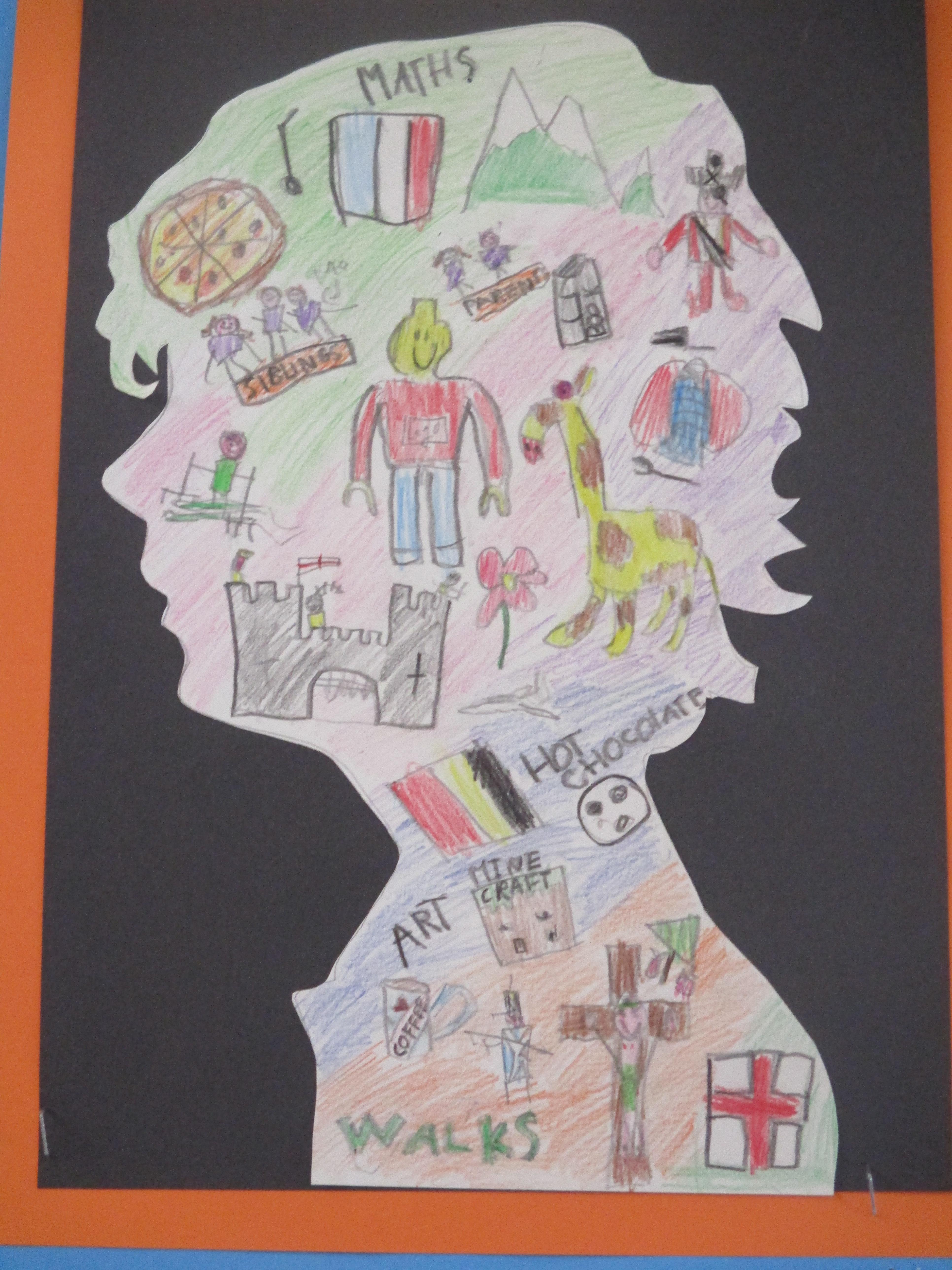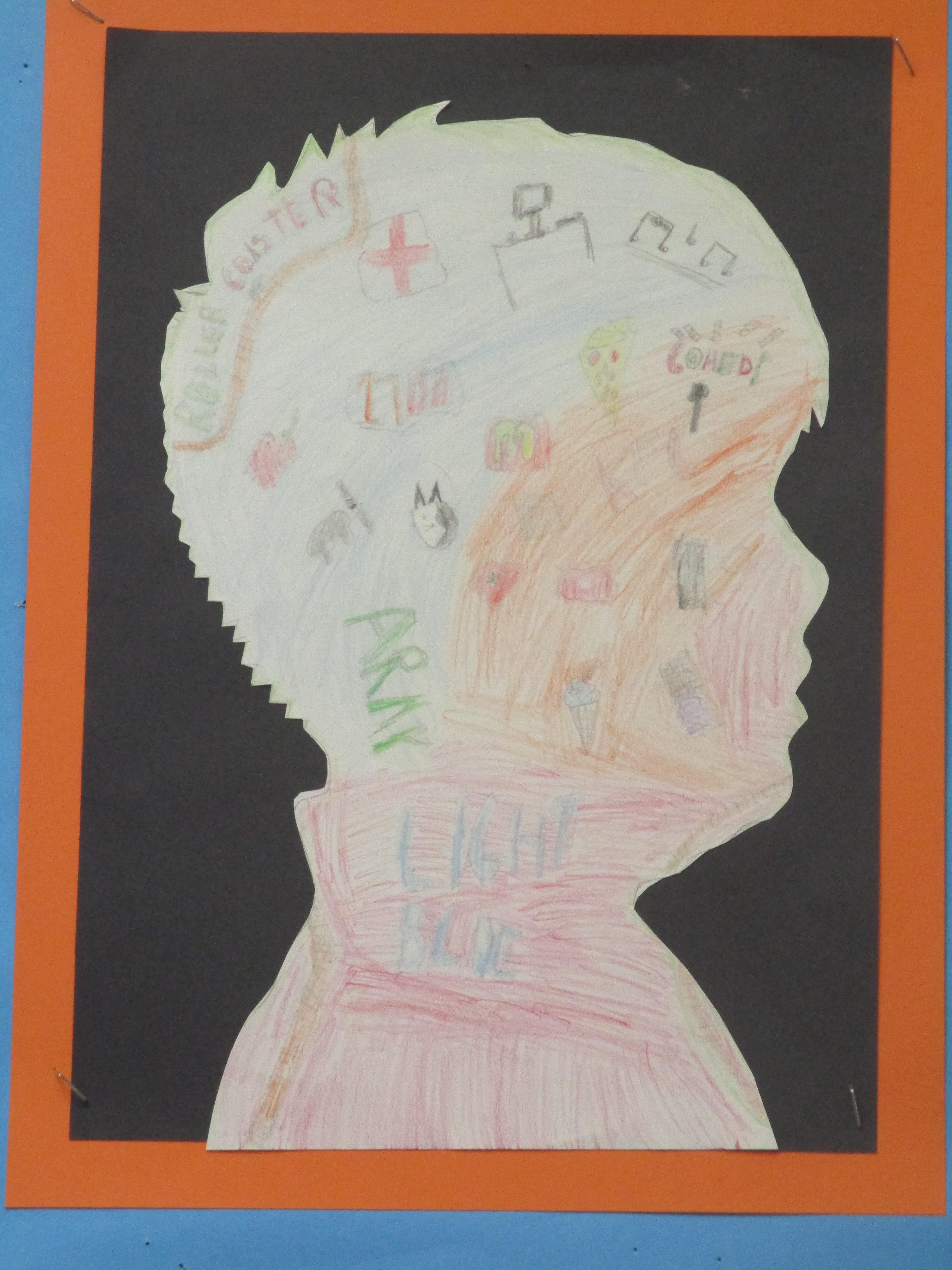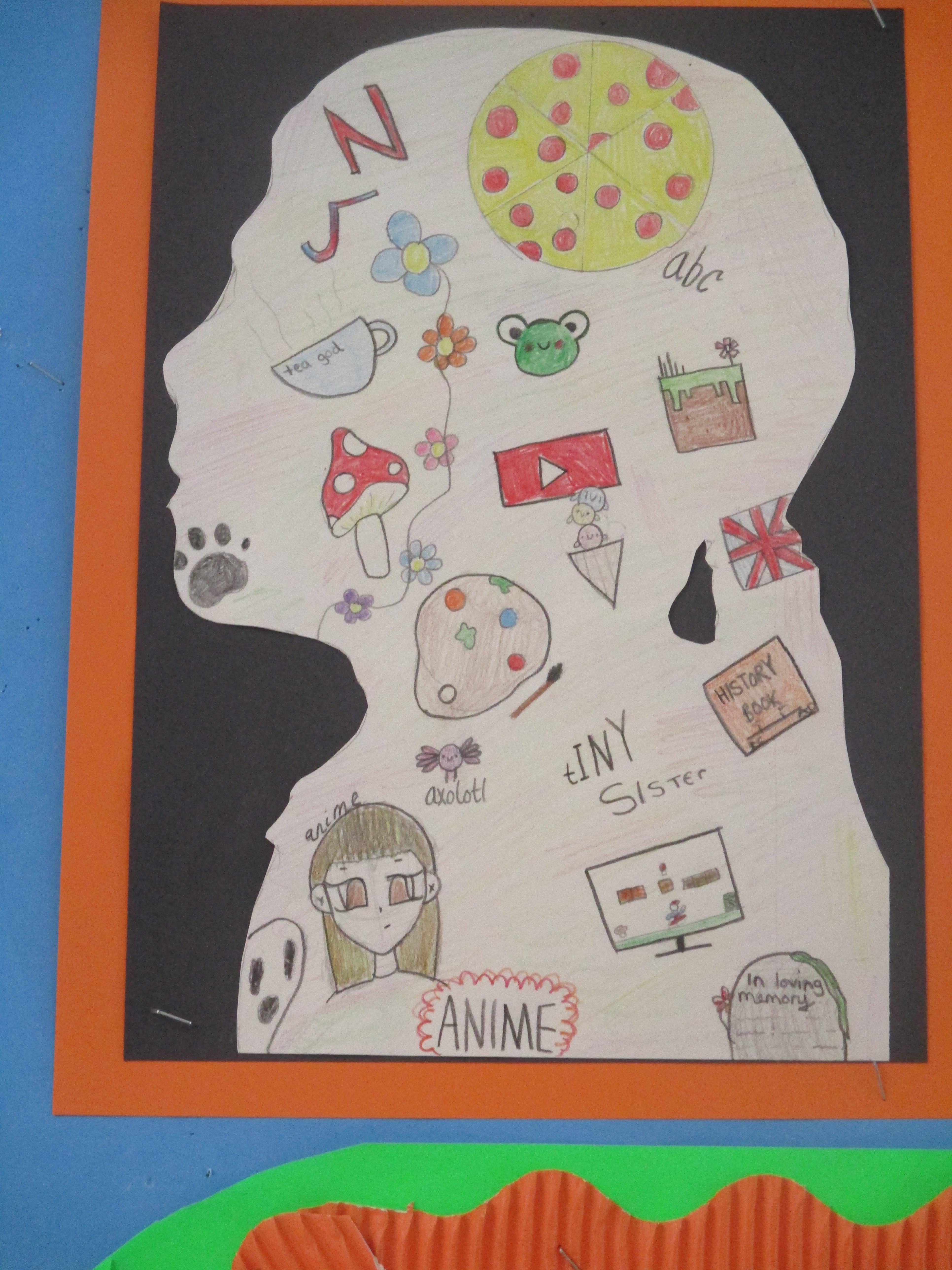 Also below our our completed silhouette portraits. Each one contains pictures of the things which are important to us, so they are very personal. Can you tell whose is whose?