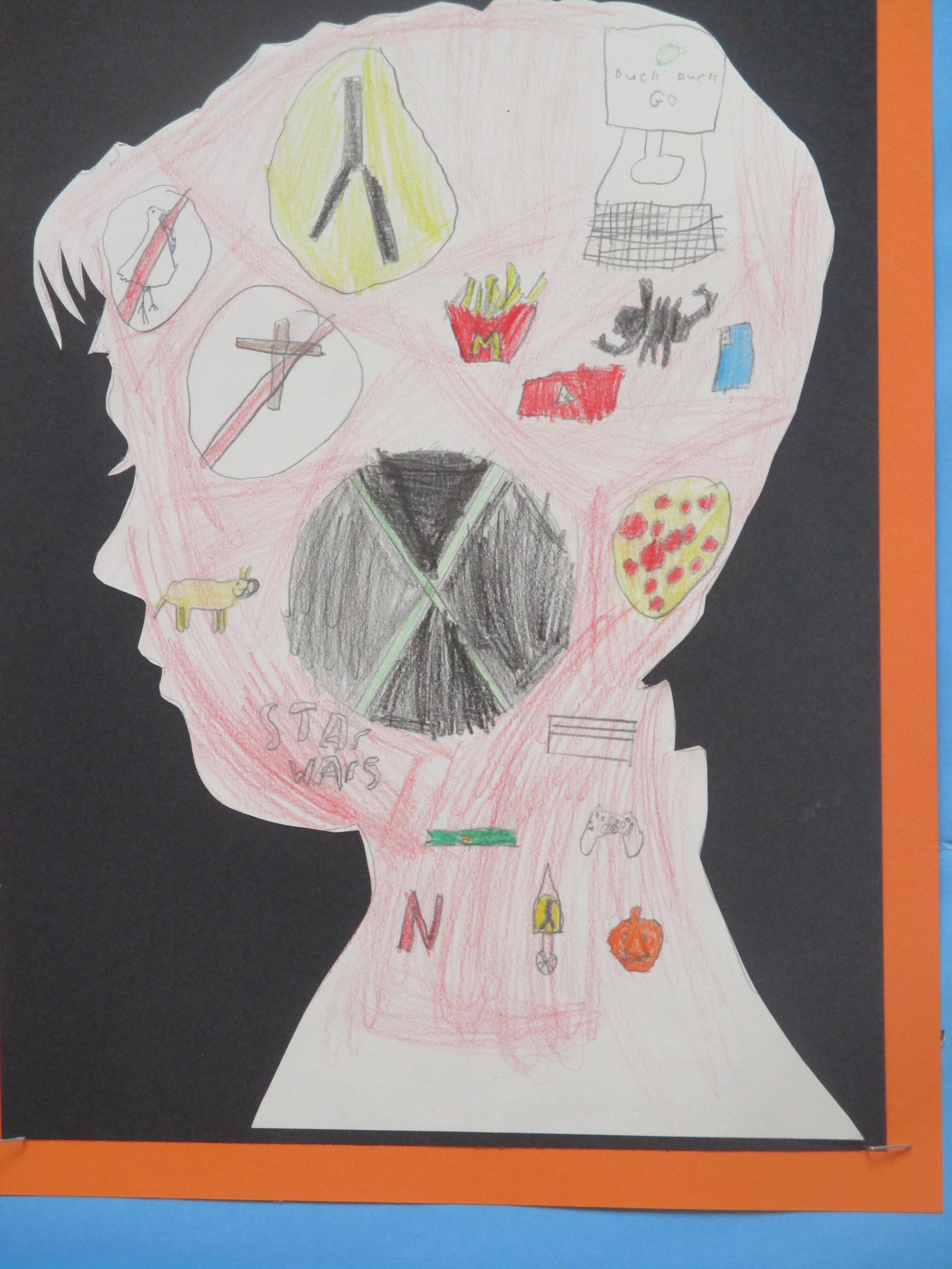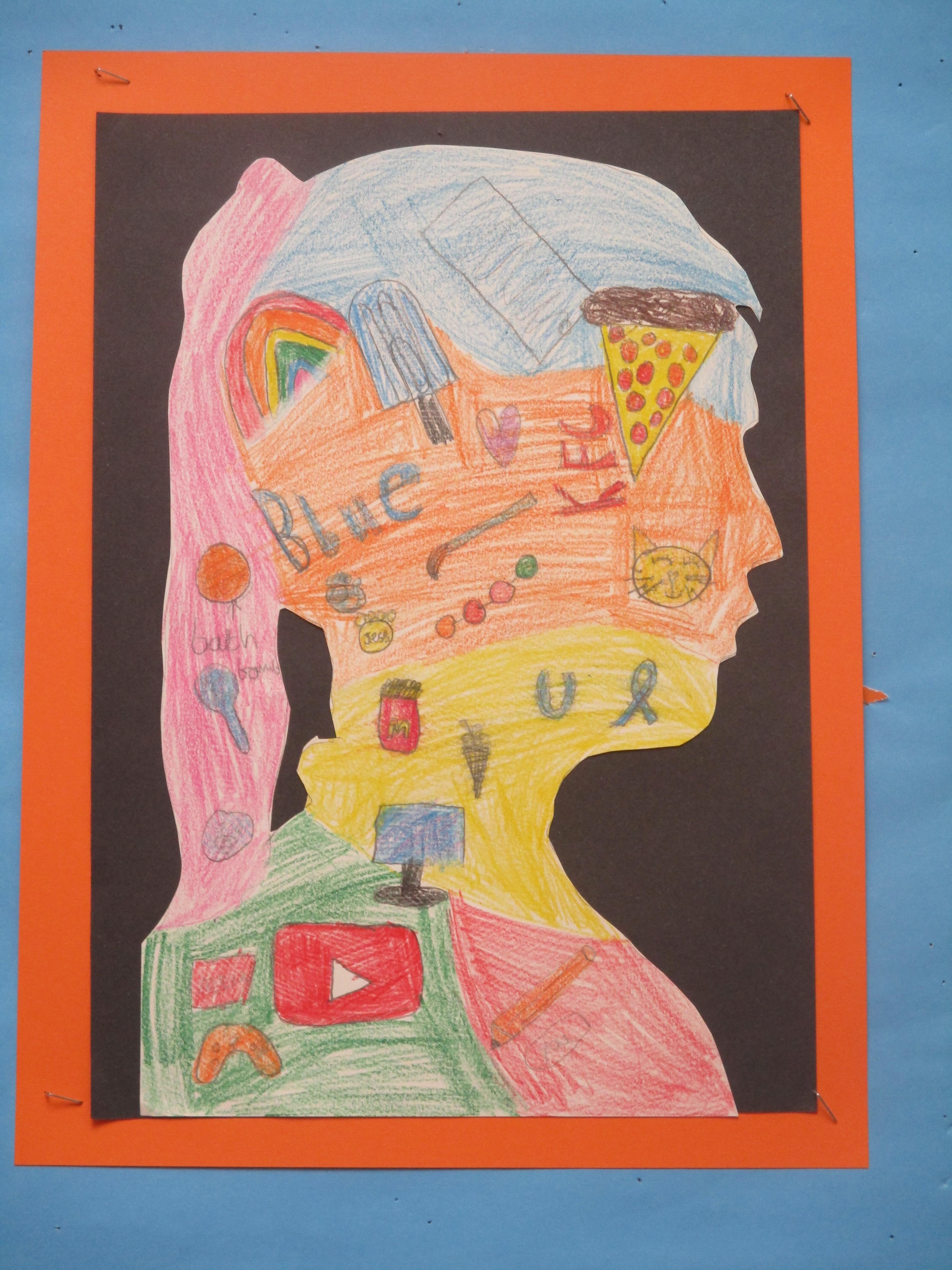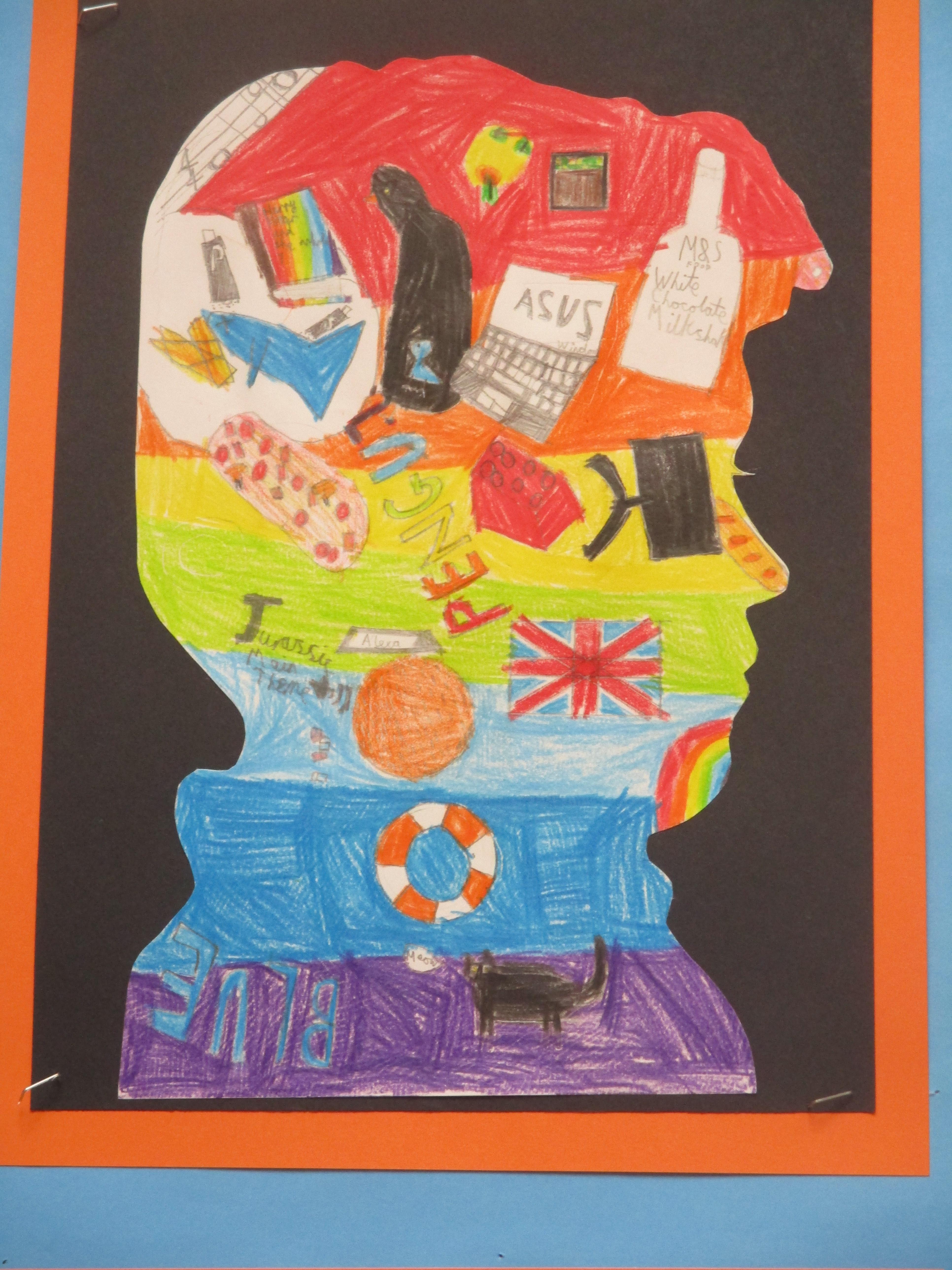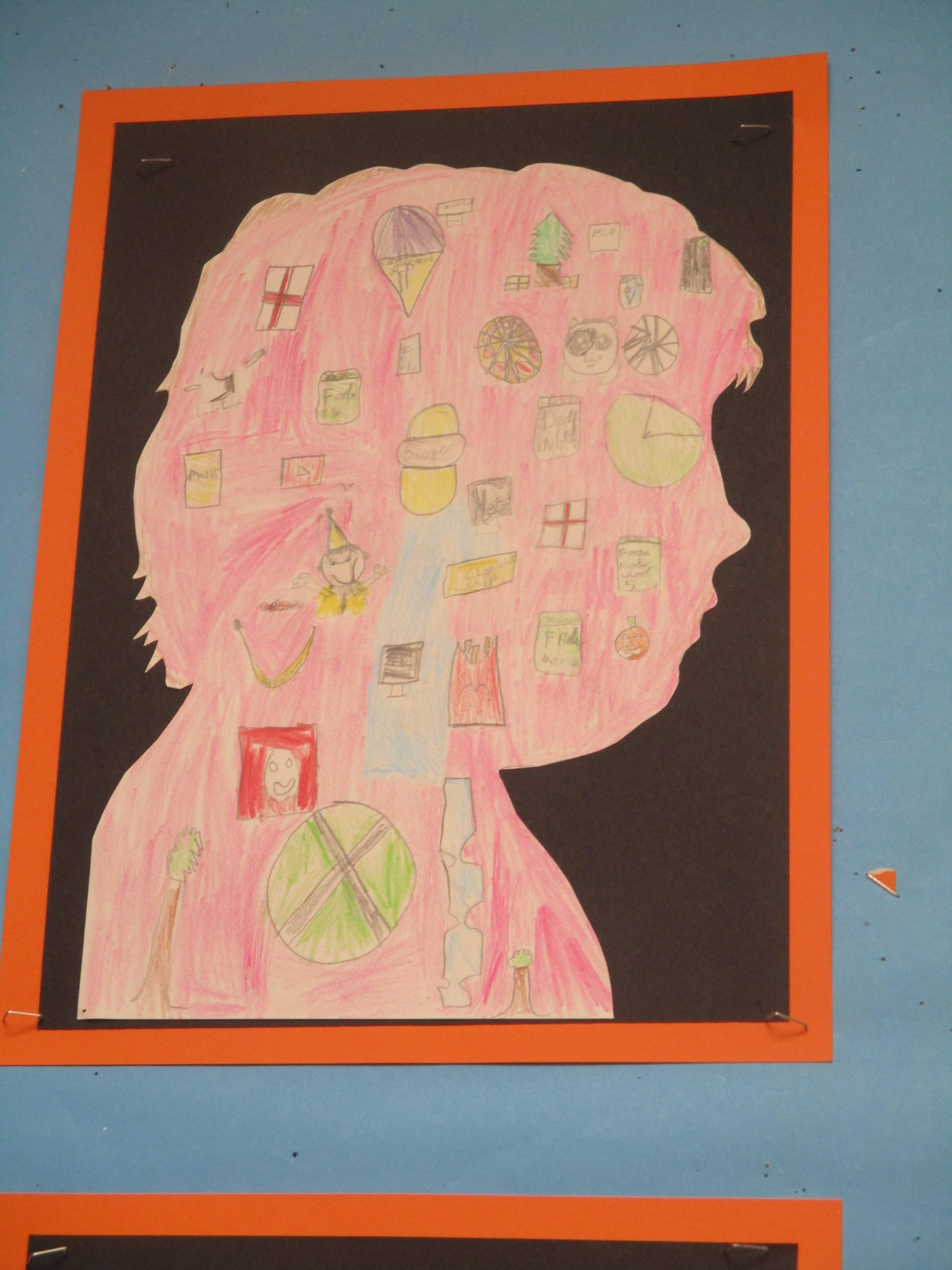 Also below our our completed silhouette portraits. Each one contains pictures of the things which are important to us, so they are very personal. Can you tell whose is whose?