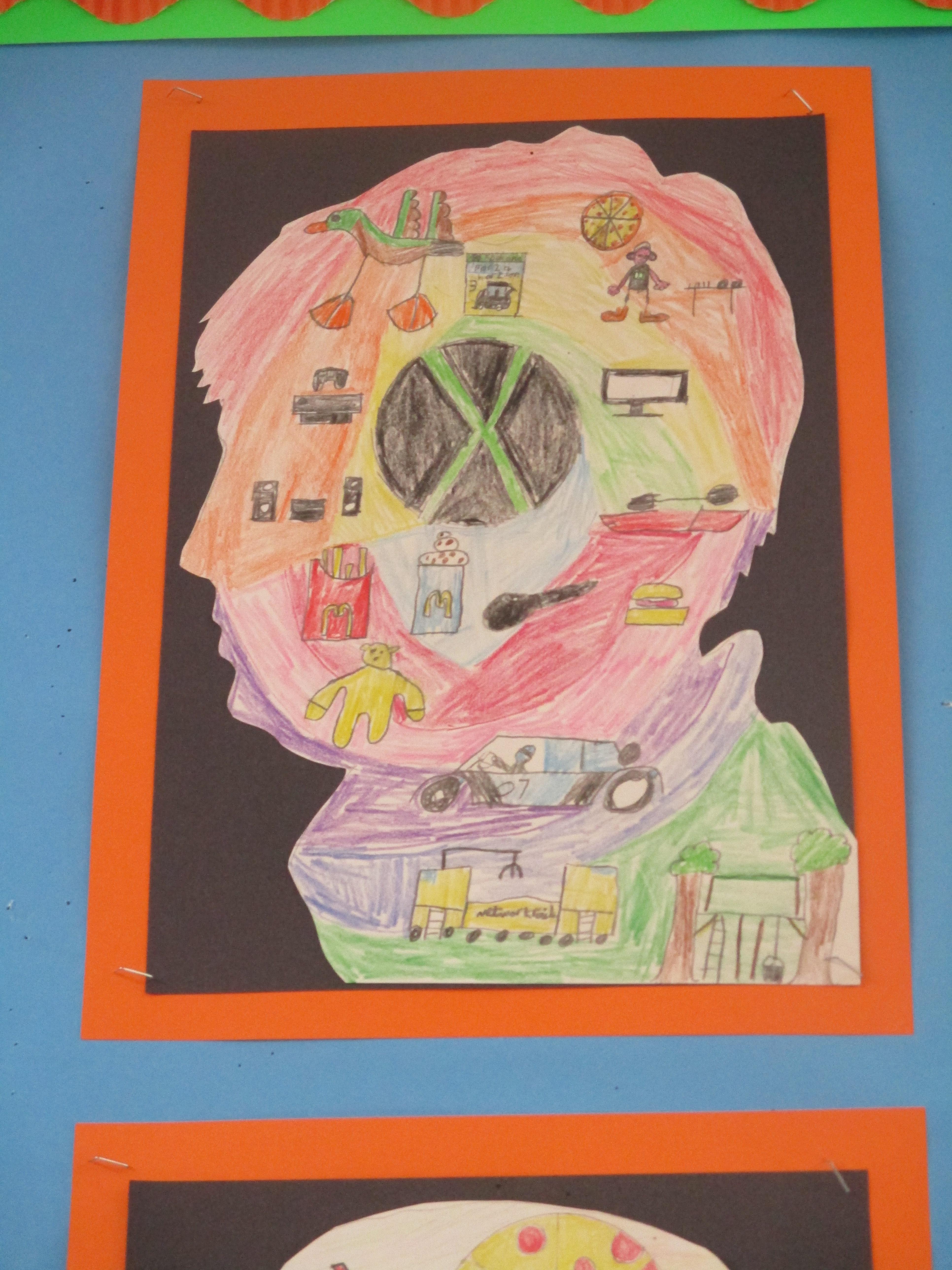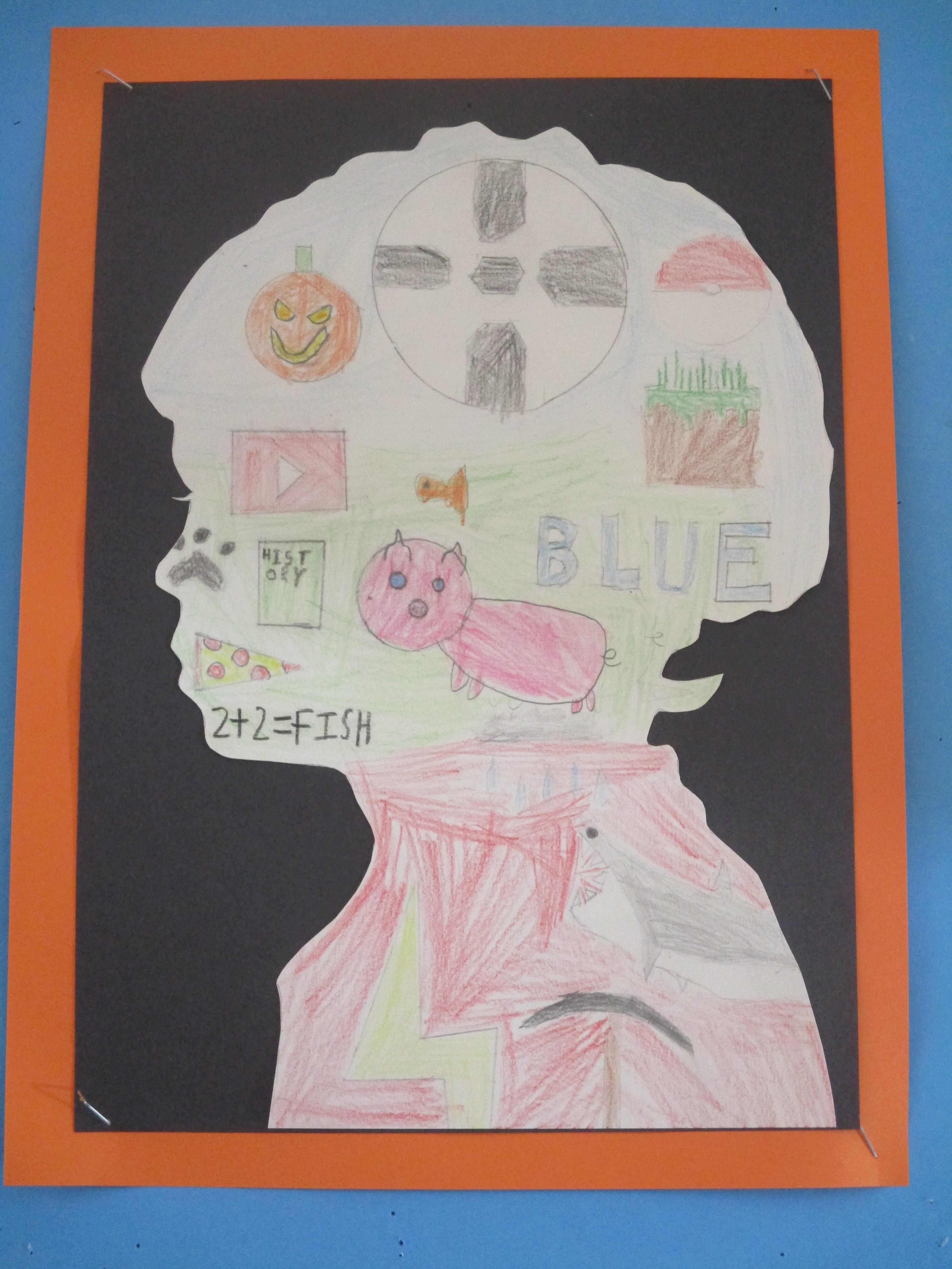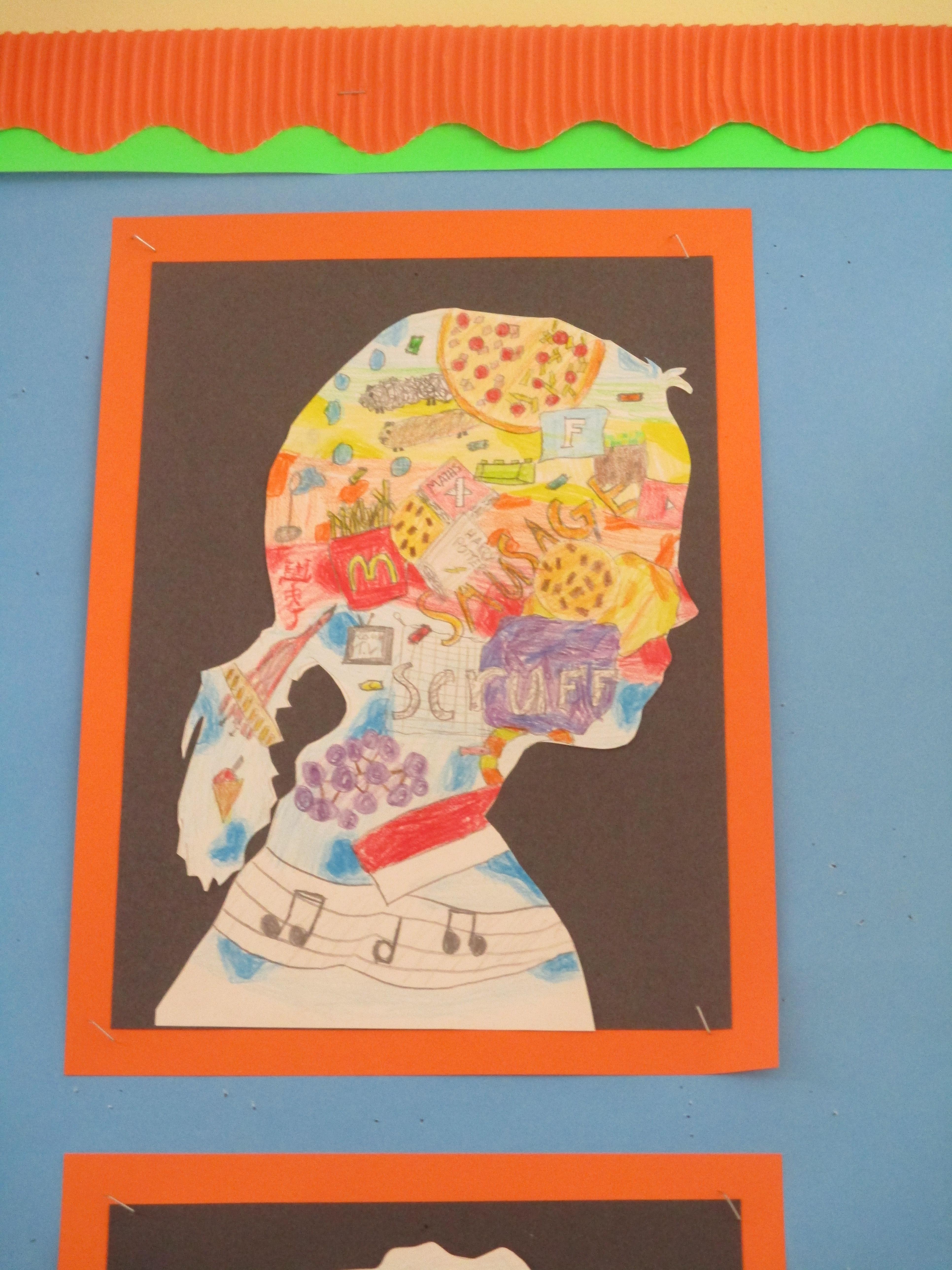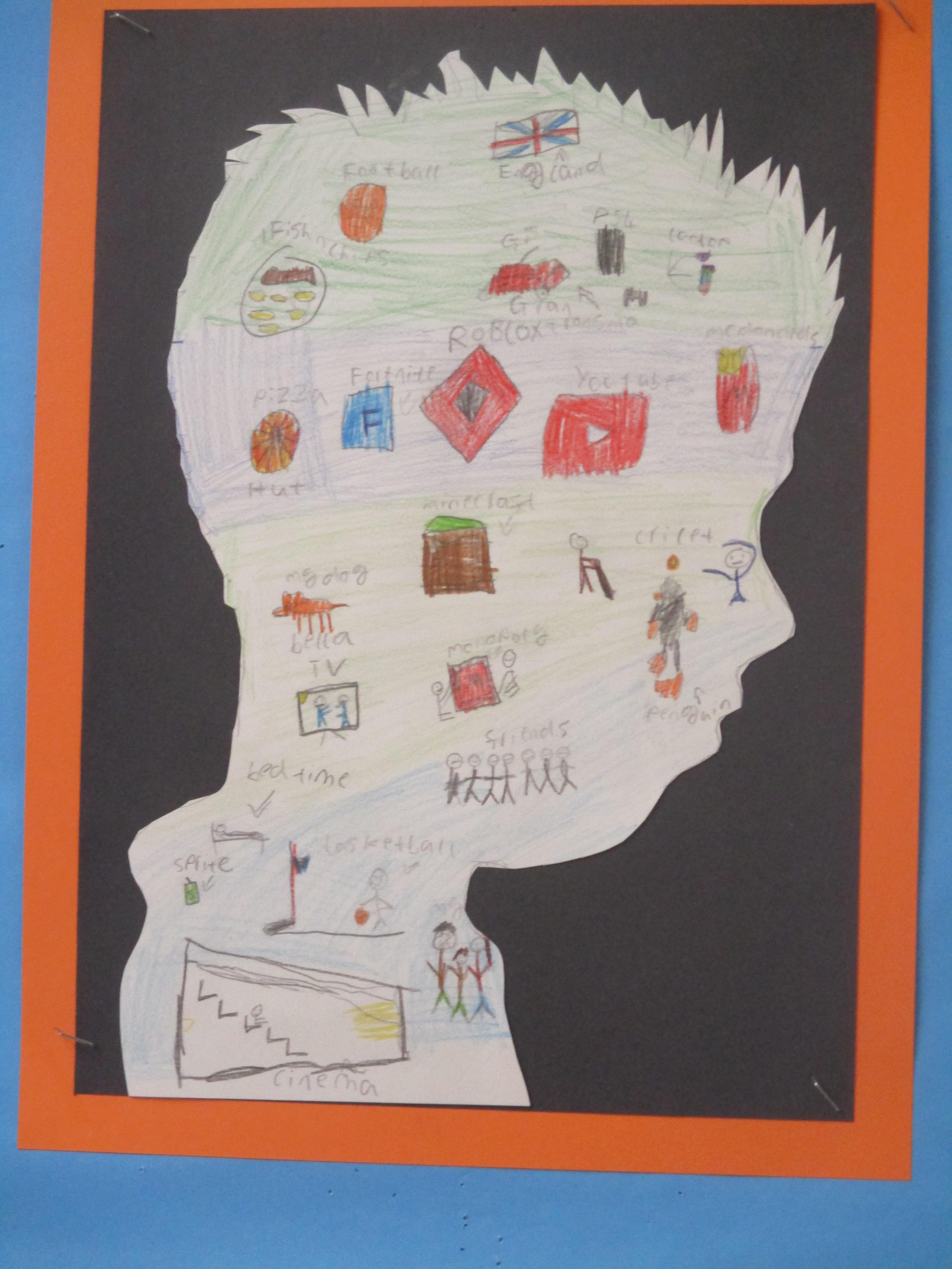 Also below our our completed silhouette portraits. Each one contains pictures of the things which are important to us, so they are very personal. Can you tell whose is whose?
