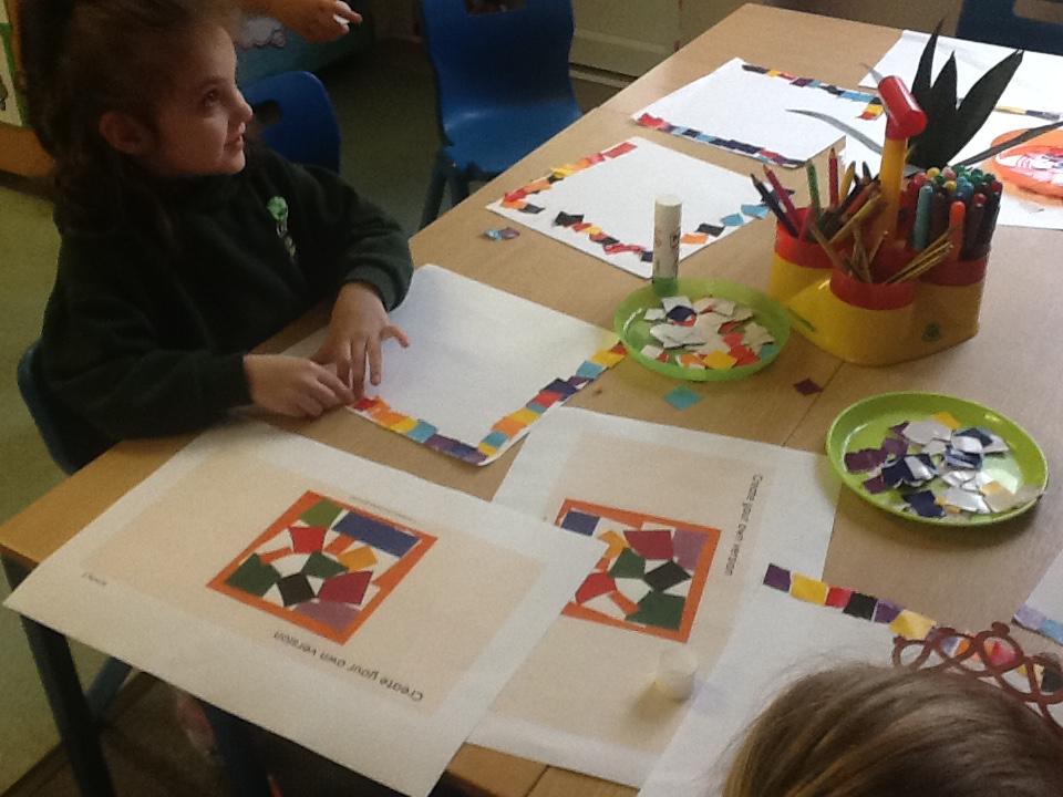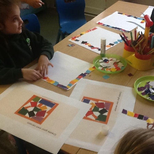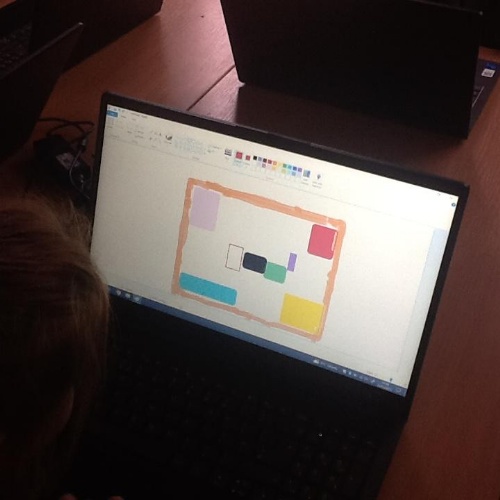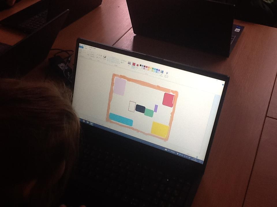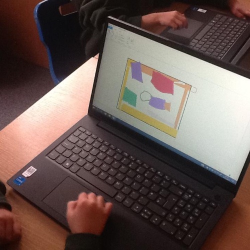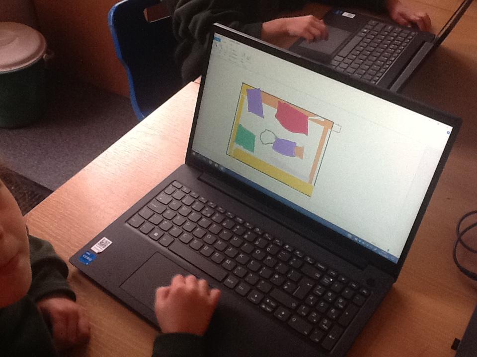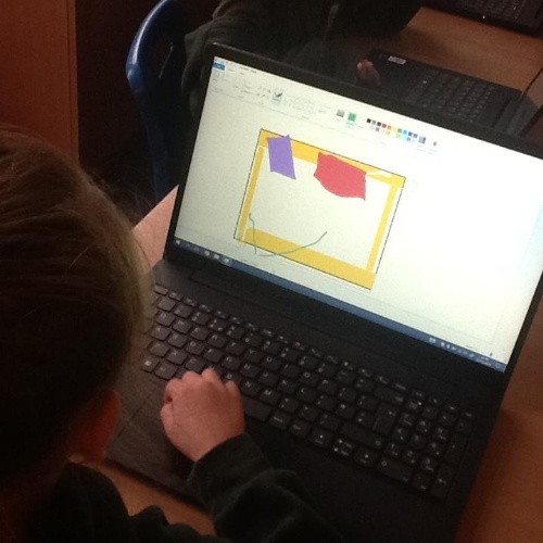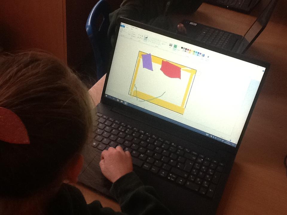 In computing the children have tried to recreate Matisse's Snail, first using paint on the computers and then creating the same effect but with sticky paper.