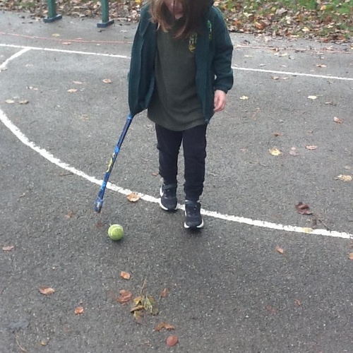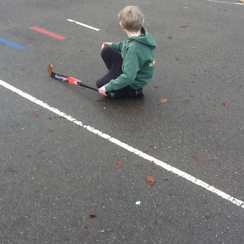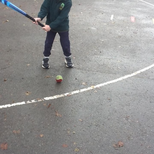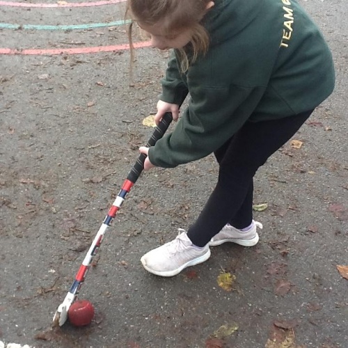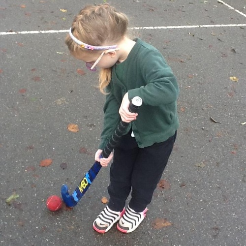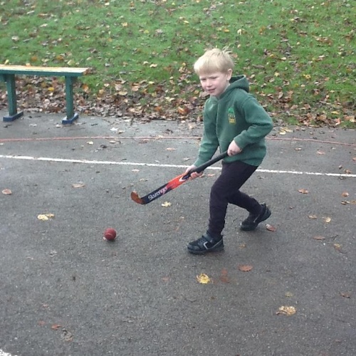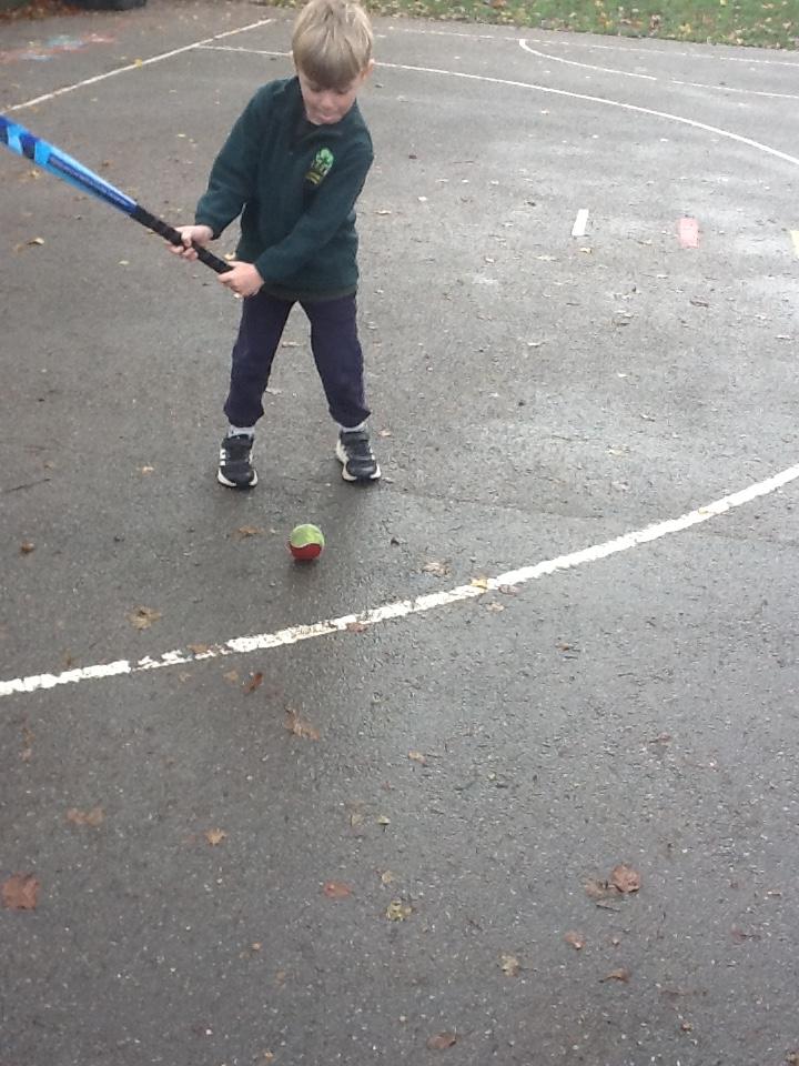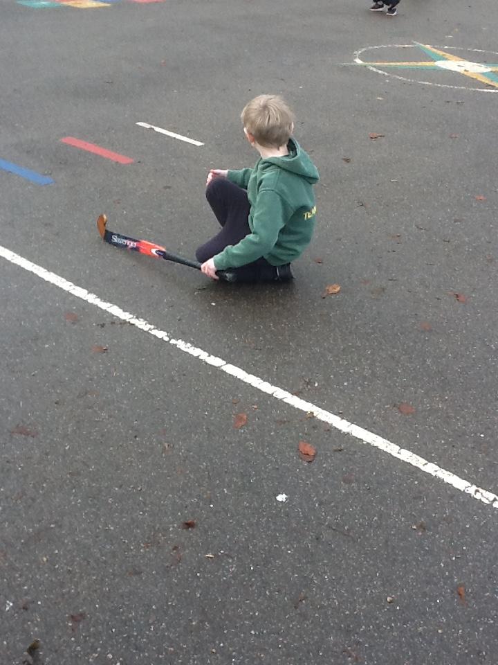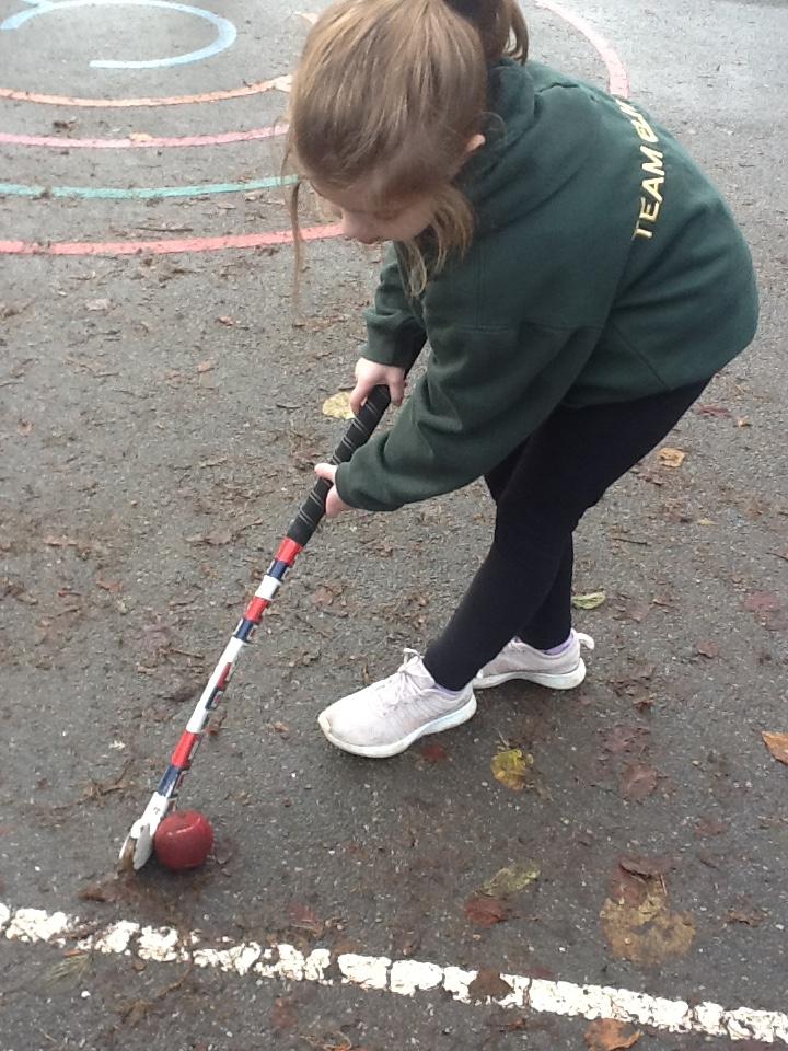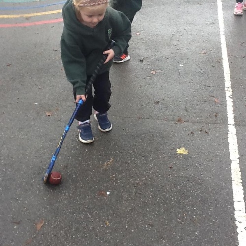 In hockey the children practised, dibbling, passing and trapping the ball with the hockey stick.