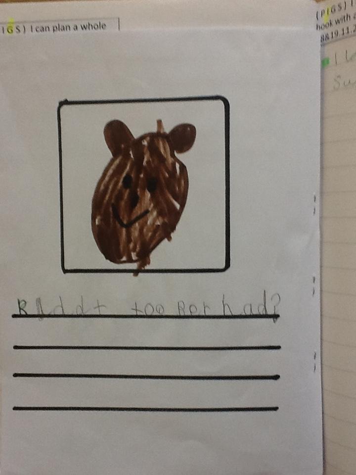 The culmination of our story 'I want my hat back' is for the children to write their own book.  The children have roleplayed it and all know what they want to write