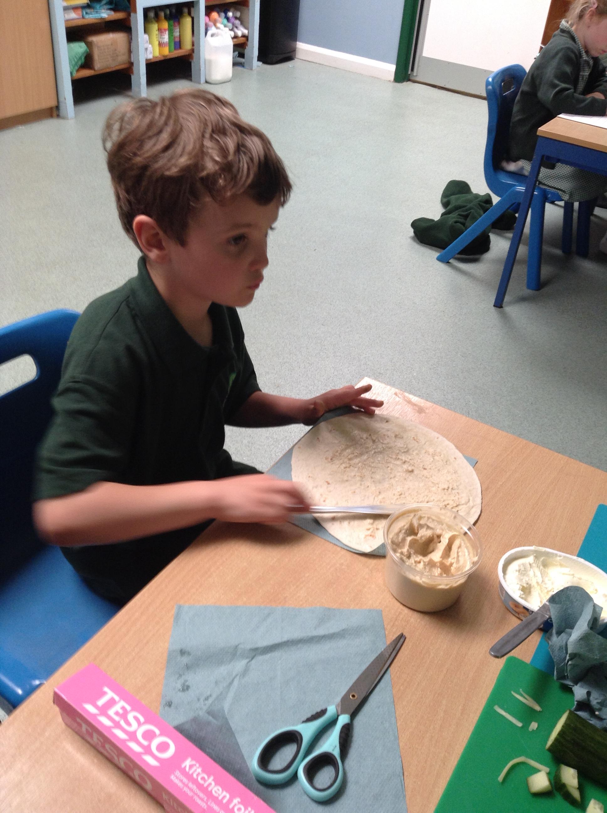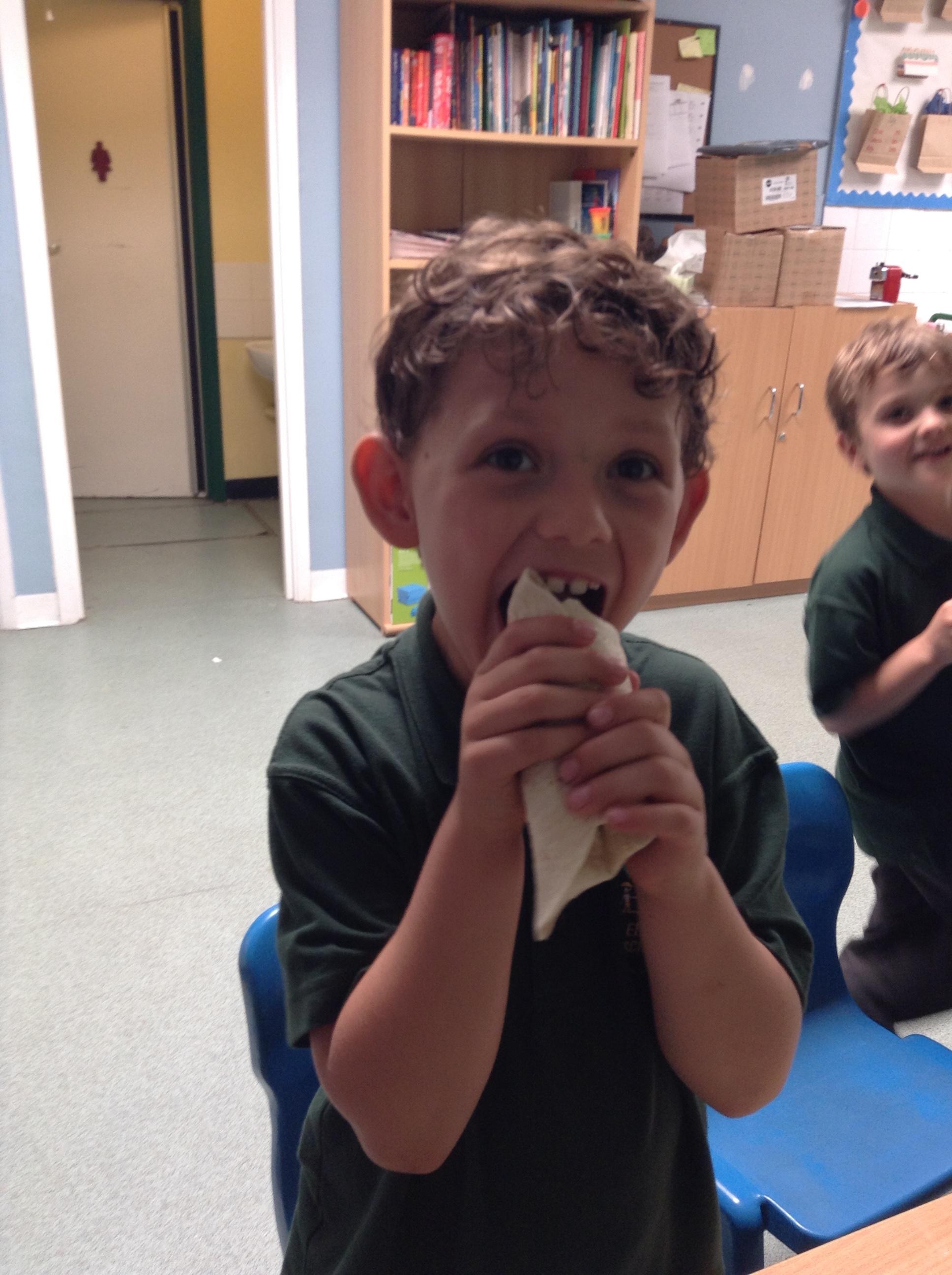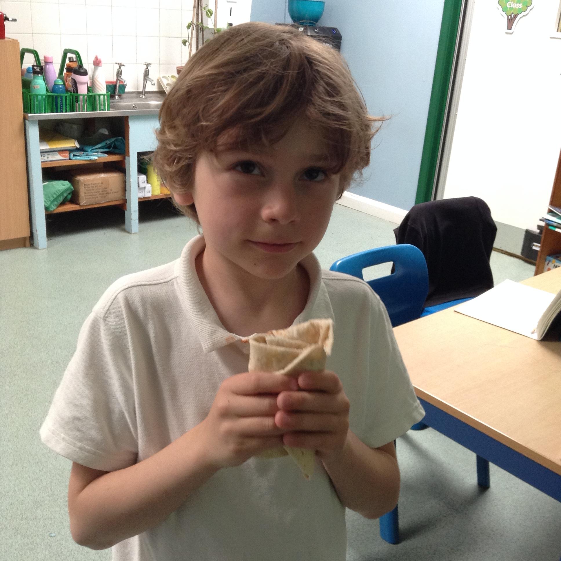 The children have made their wraps today. They then scored them out of five for the smell, appearance and tatse.