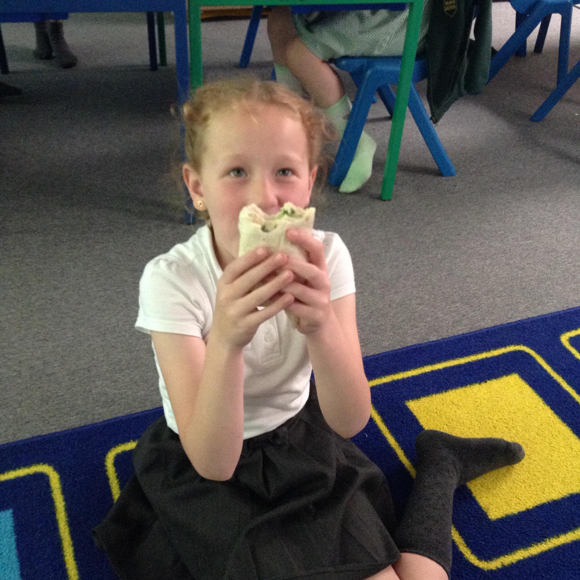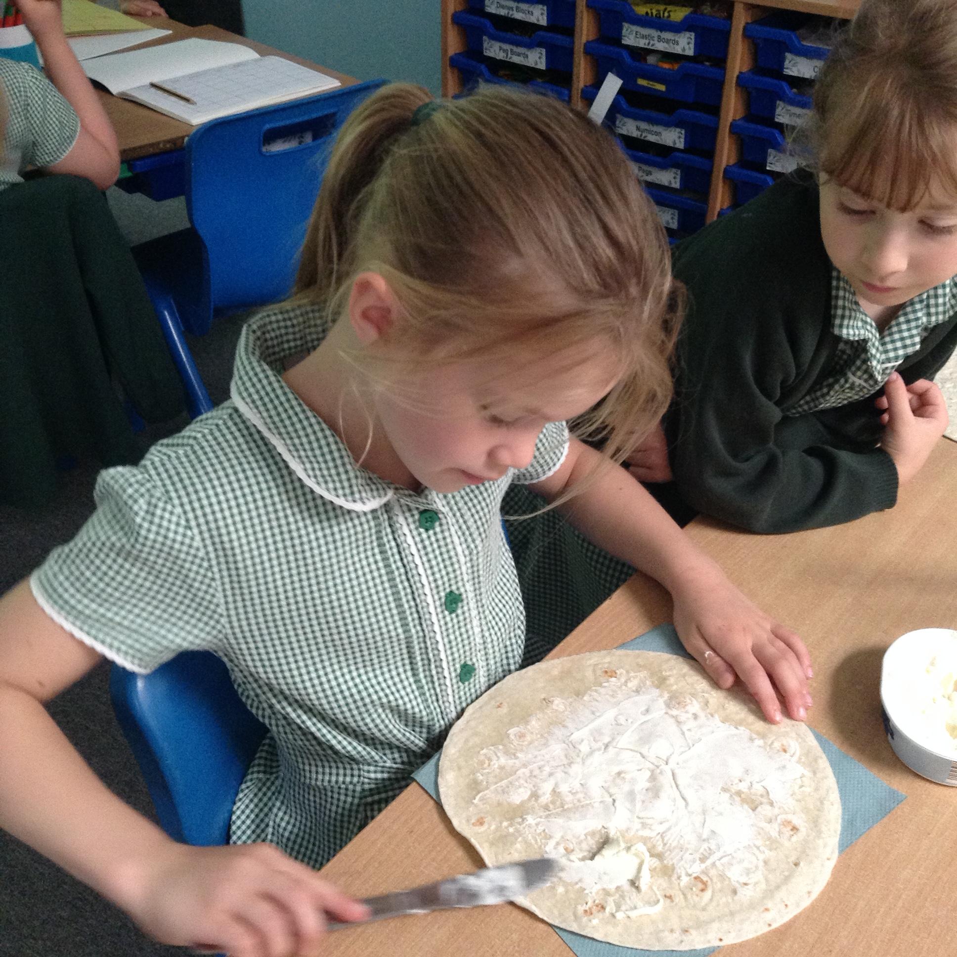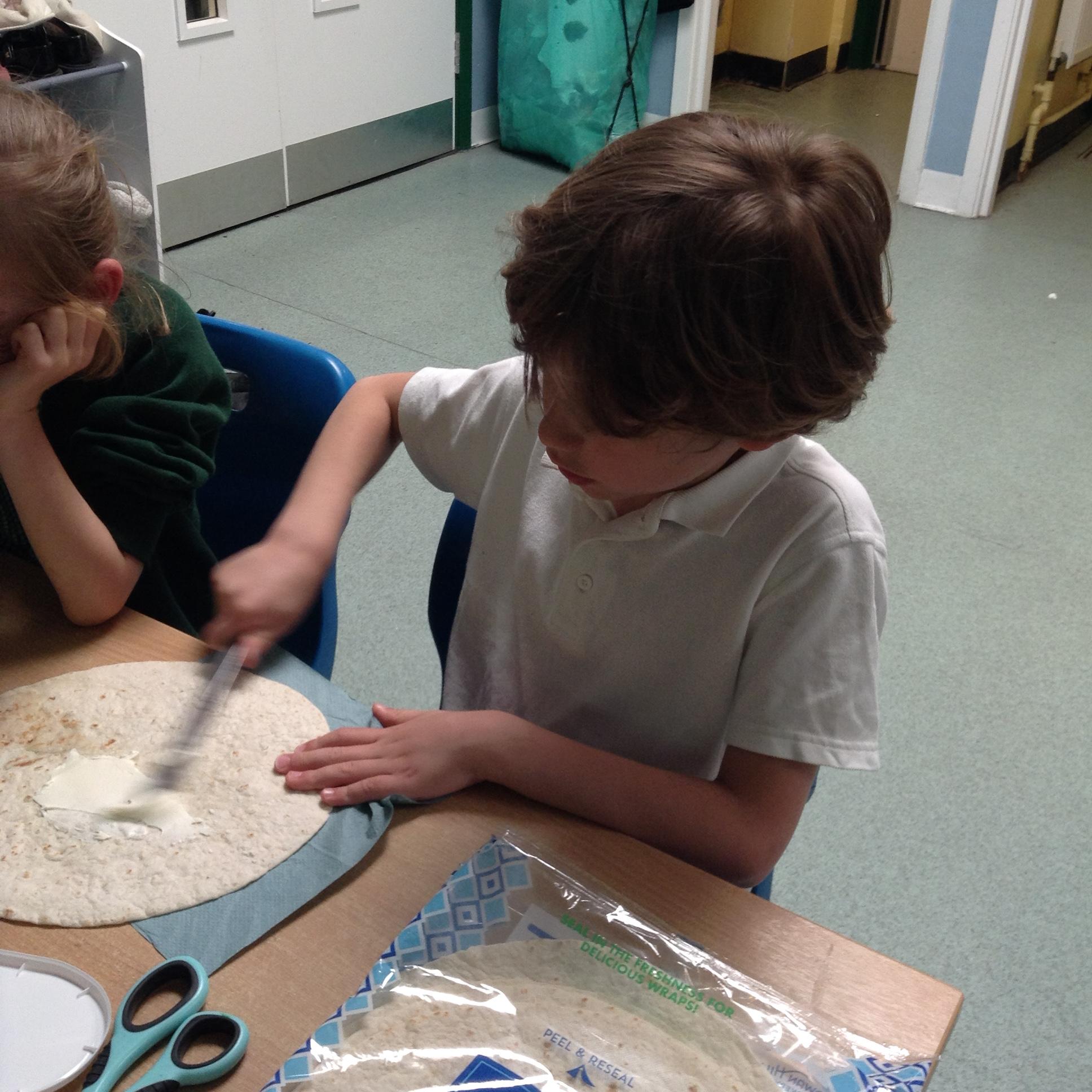 The children have made their wraps today. They then scored them out of five for the smell, appearance and tatse.