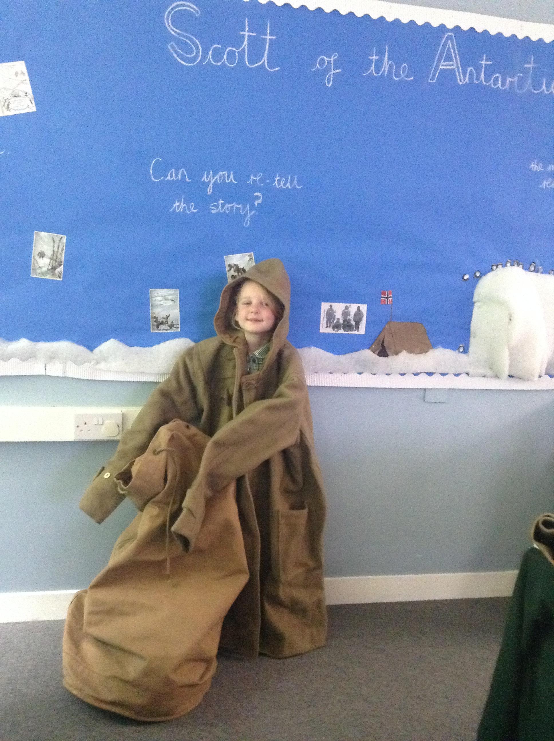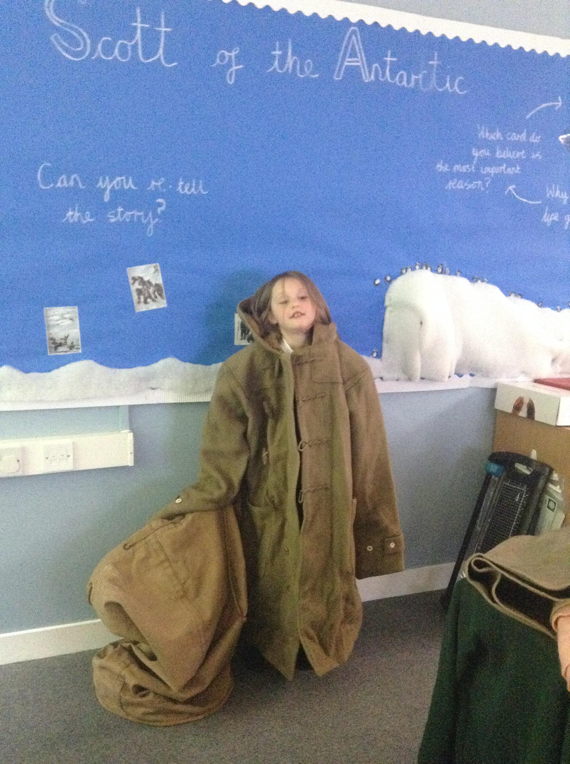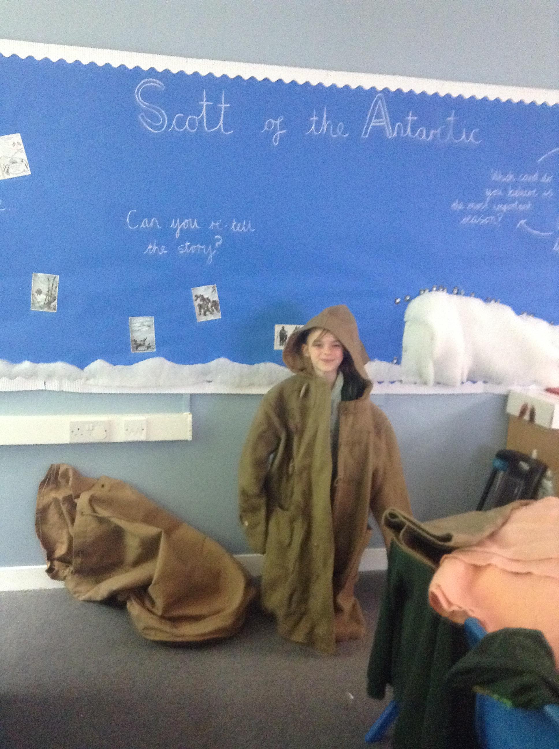 We have had our final lesson learning about Captain Scott and why we remember him today. We have all really enjoyed this topic and the children have been so enthusiastic and engaged. Today the children have tasted some of the foods Scott took with him to the Antarctic (golden syrup, Fry's chocolate, dried peel and biscuits). We then looked at (and tried on) a coat made of the same material Scott's clothing would have been made from - it was very heavy and itchy!