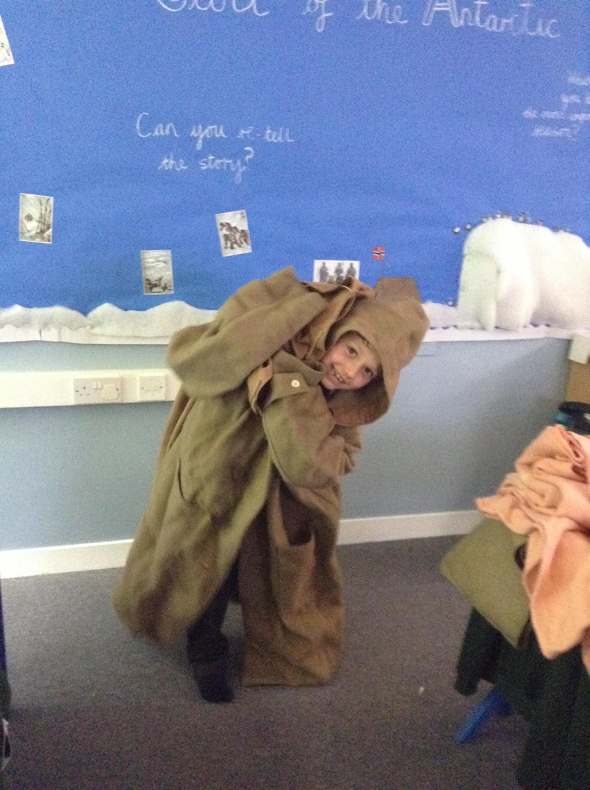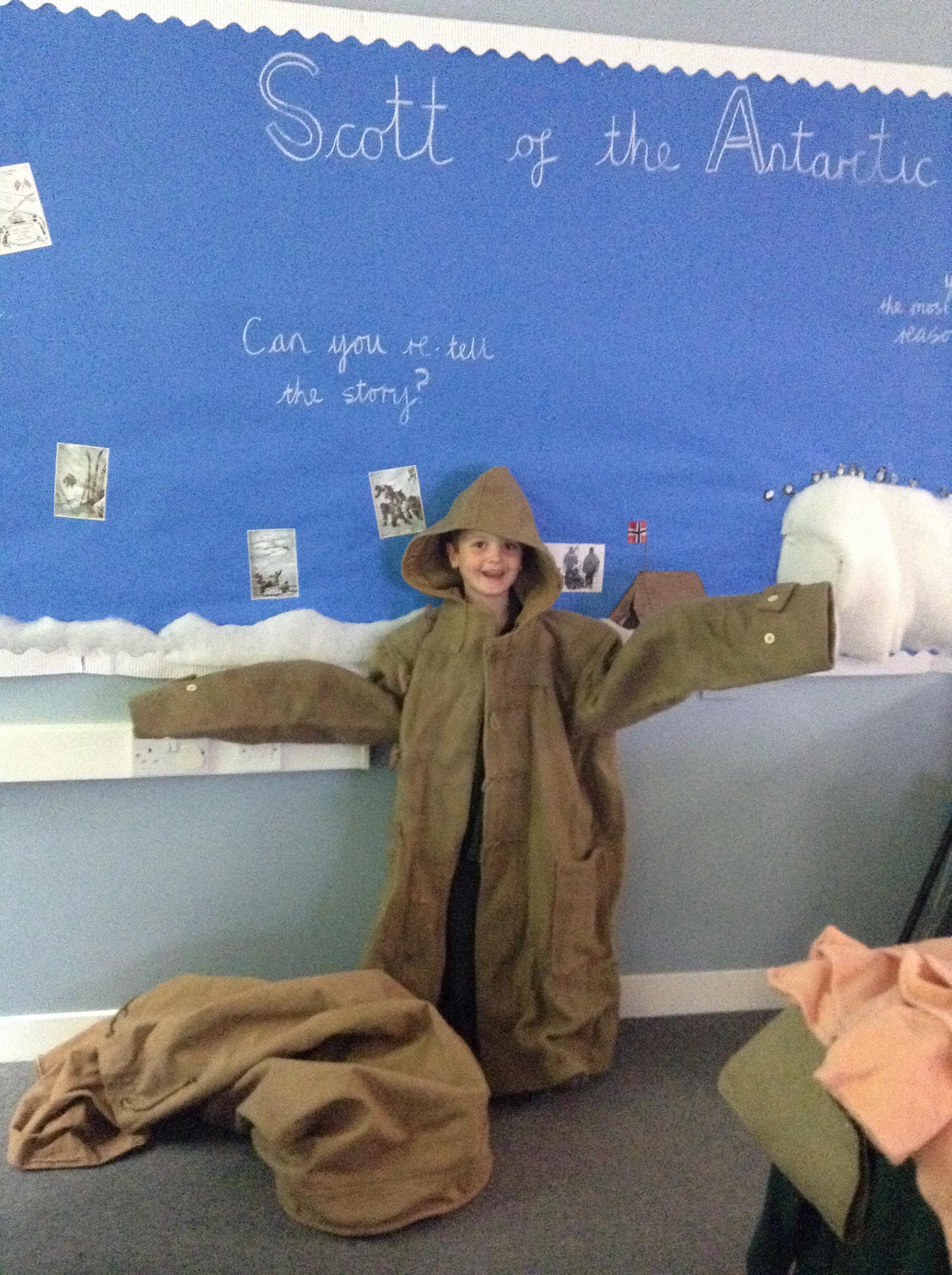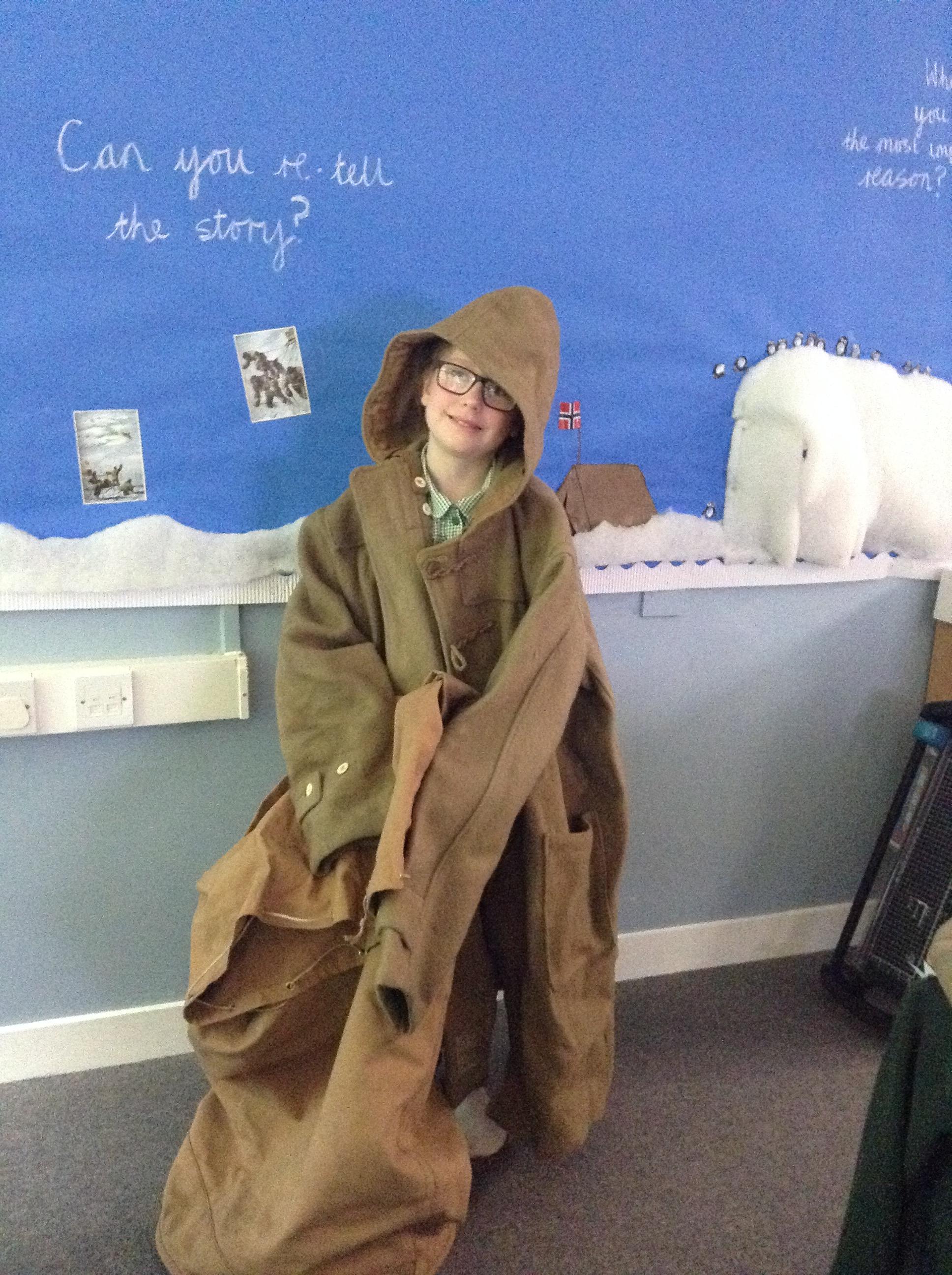 We have had our final lesson learning about Captain Scott and why we remember him today. We have all really enjoyed this topic and the children have been so enthusiastic and engaged. Today the children have tasted some of the foods Scott took with him to the Antarctic (golden syrup, Fry's chocolate, dried peel and biscuits). We then looked at (and tried on) a coat made of the same material Scott's clothing would have been made from - it was very heavy and itchy!