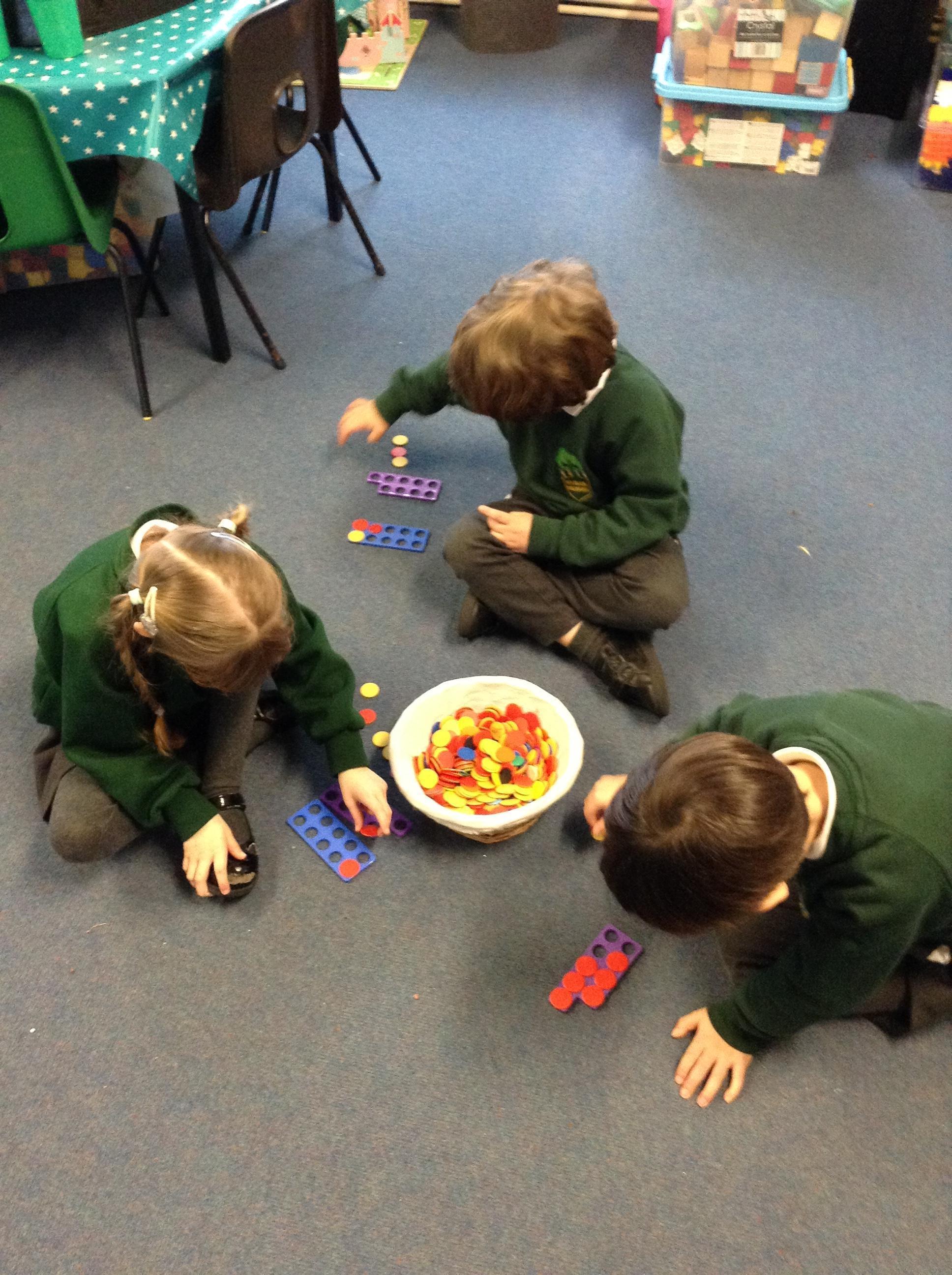 In our number learning we are thinking about the numbers 9 and 10 and trying to find lots of different ways of showing 9 and 10.