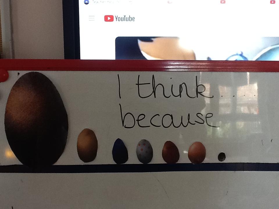 Mr Elgar found some really strange eggs in with the hens over the weekend.  He has sent them off for inspection, but he took pictures of them and asked Hazel class to say which animal they thought could have laid them..  We had some very interesting responses!