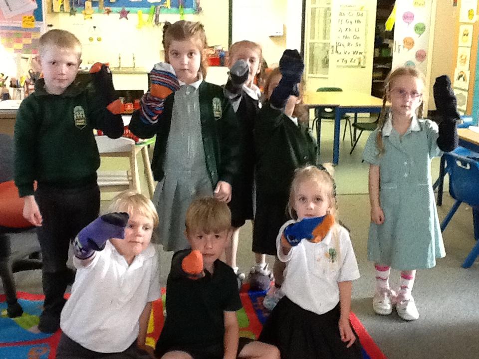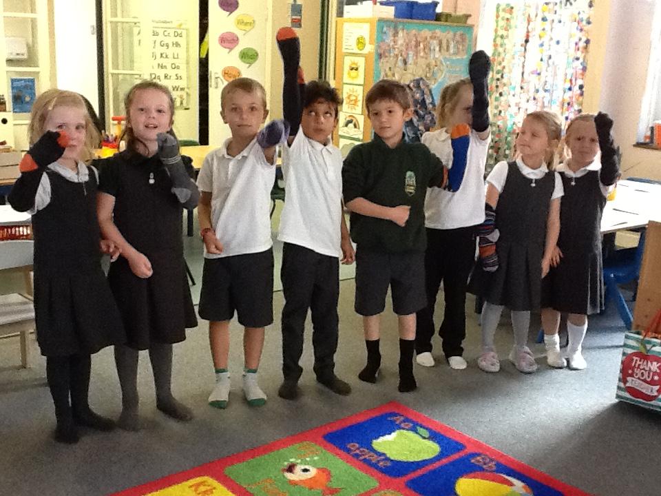 In Science the children have been investigating their sense of touch.  They put one of Mr Elgar's old socks on their hands and tried touching things to work out what they were and how they felt.  Then they removed the socks and we talked about how sensitive our fingers are and how much easier it was to identify things even though they couldn't see them.