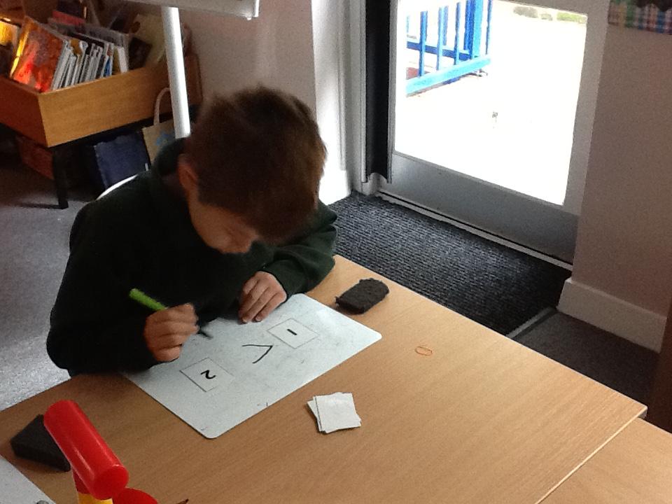 We have continued our learning using the language "Greater than, less than and equal to". Today the children began comparing numbers and trying to remember that the crocodile always eats the biggest one.