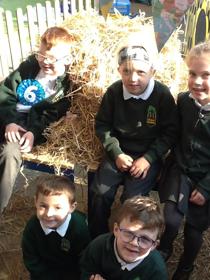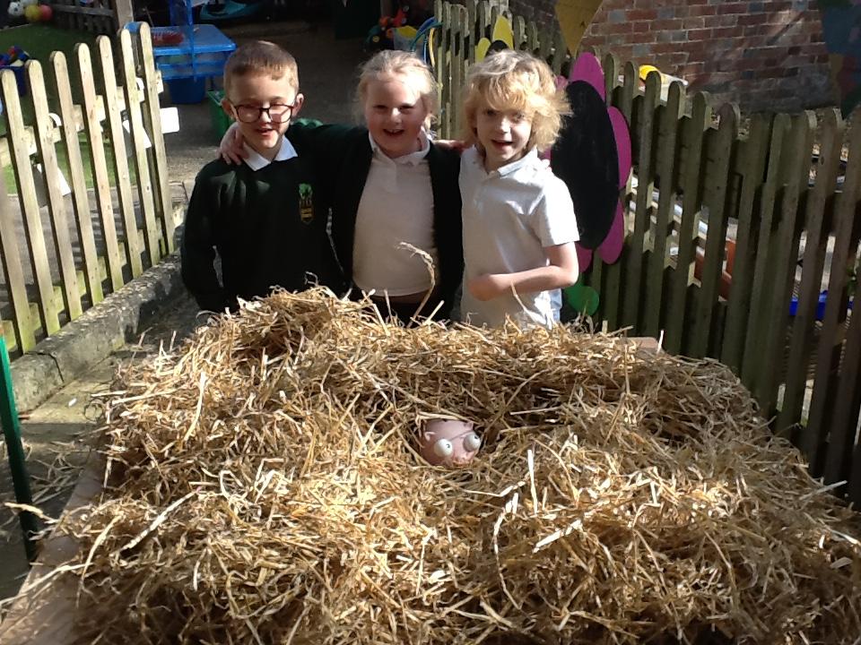 The children's building skills are improving! Great teamwork today to build this giant straw house!