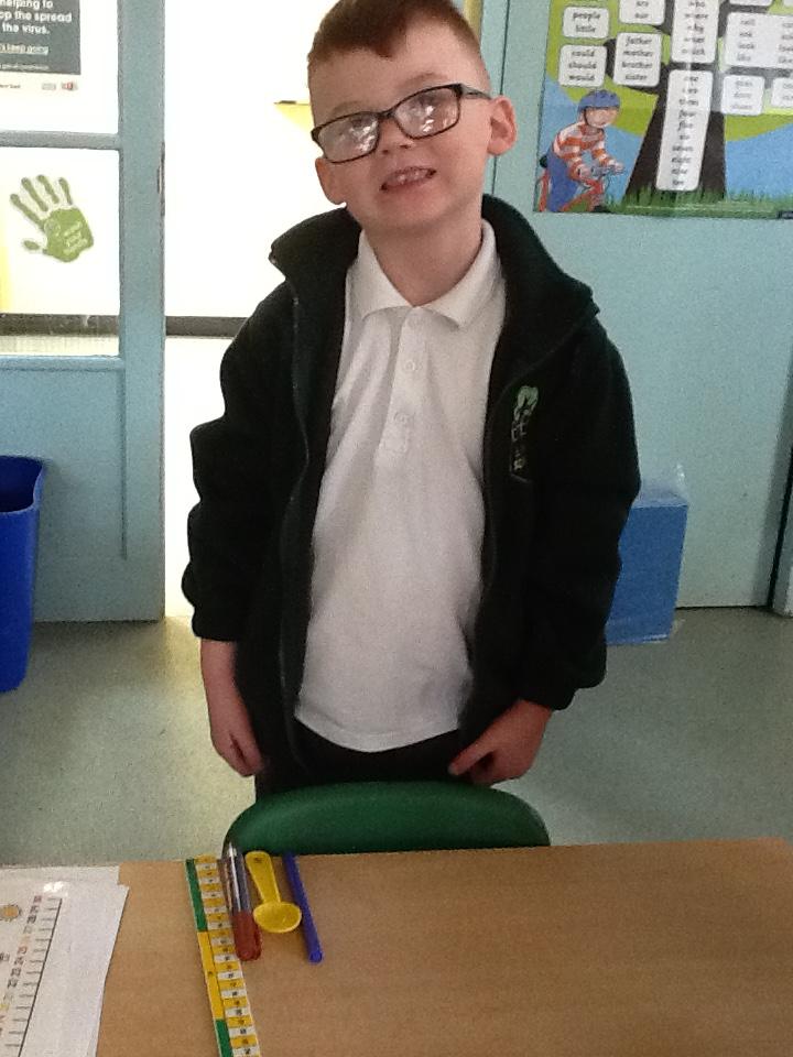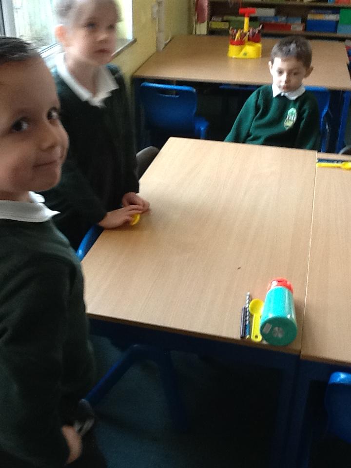 We have been comparing lengths and heights.  The children found it surprisingly tricky!  The main focus was to have all the objects against a straight line in order to compare them accurately.