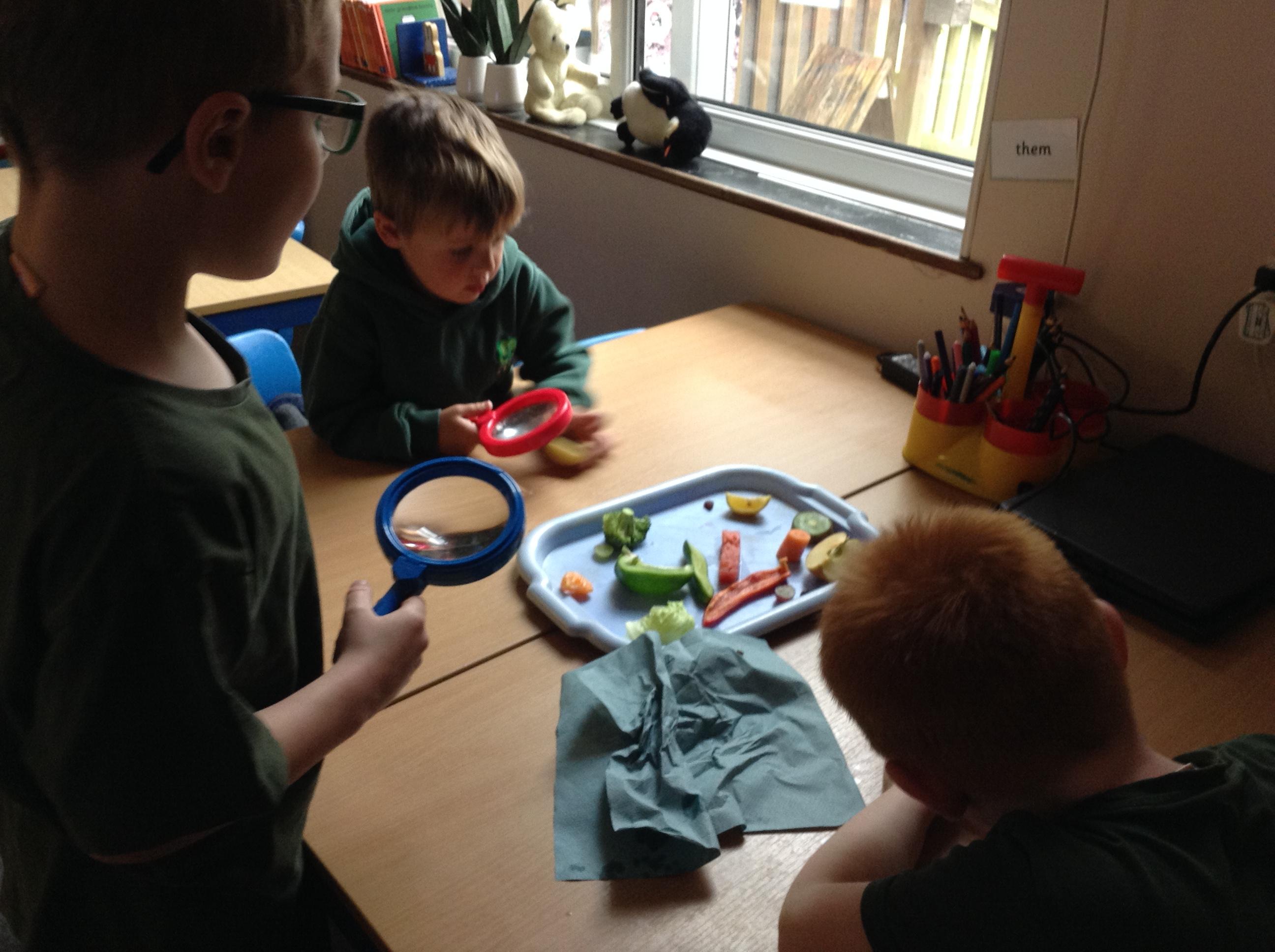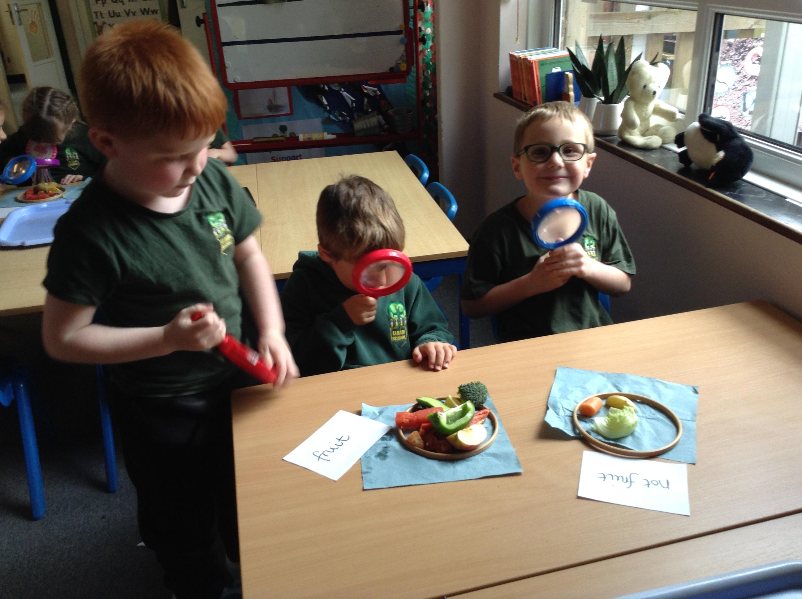 In DT we are learning about fruit and vegetables, with a goal to make a fruit smoothy by the end of term. Today children categorised things into fruits and not fruits.