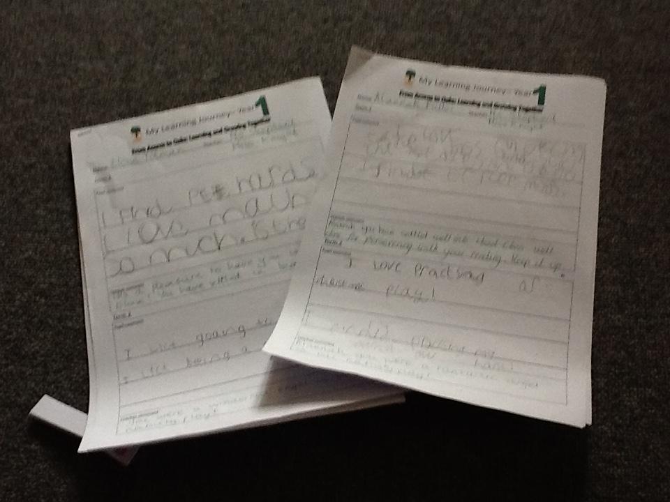 Every term the children look back at their work and think about what they have enjoyed or struggled with. Then they complete their Learning Journies. These will come home with them in year 6 when they leave the school.