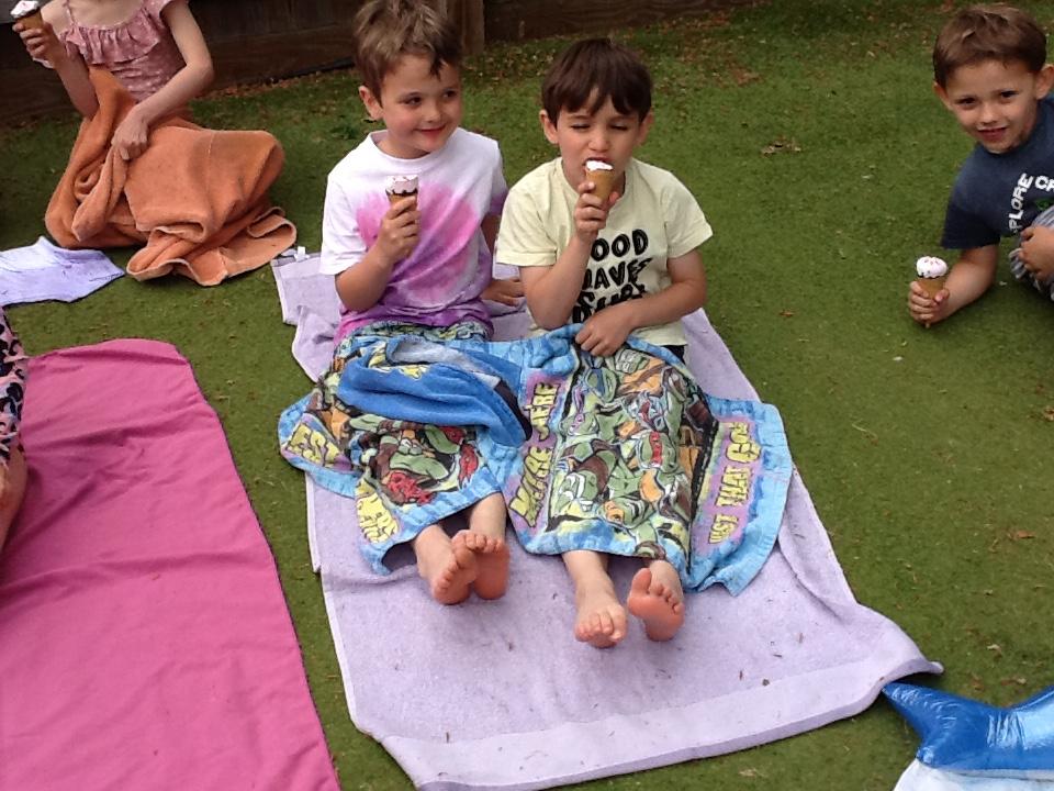 What a lovely afternoon we had at "The Beach", it was a shame about the weather but that didn't stop us all from having great fun. We started off by visiting the beach as the Victorians would have done then we came in and changed ready for our trip to the modern day beach. Of course we had to have ice creams too!! We finished off the afternoon by warming up under a blanket and having a well earned rest.