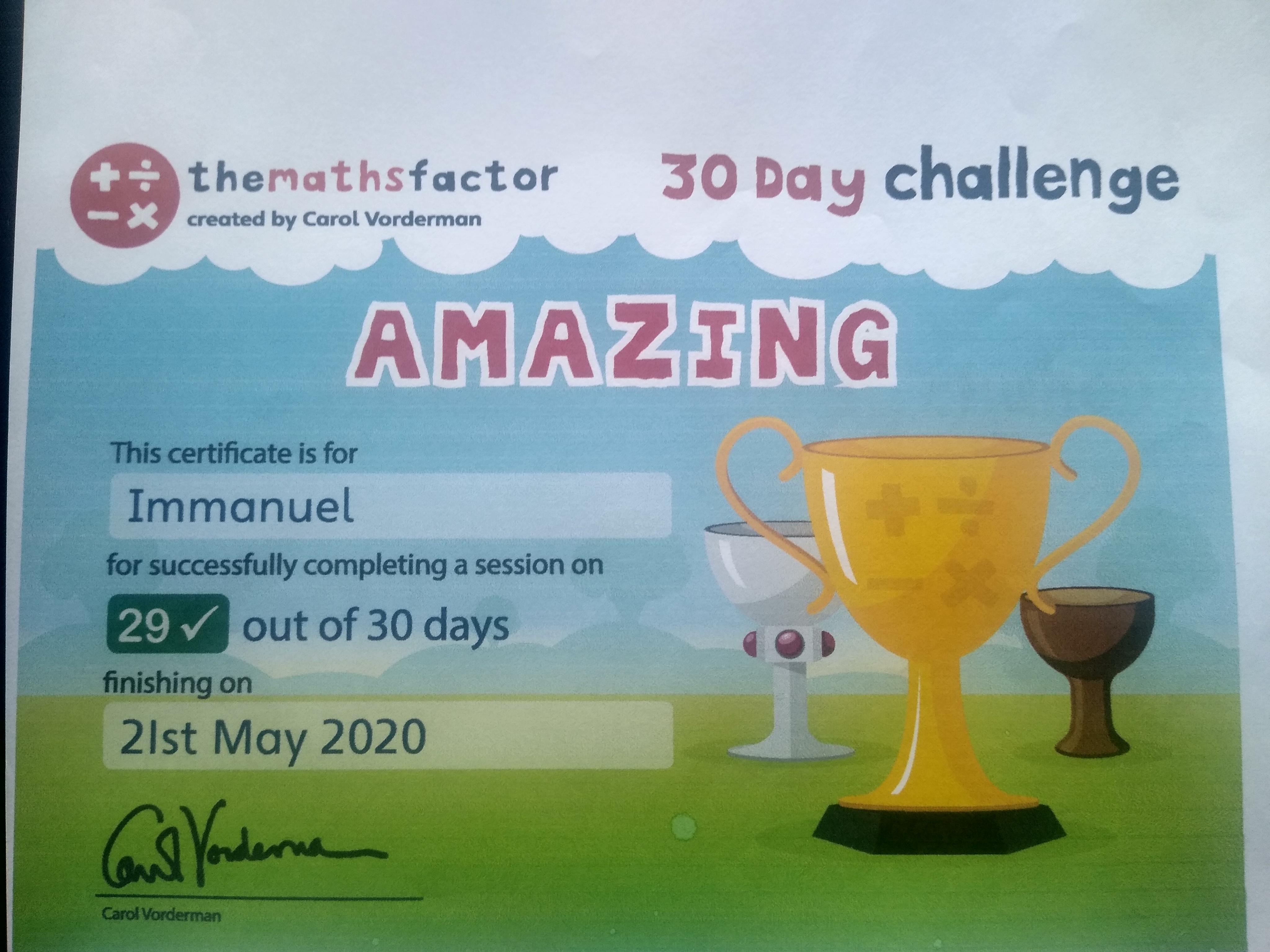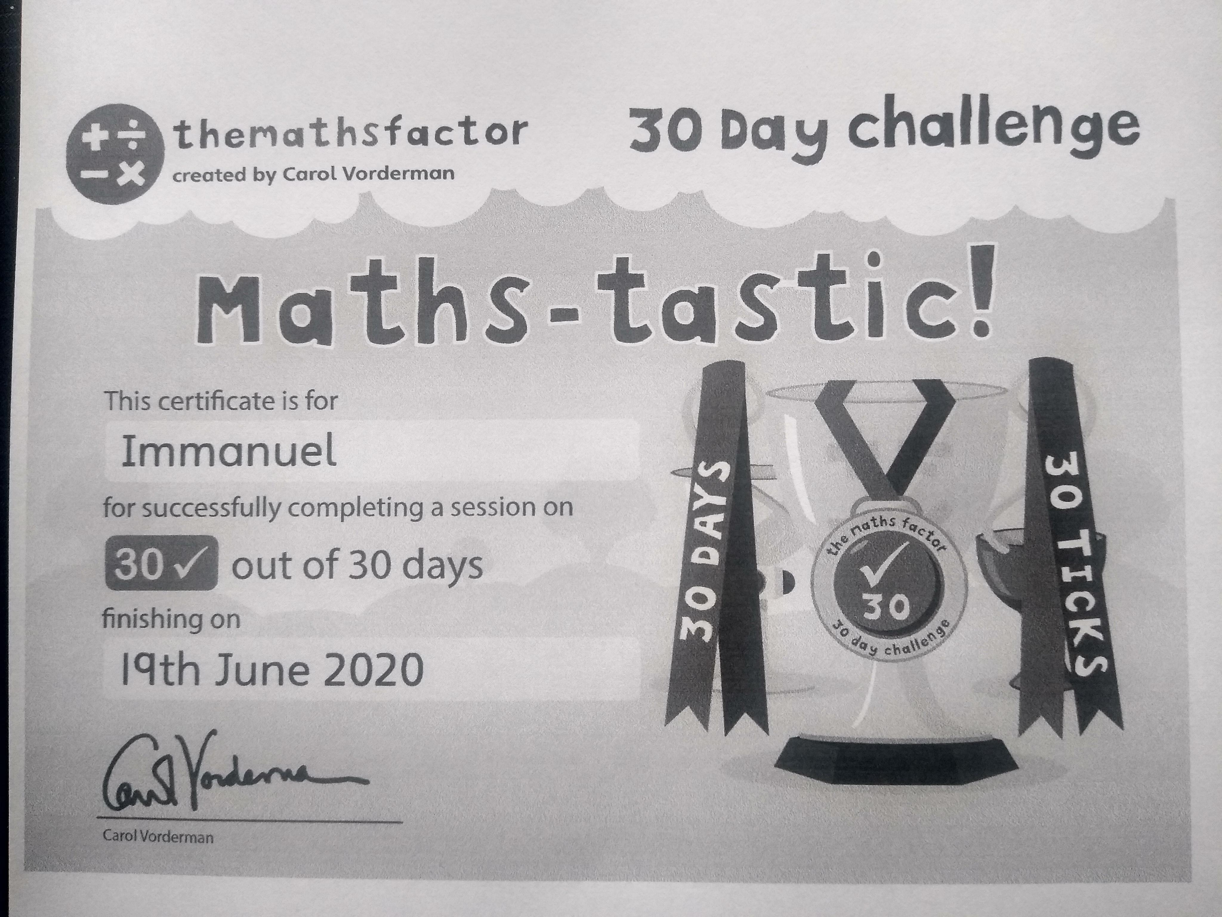 I thought I would remind you of Carol Vorderman's Maths Factor, as Immanu'el has enjoyed using it. The free access ends on the 5th July, but they are giving half price access to their Summer club (£4.99). Other websites are available!