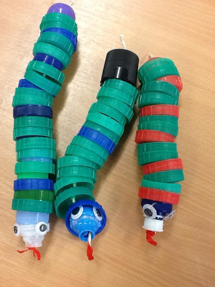 We are continuing to use the bottle tops some of you are kindly sending in. This week the children made creatures with repeating patterns.