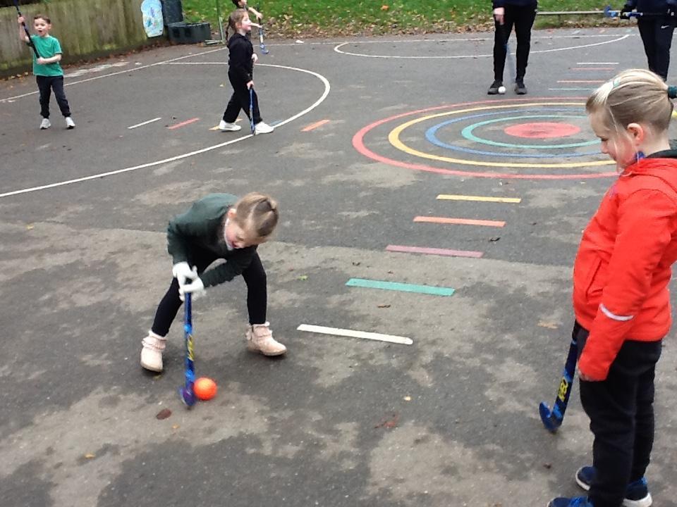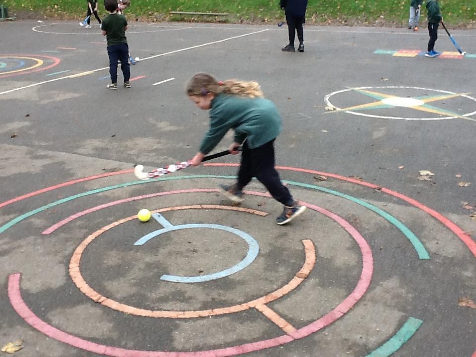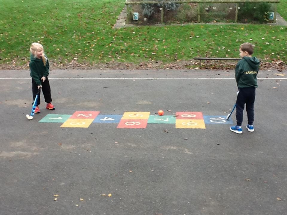 In hockey children practised hit passes, push passes and slapping passes (because of the noise it makes when you hit it).