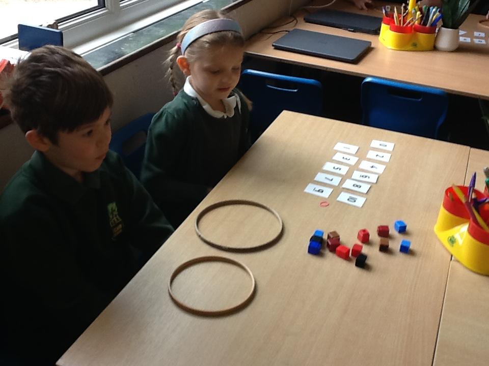 We have sorted number cards into odd and even numbers and then investigated numbers to see if they can be grouped evenly, using hoops to share them out.