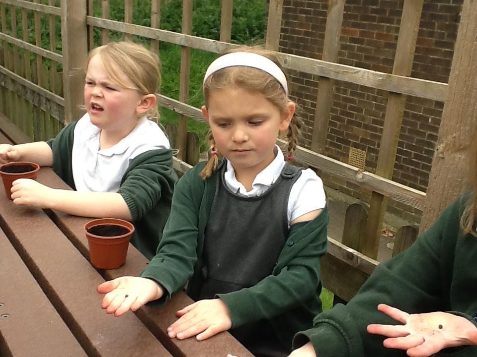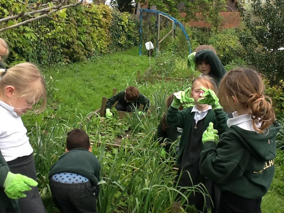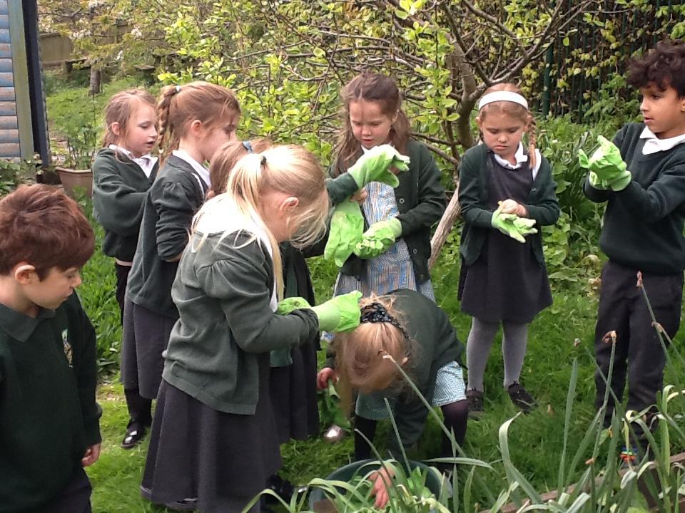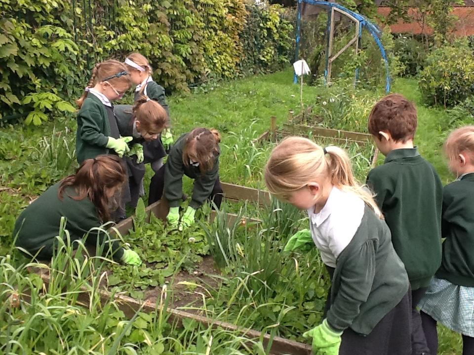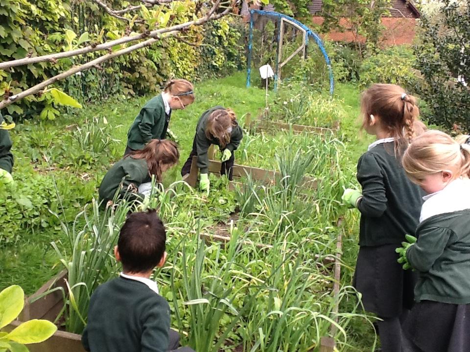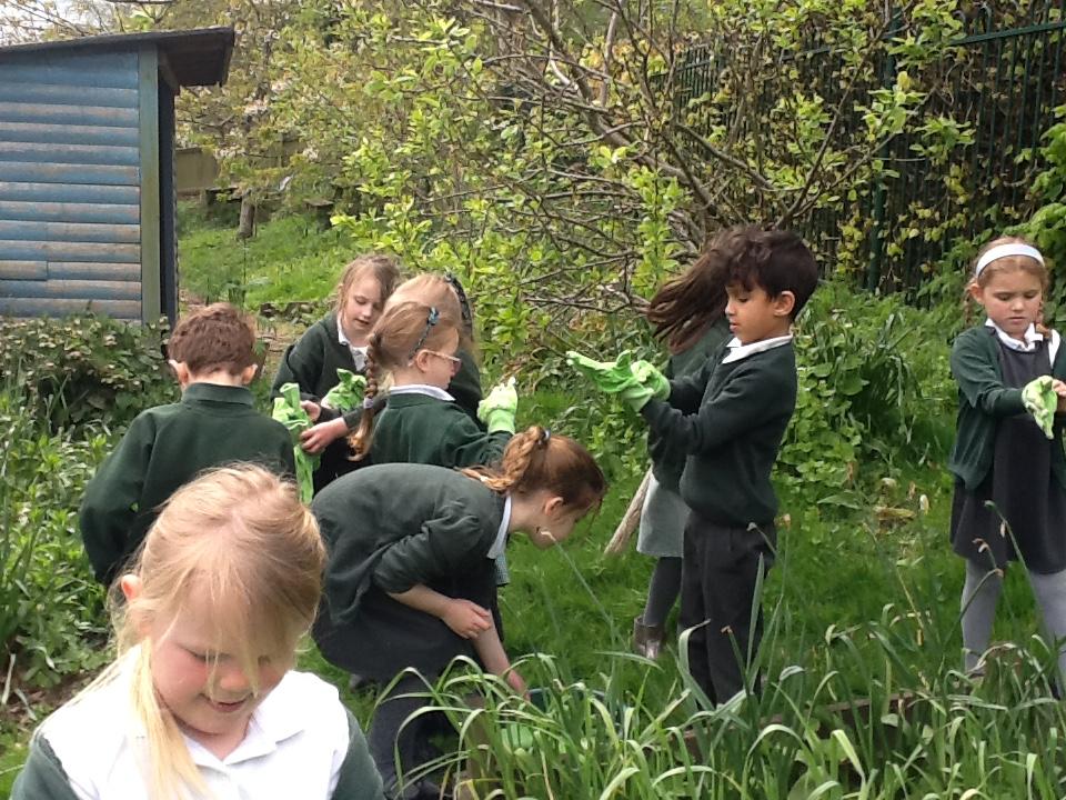 Weeding, planting seeds and observing germination.