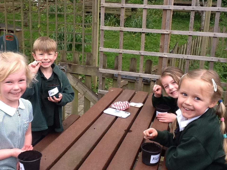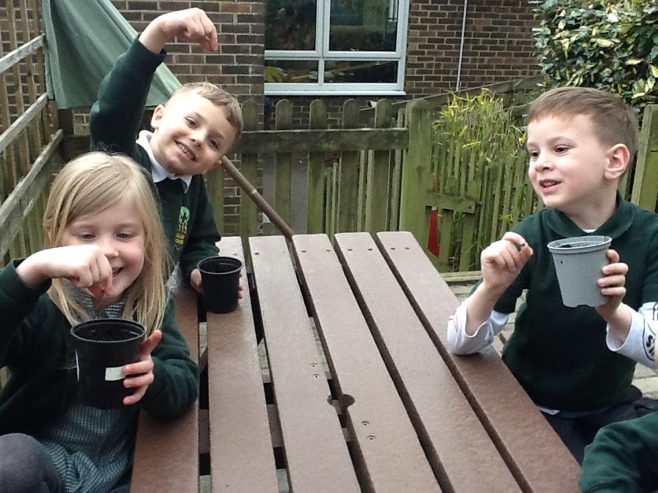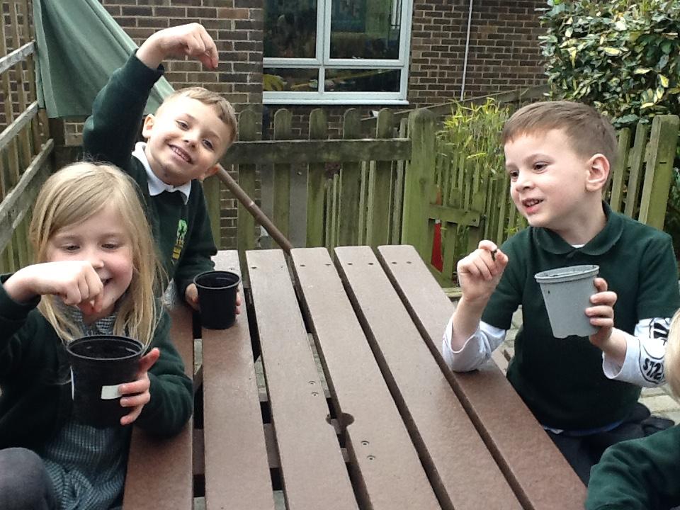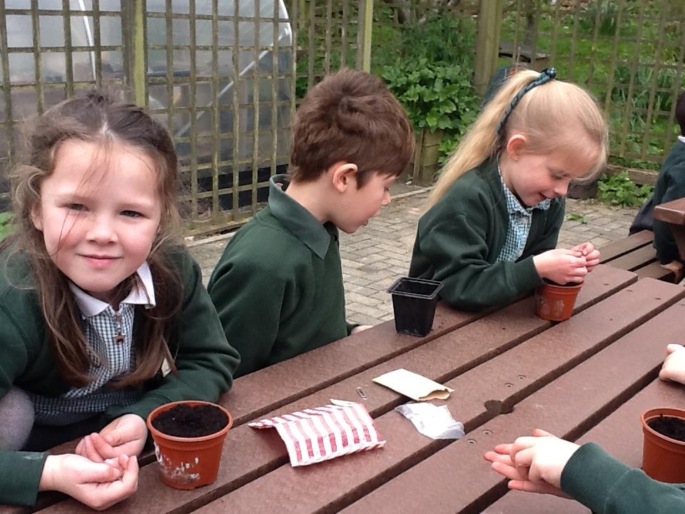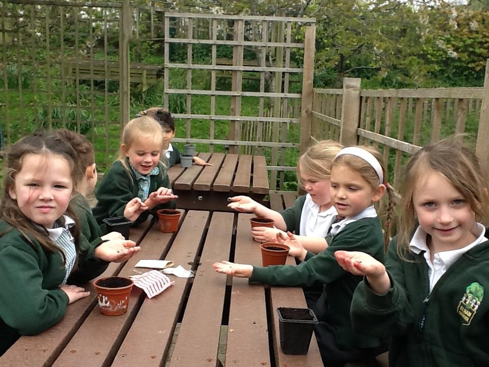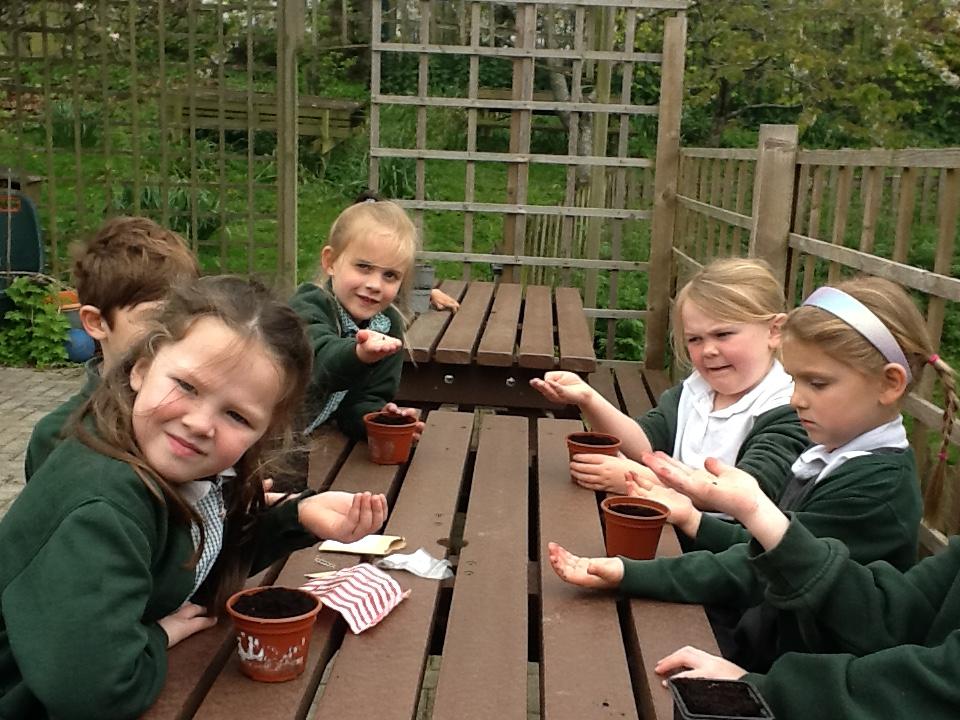Weeding, planting seeds and observing germination.