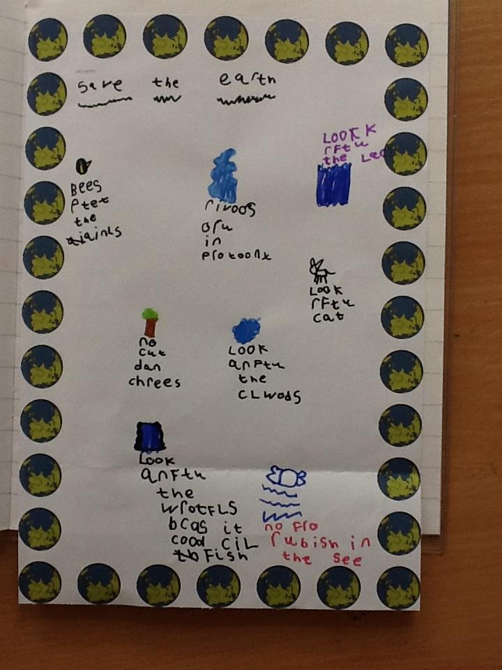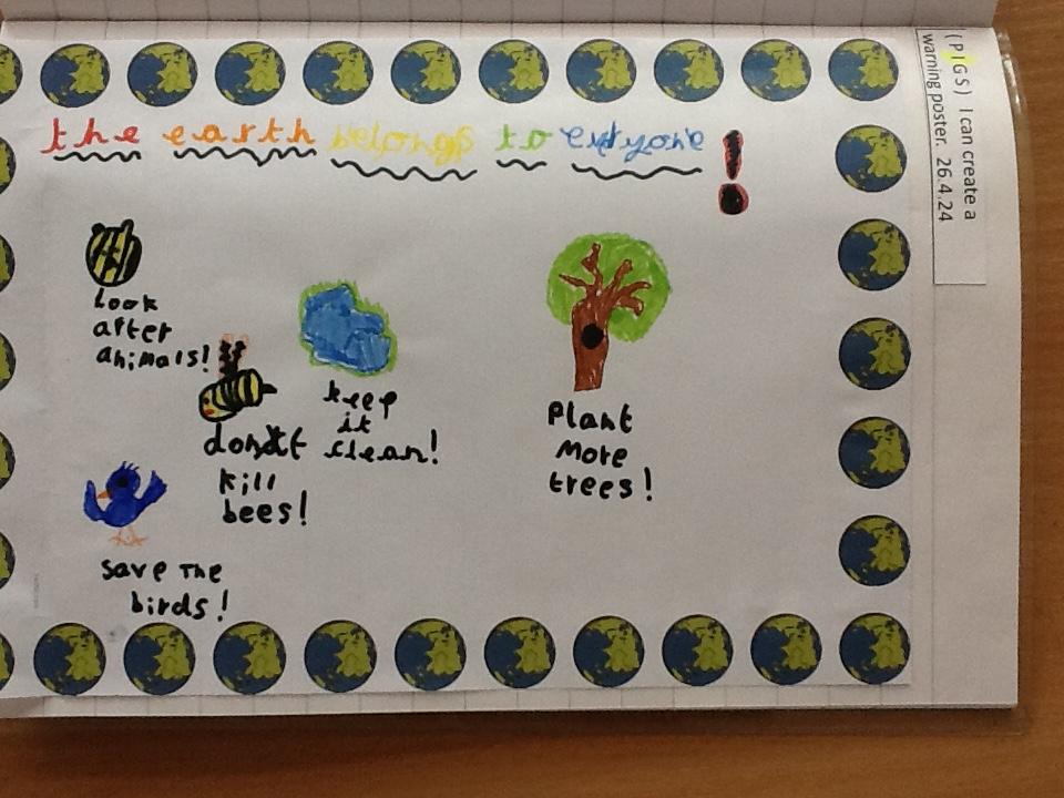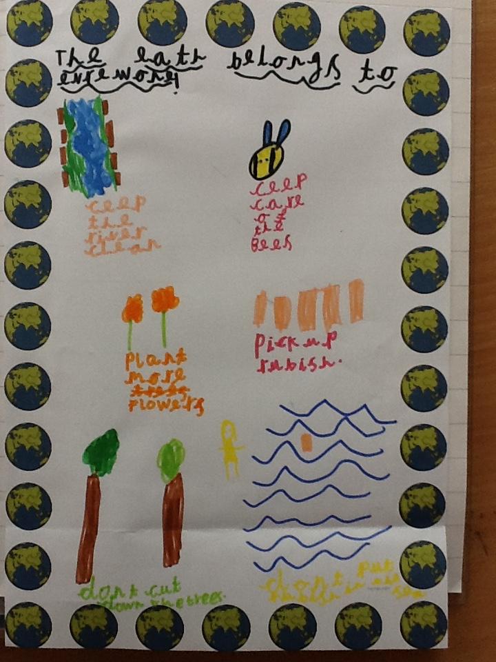 We talked abut how the earth belongs to everyone and it is our job to look after it. The children made some lovely posters informing people how we can look after our planet and protect it.