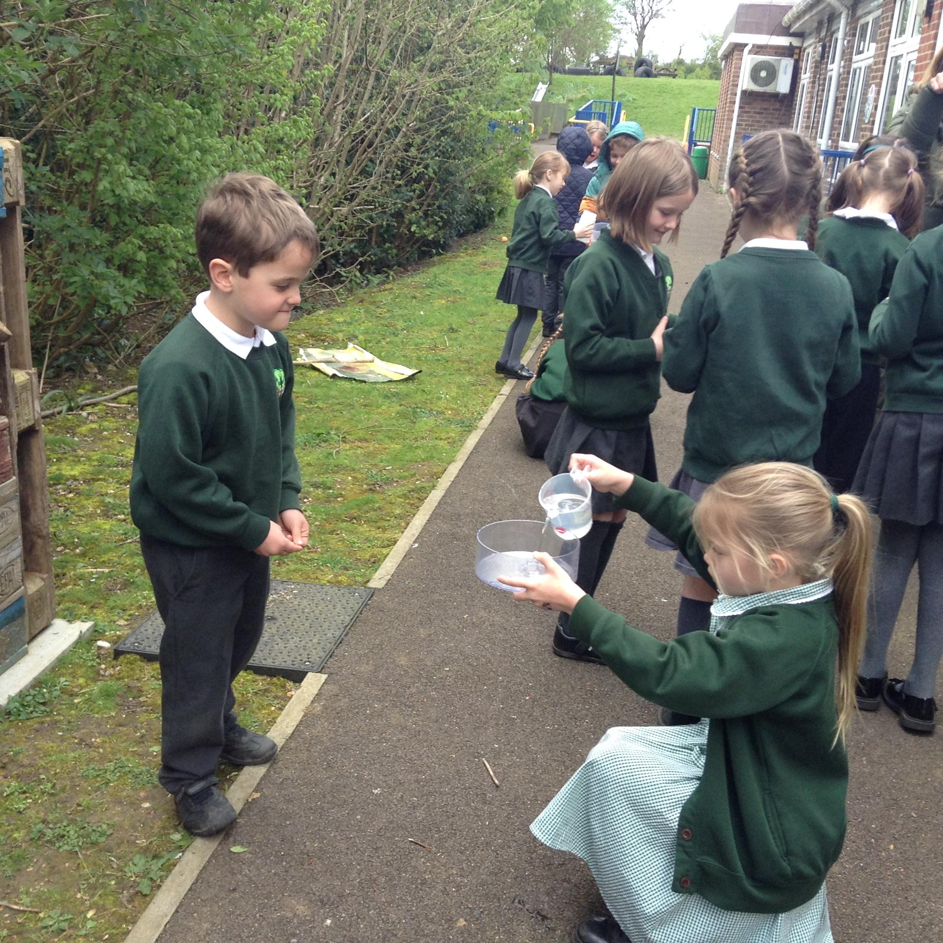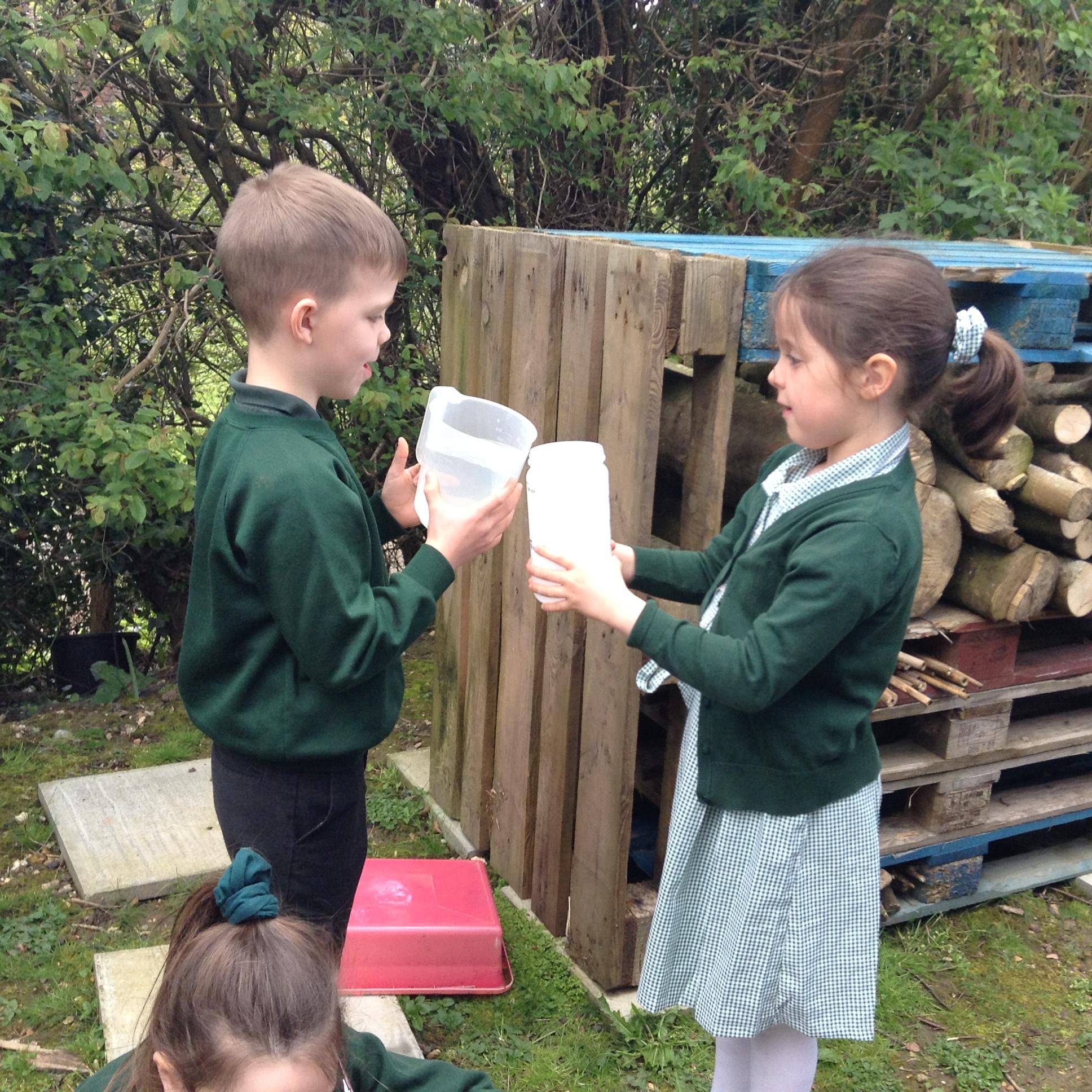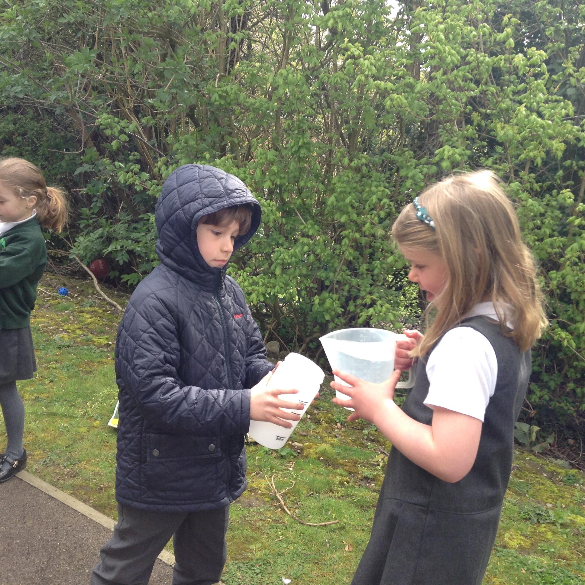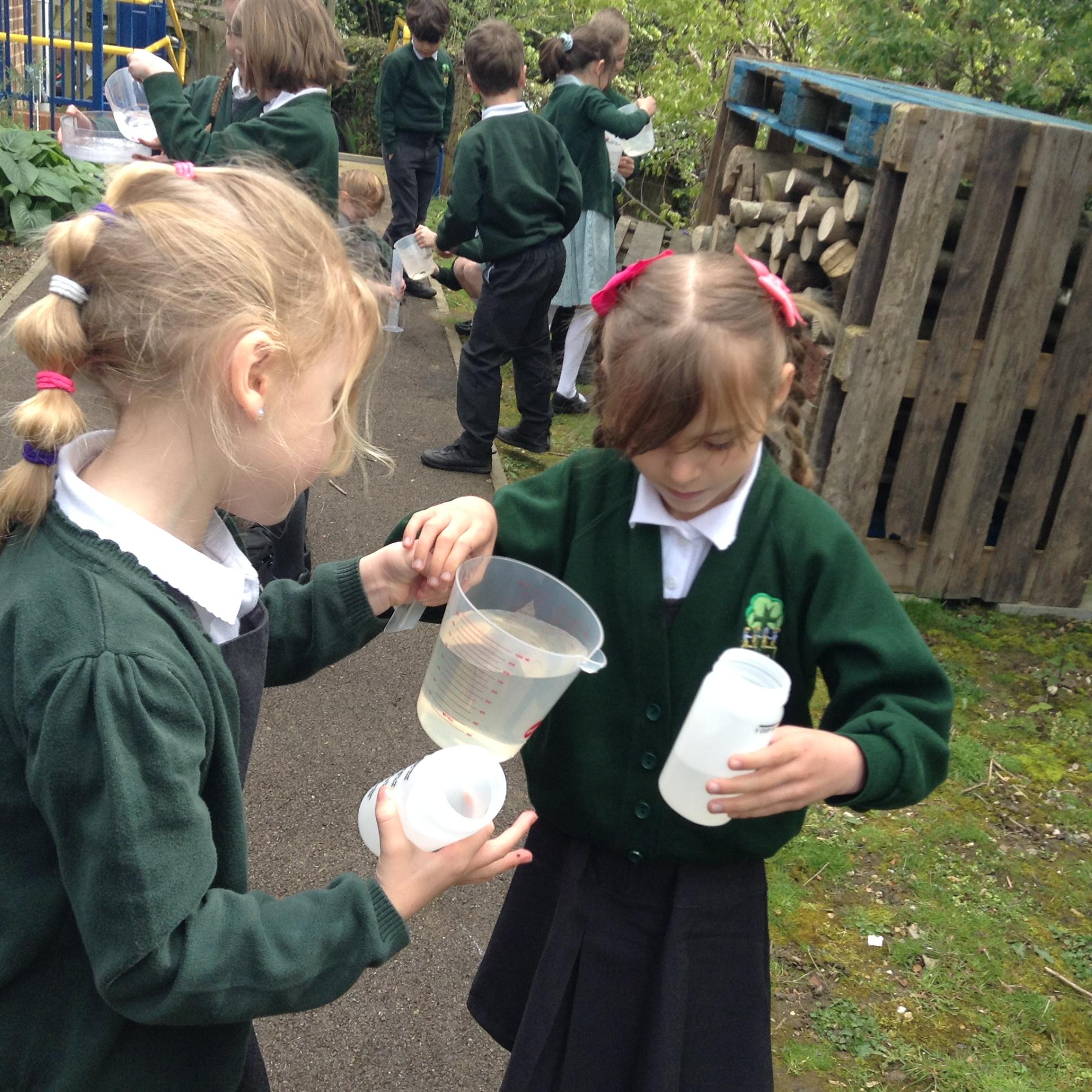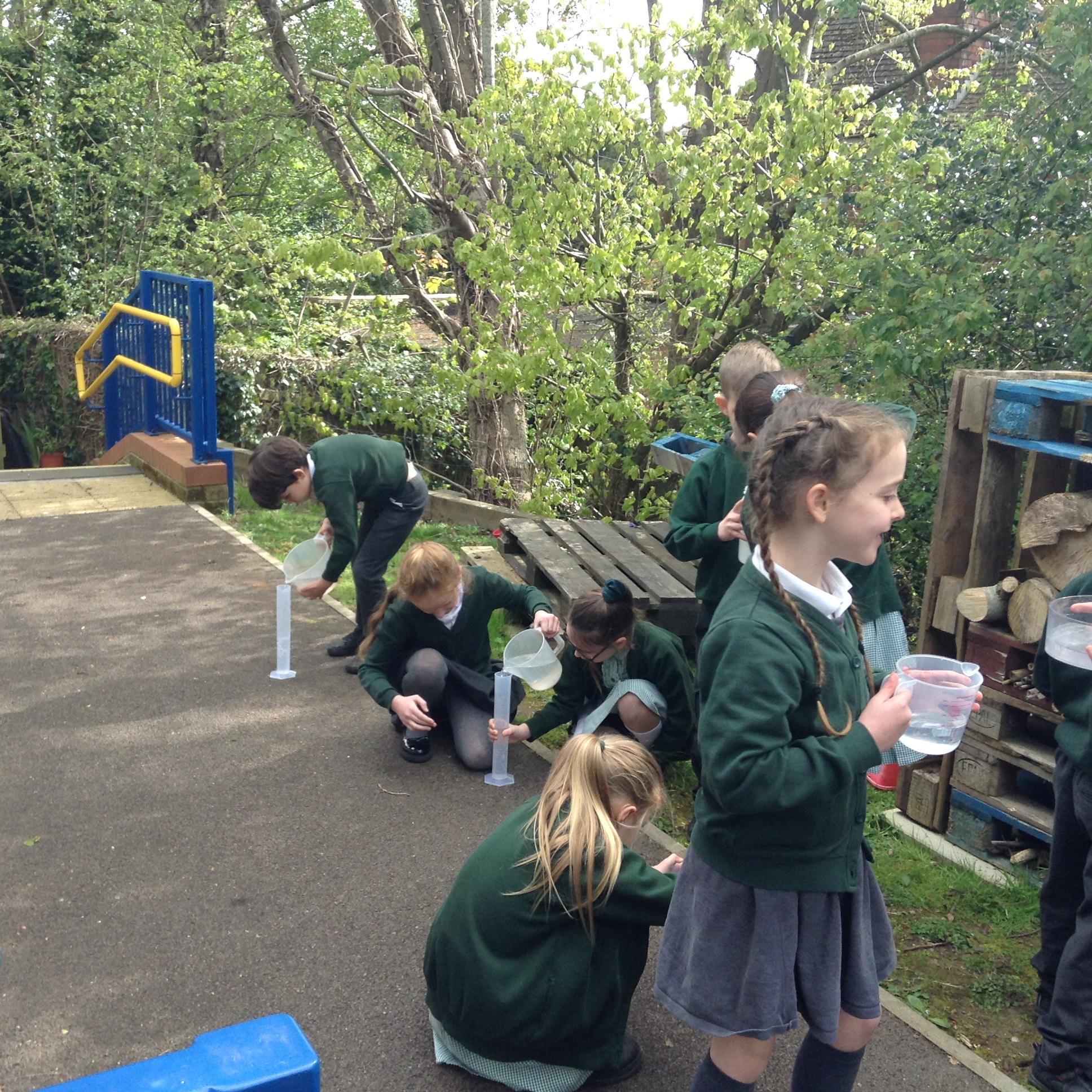 In Maths we have been looking at volume and capacity and measuring in millilitres.