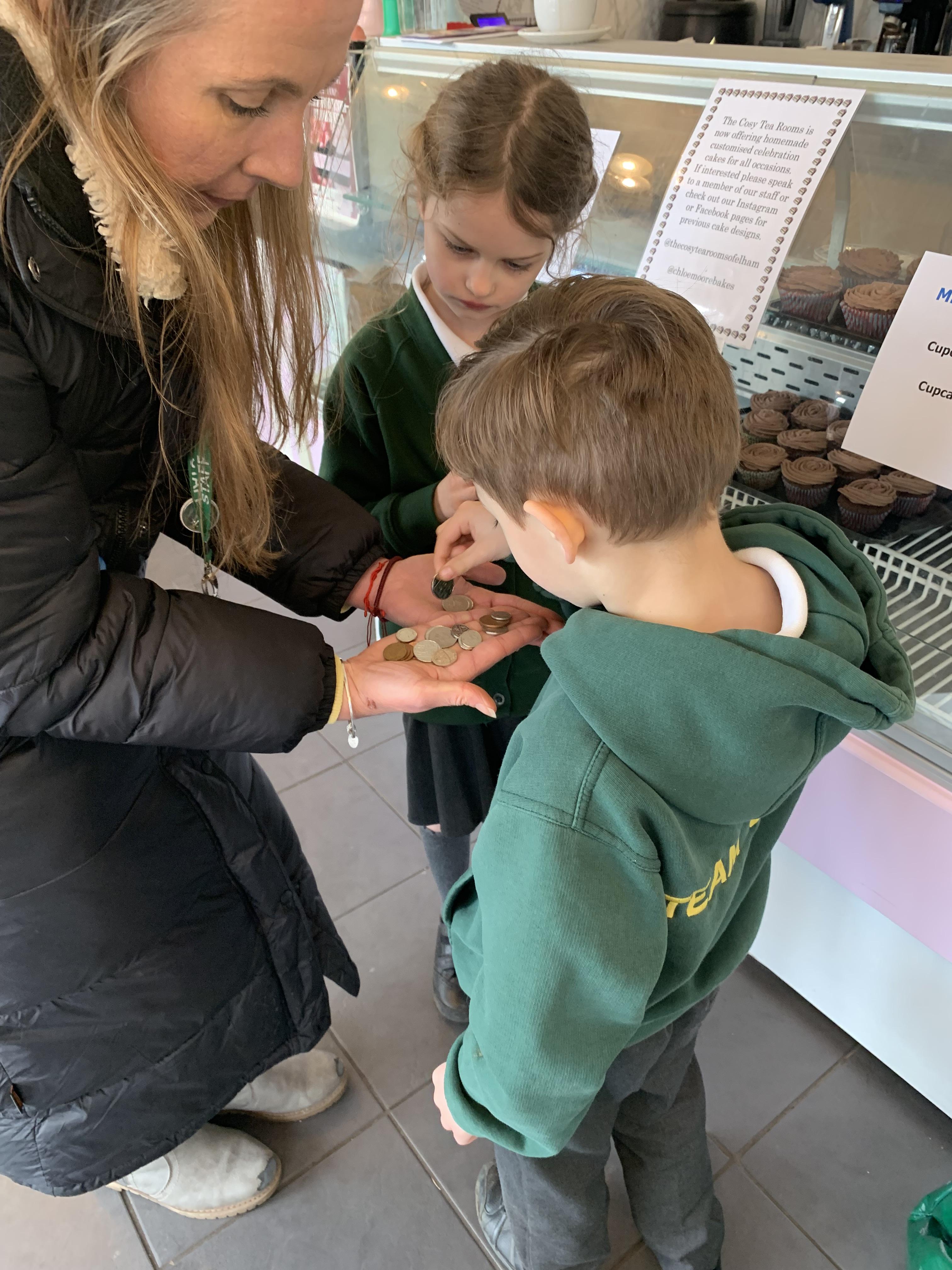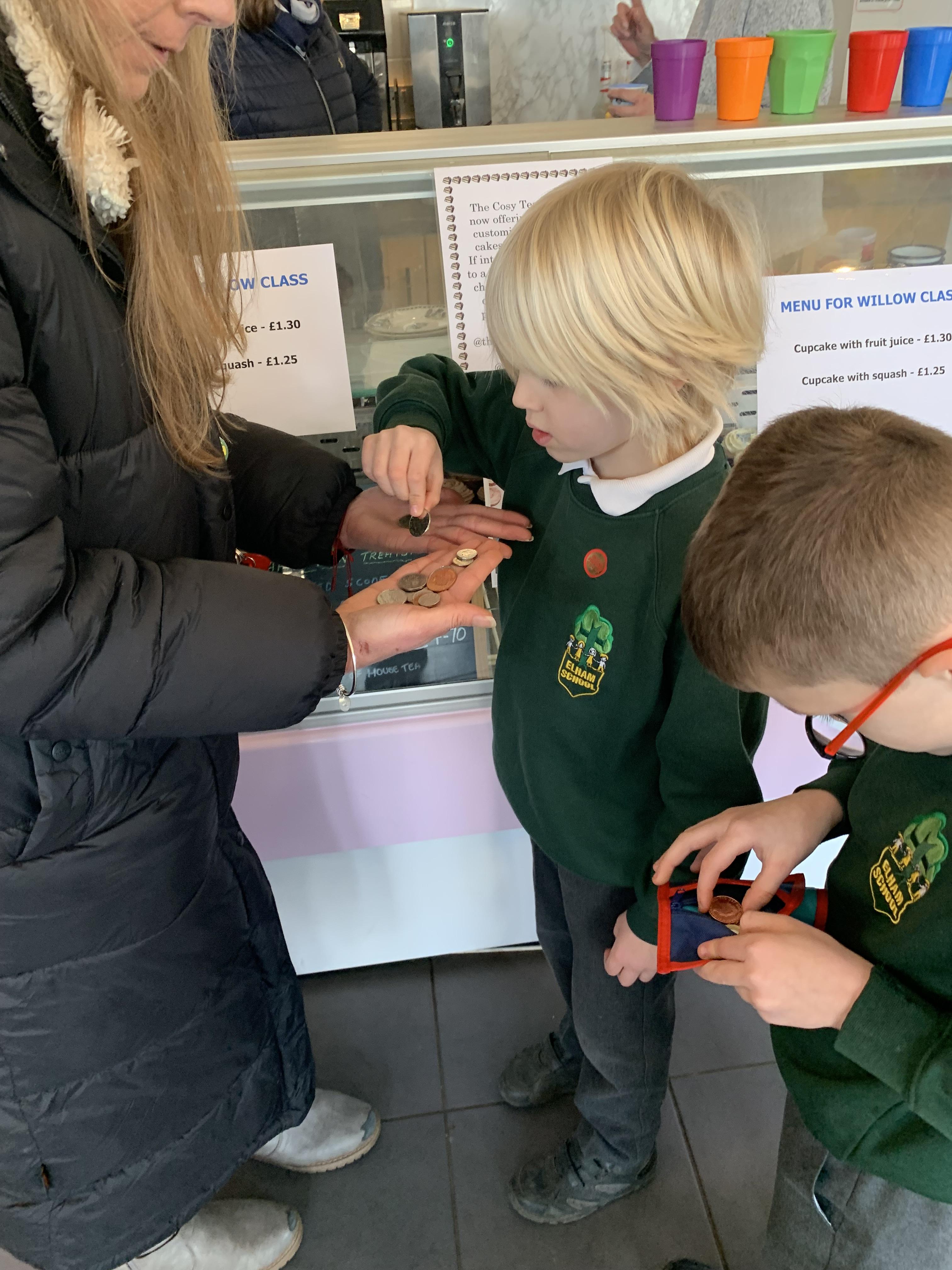 The children had a fabulous time this afternoon counting out their money to buy a cupcake and a drink!