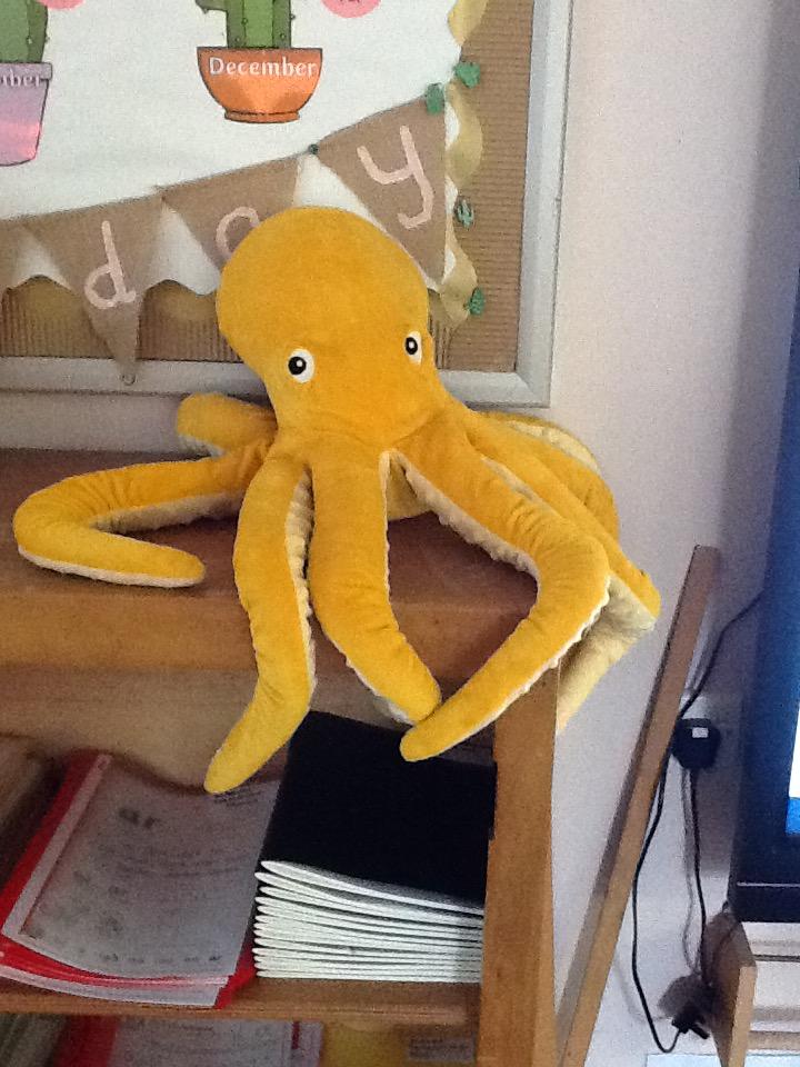 We have started looking at our new book this week in english called 'Leo And The Octopus' by Isabelle Marinov. Leo had written a letter to the children today to ask for their advice and also to say that he had left a present for us in the cupboard!! To our amazement we found an octopus that needs looking after for the rest of the term!
