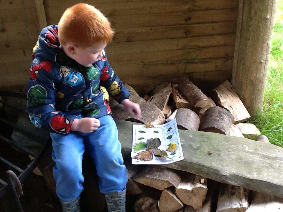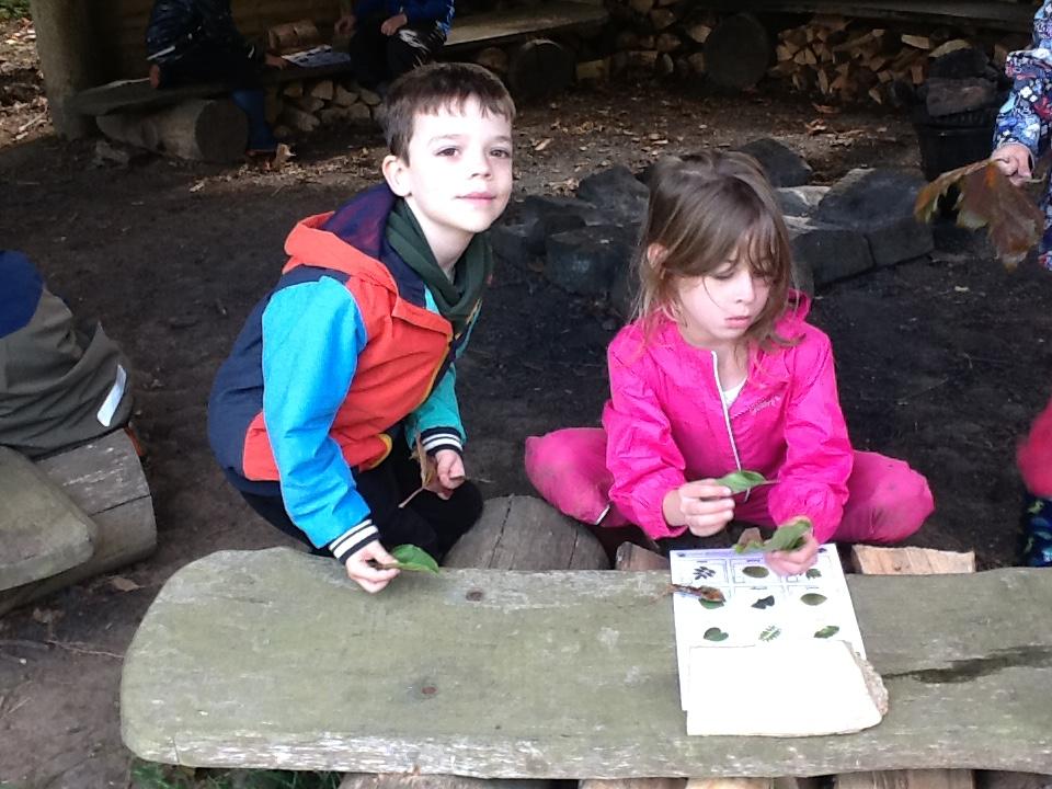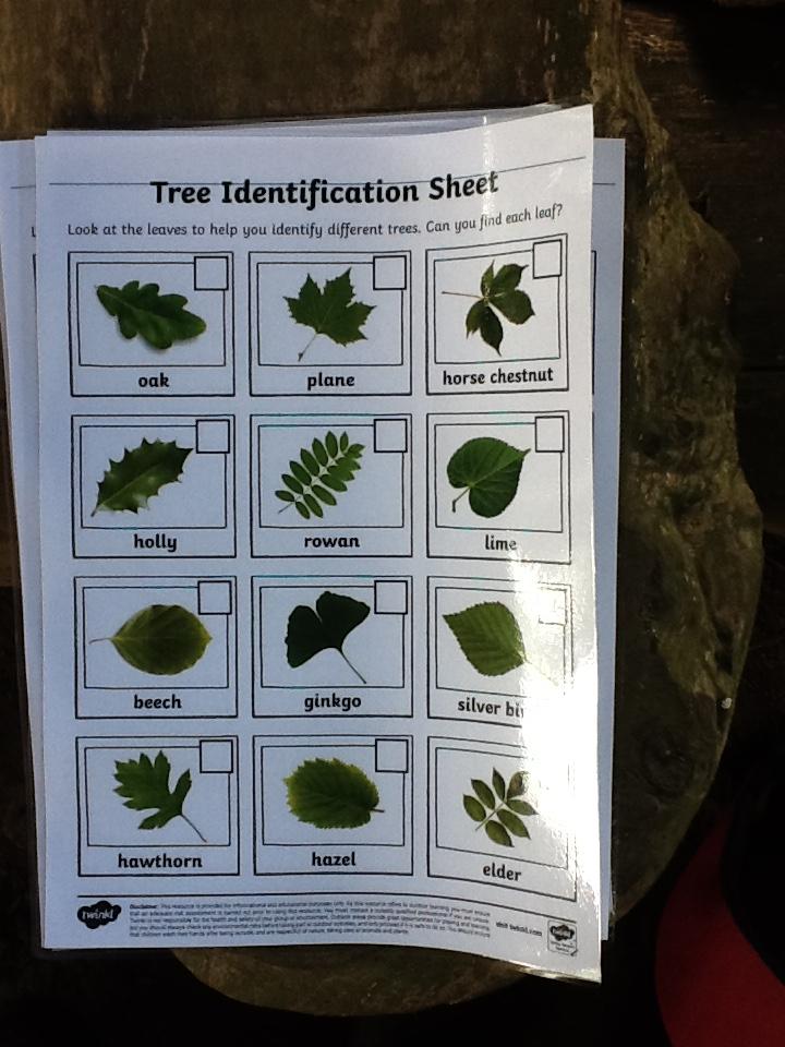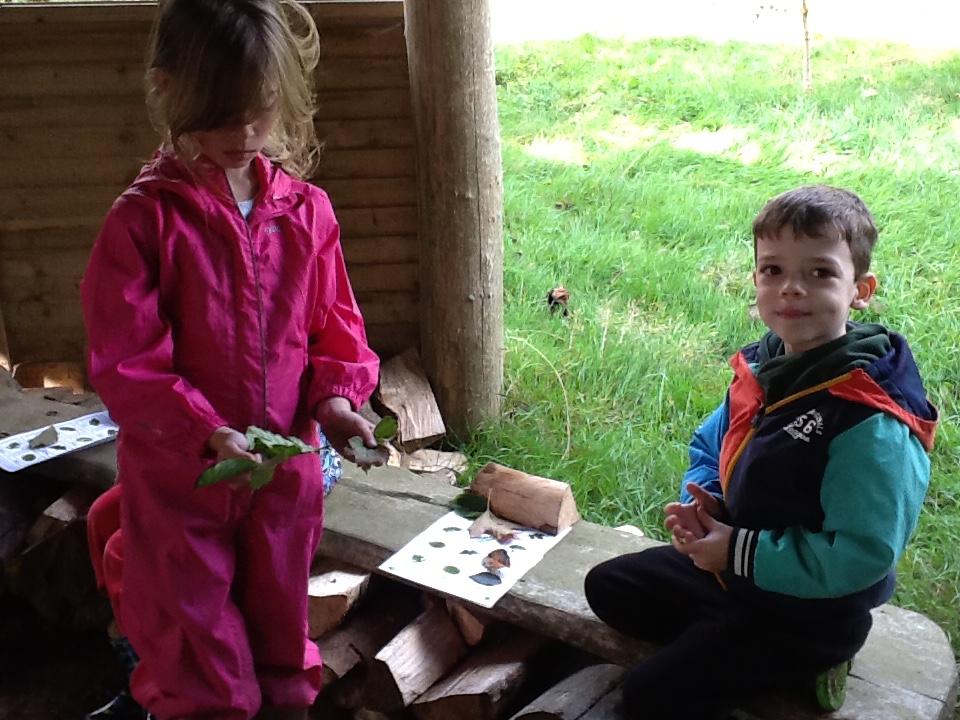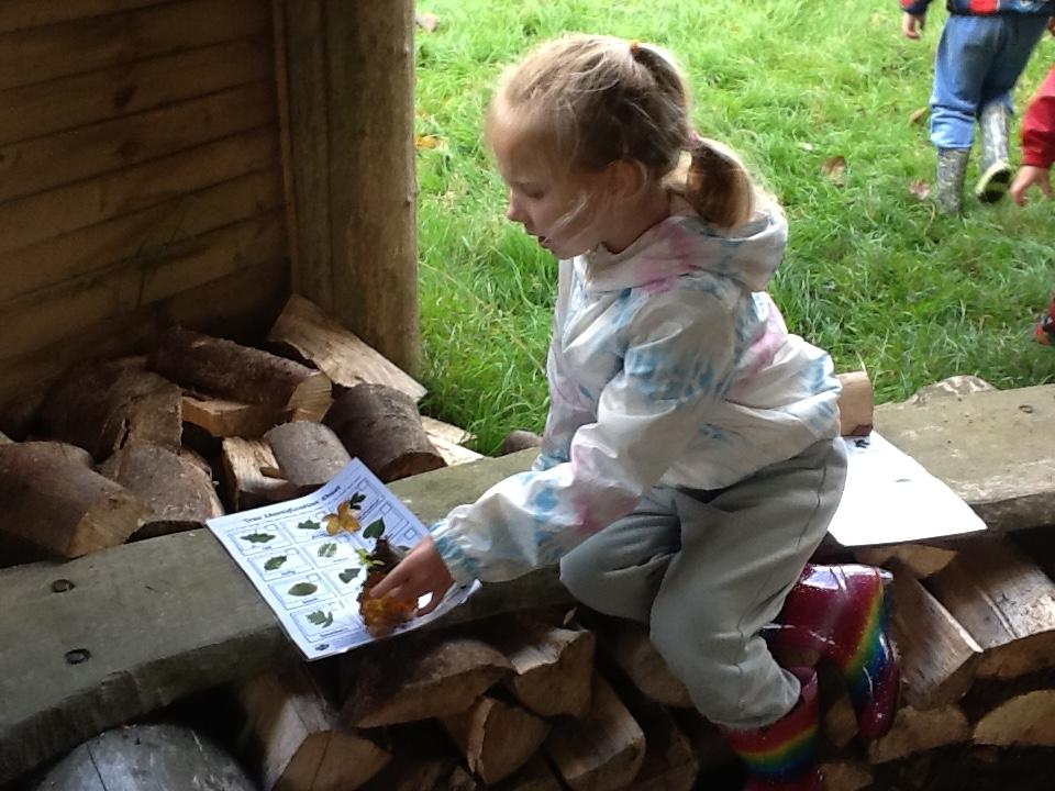 Another week has flown by and here we are back in the woods again. The weather was good to us and we were very lucky not to get drenched. Today's activity was to identify different leaves. All the children found 6 different leaves and compared them to the ones on their sheets