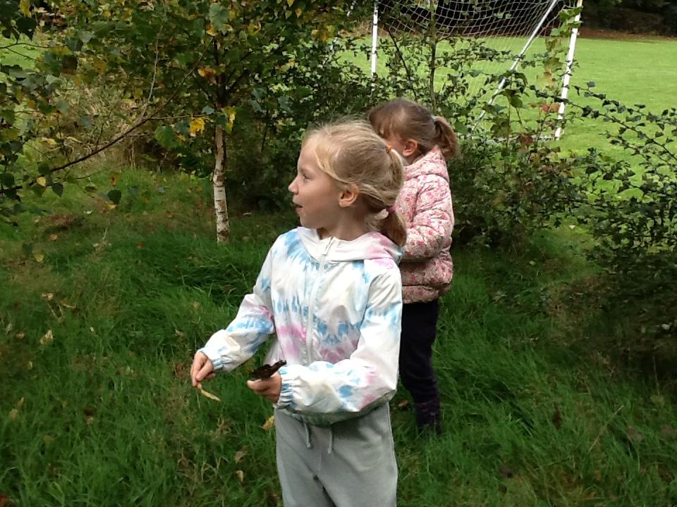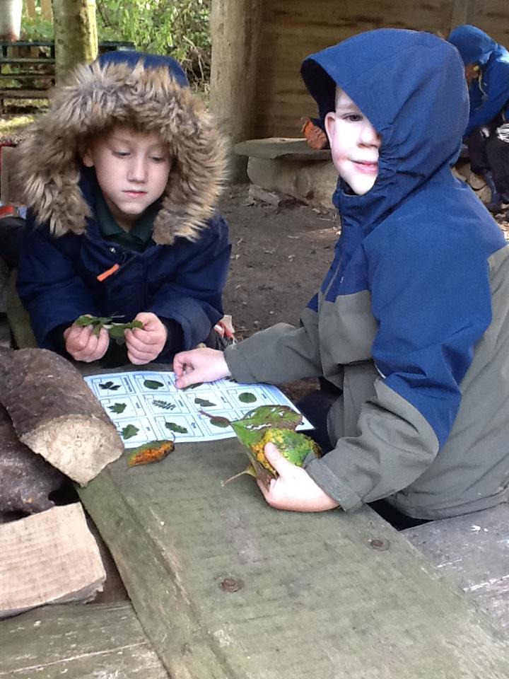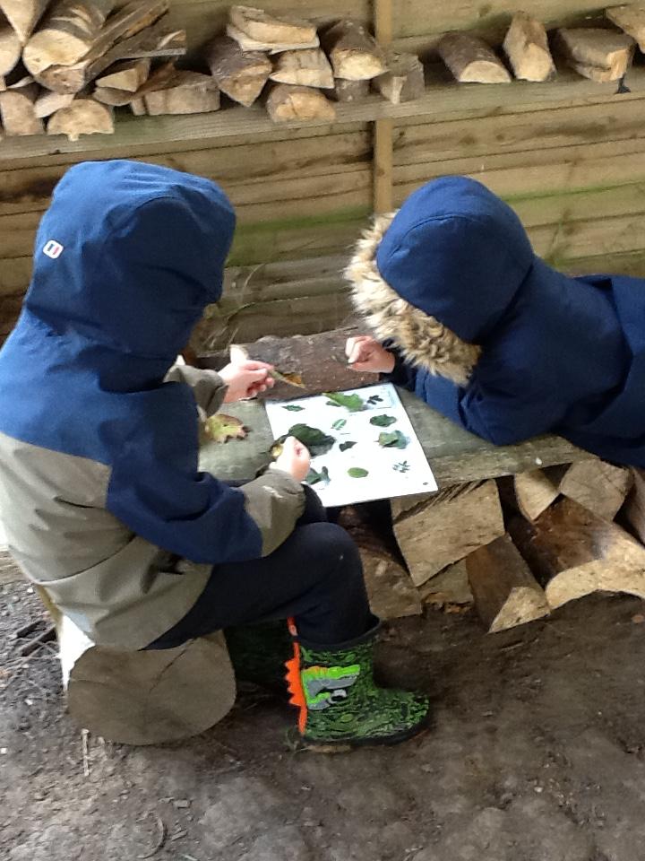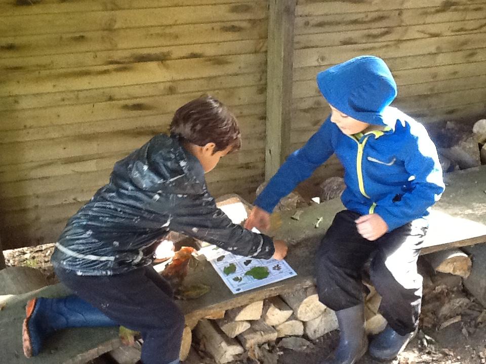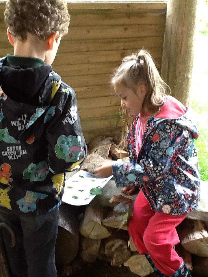 Another week has flown by and here we are back in the woods again. The weather was good to us and we were very lucky not to get drenched. Today's activity was to identify different leaves. All the children found 6 different leaves and compared them to the ones on their sheets