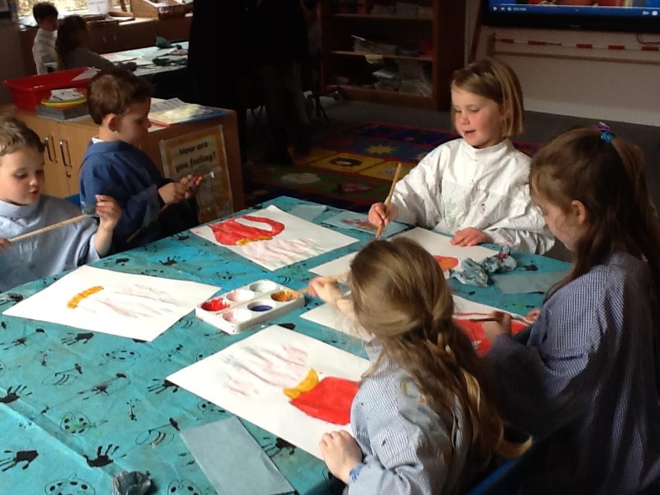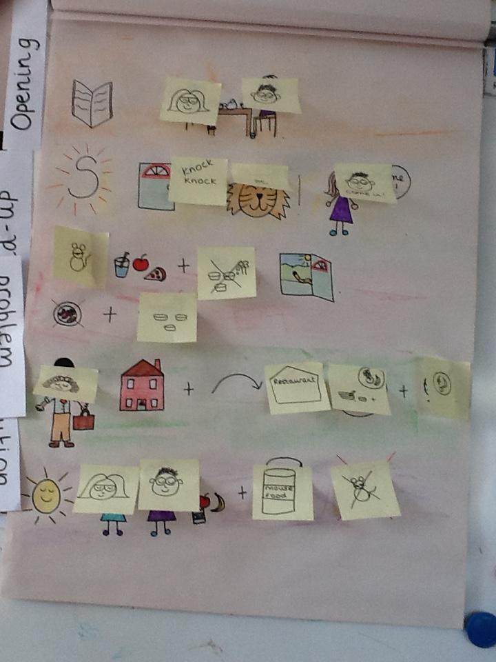The children have started innovating their story of The Tiger who came to Tea.  First of all they watched their teacher changing the story, then they did their own.