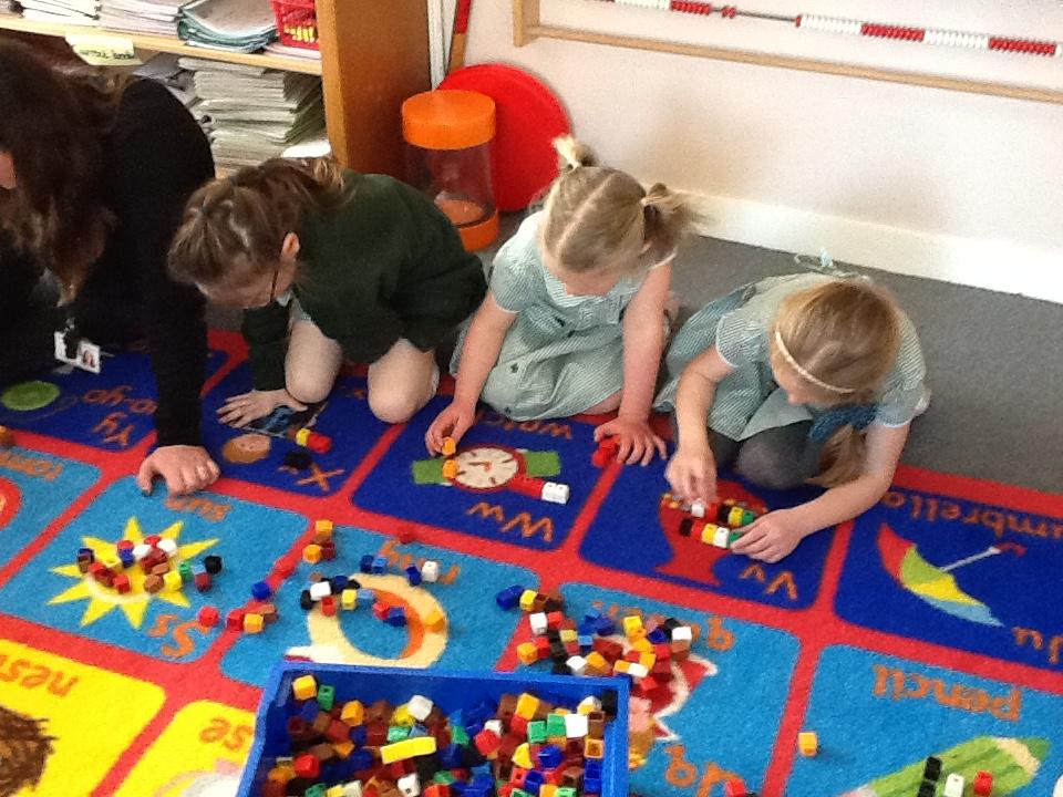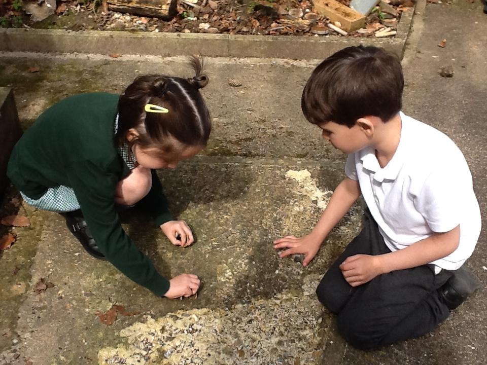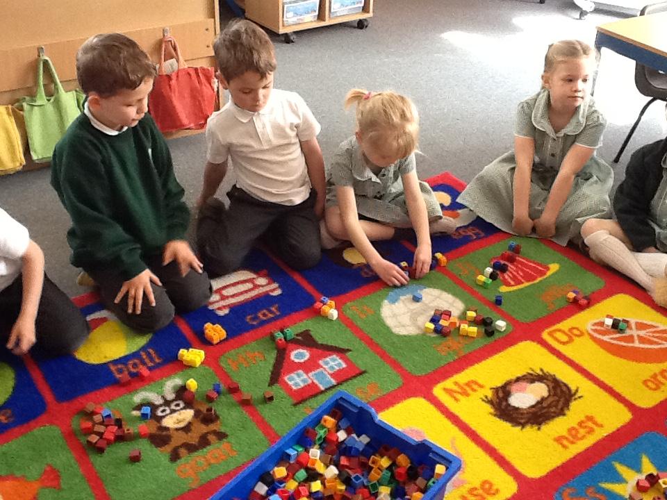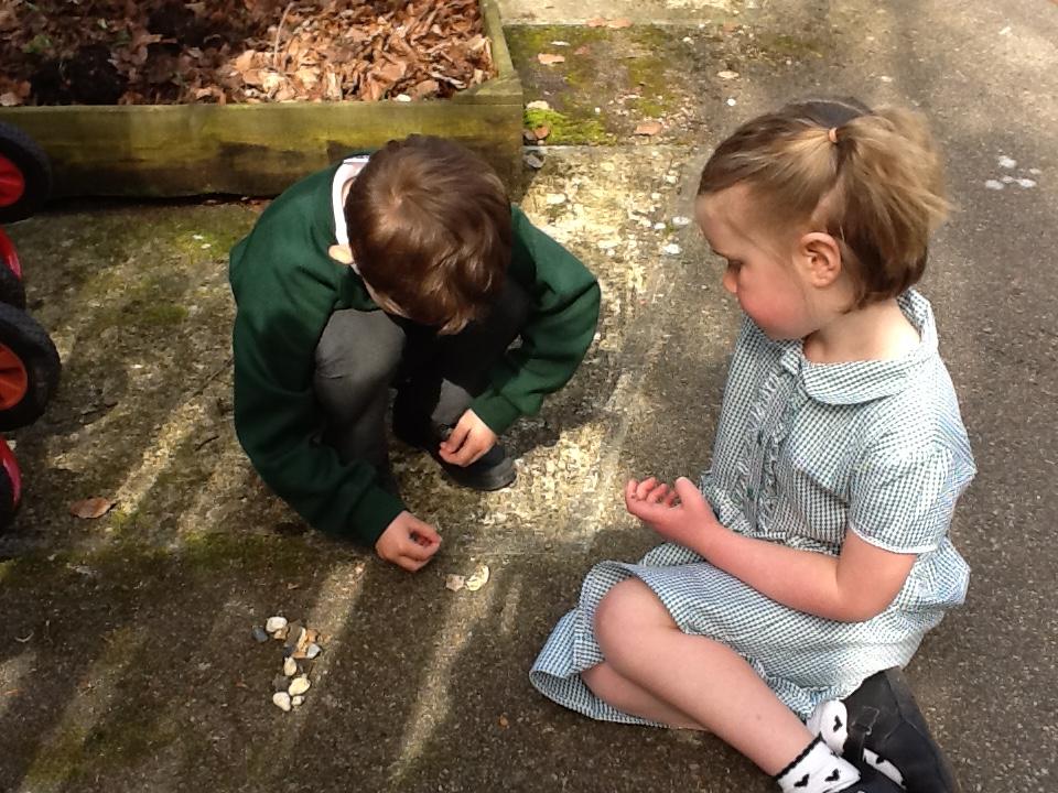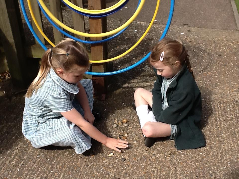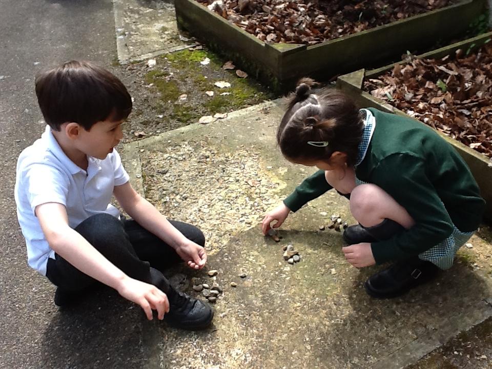 We have been looking at recognising and adding equal groups this week in maths. We are learning how to fill in the stem sentence "There are -----  equal groups of ----". The children have been finding this tricky so we went outside to practice finding different objects to put in to groups and practice saying our sentence verbally.