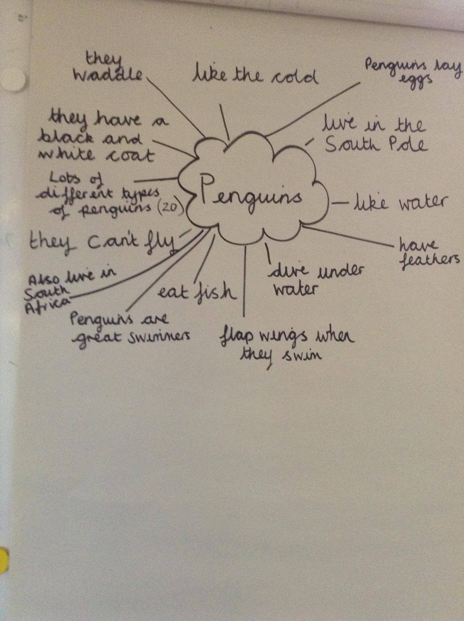 Today the children researched fact's about penguins, we made a whole class mind map before creating our own penguin fact files. We were very impressed by some of the facts the children already knew.