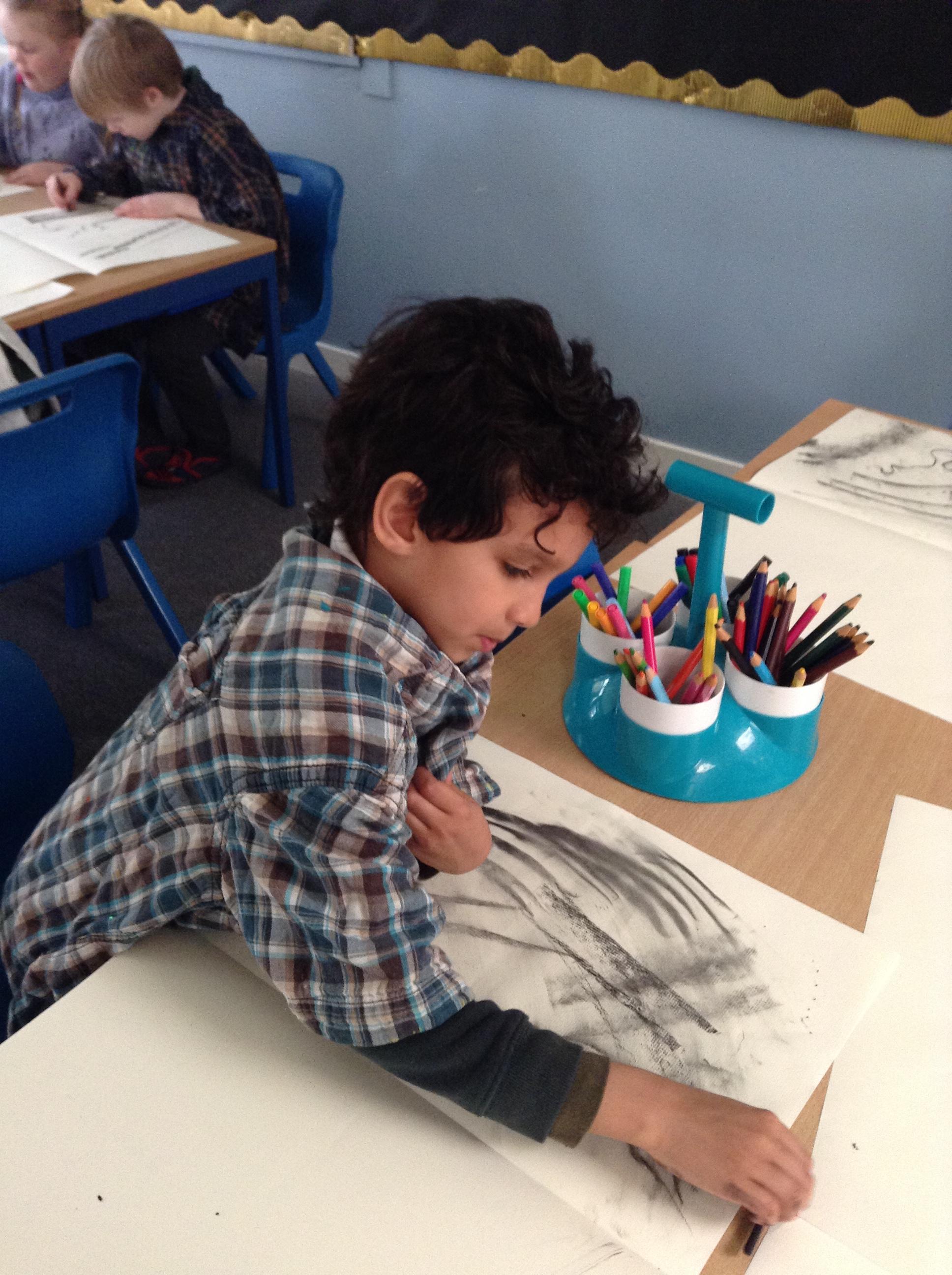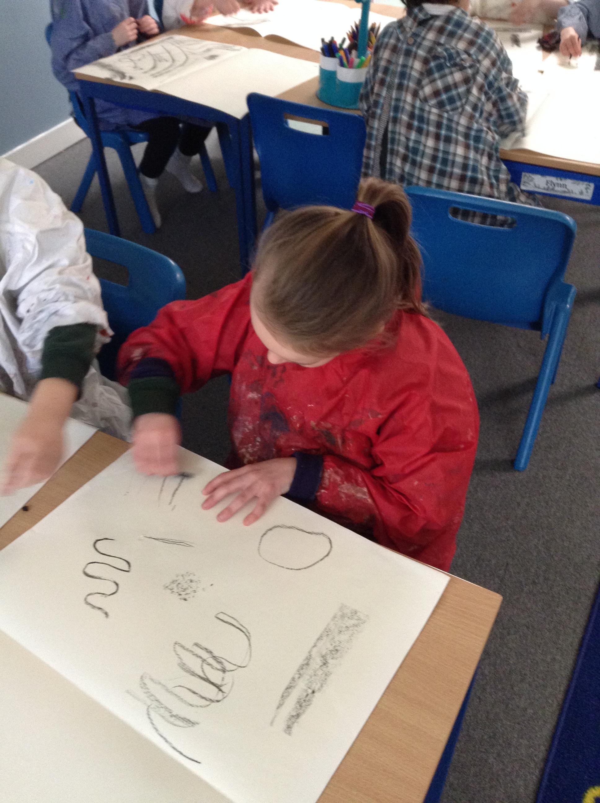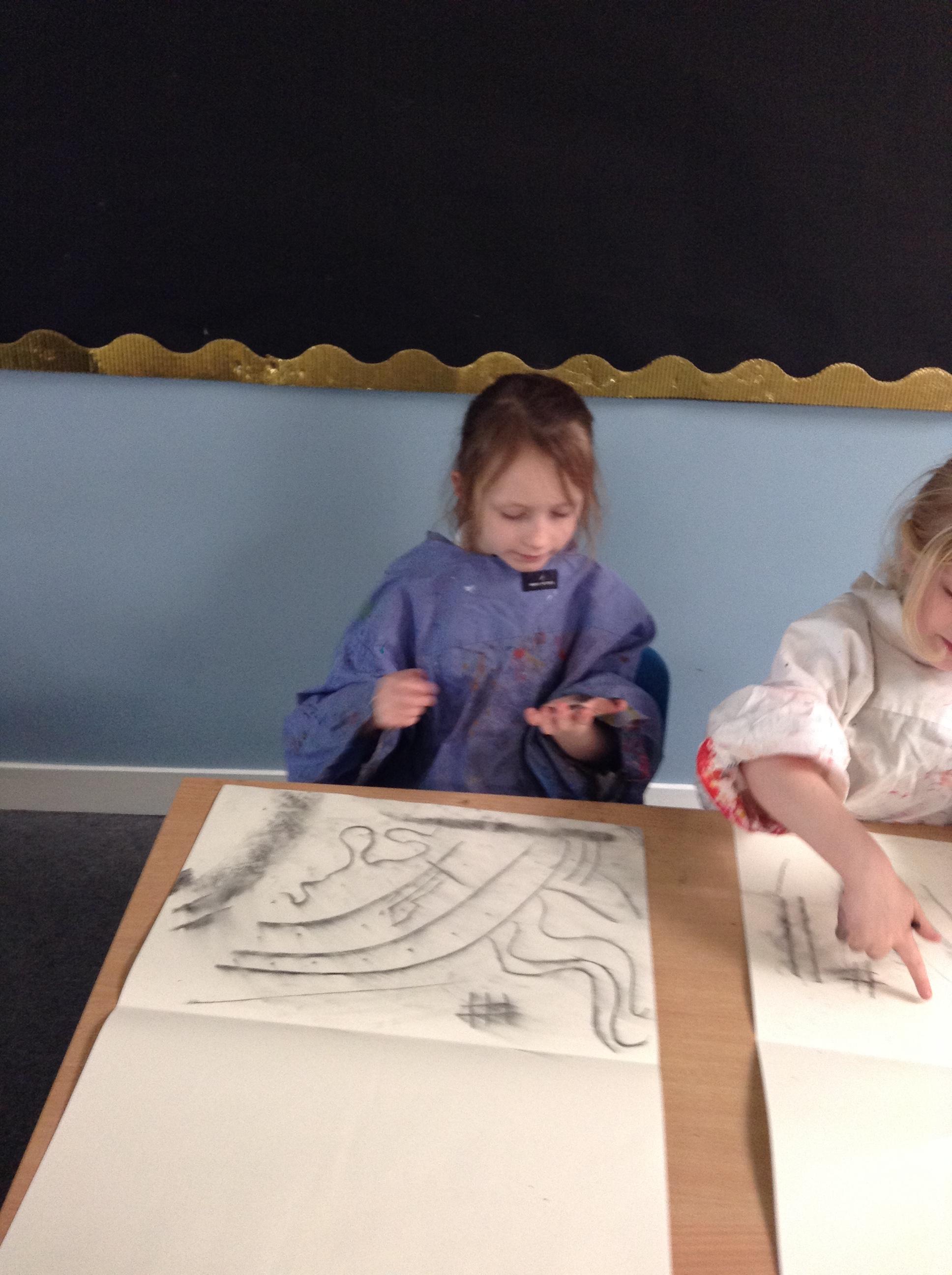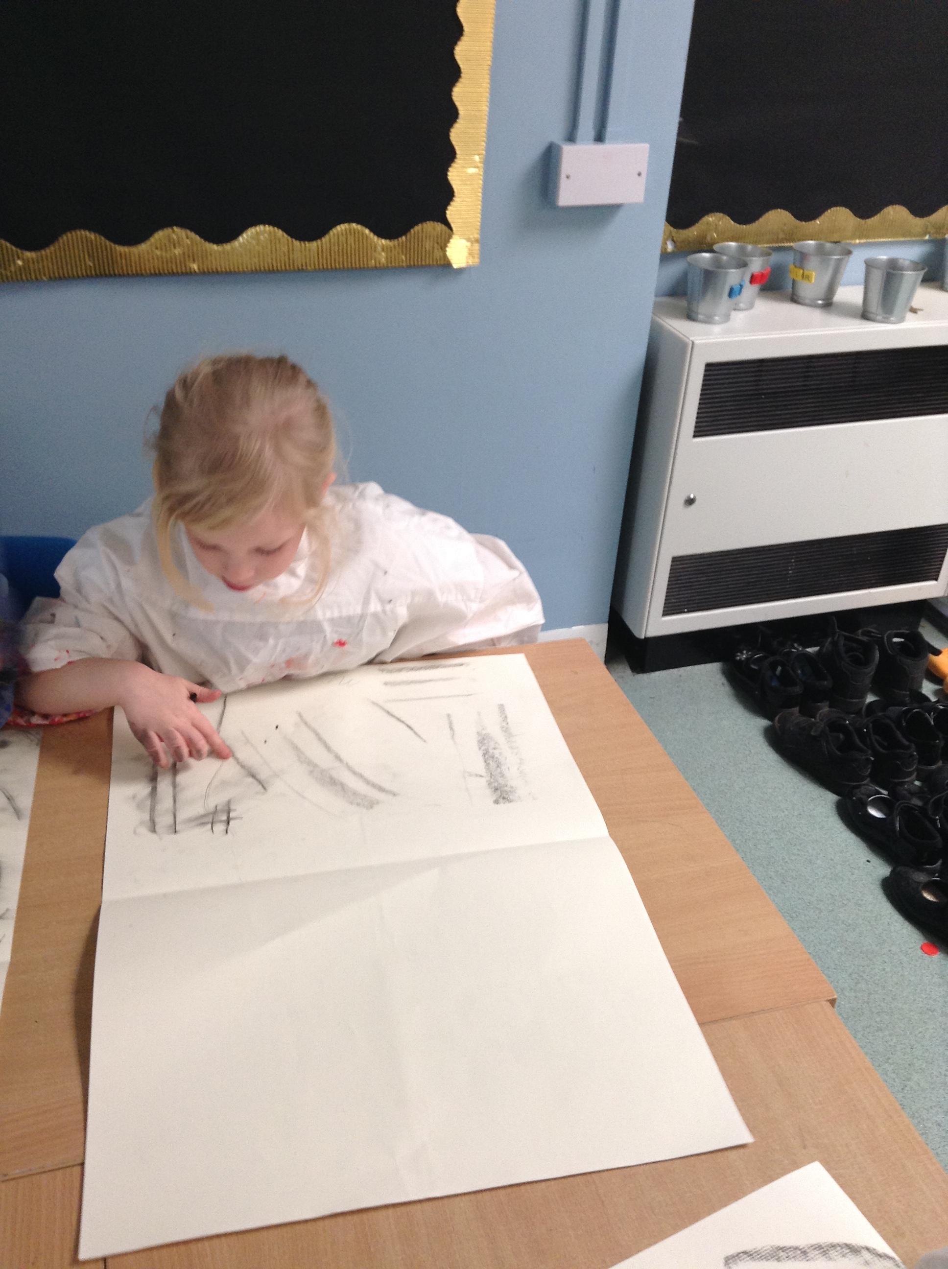 The children have been mark making with charcoal.