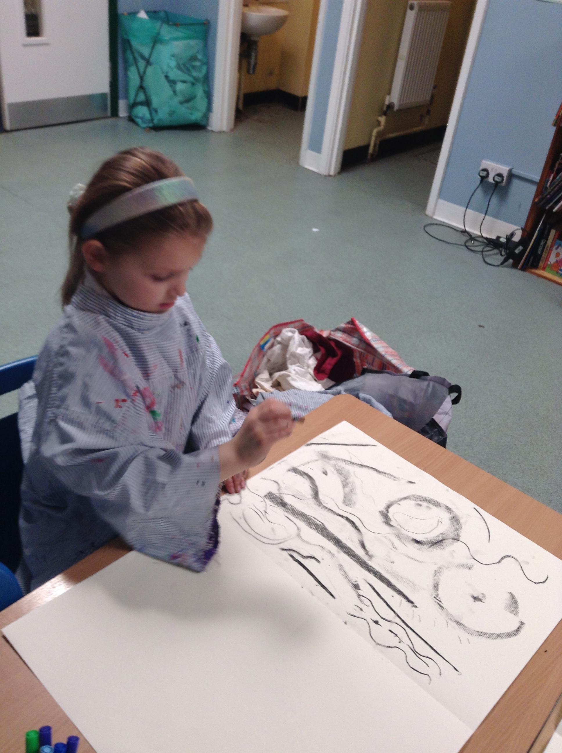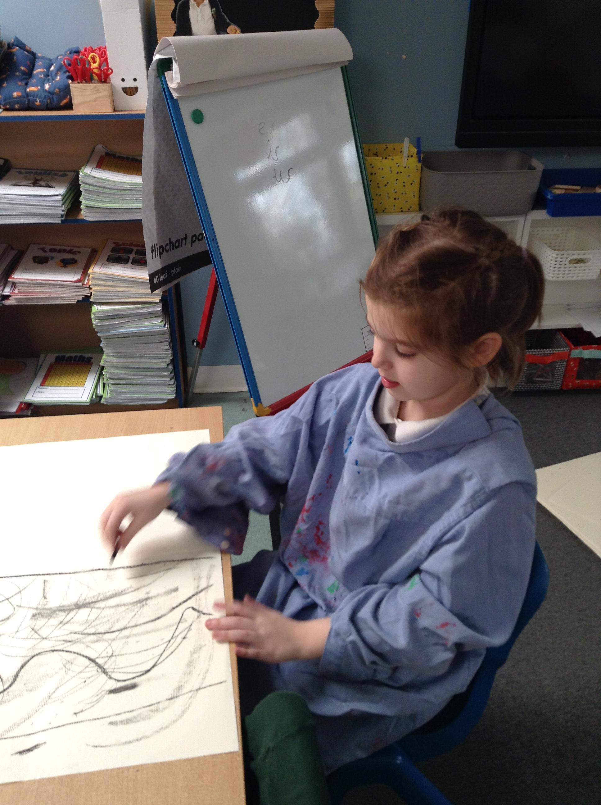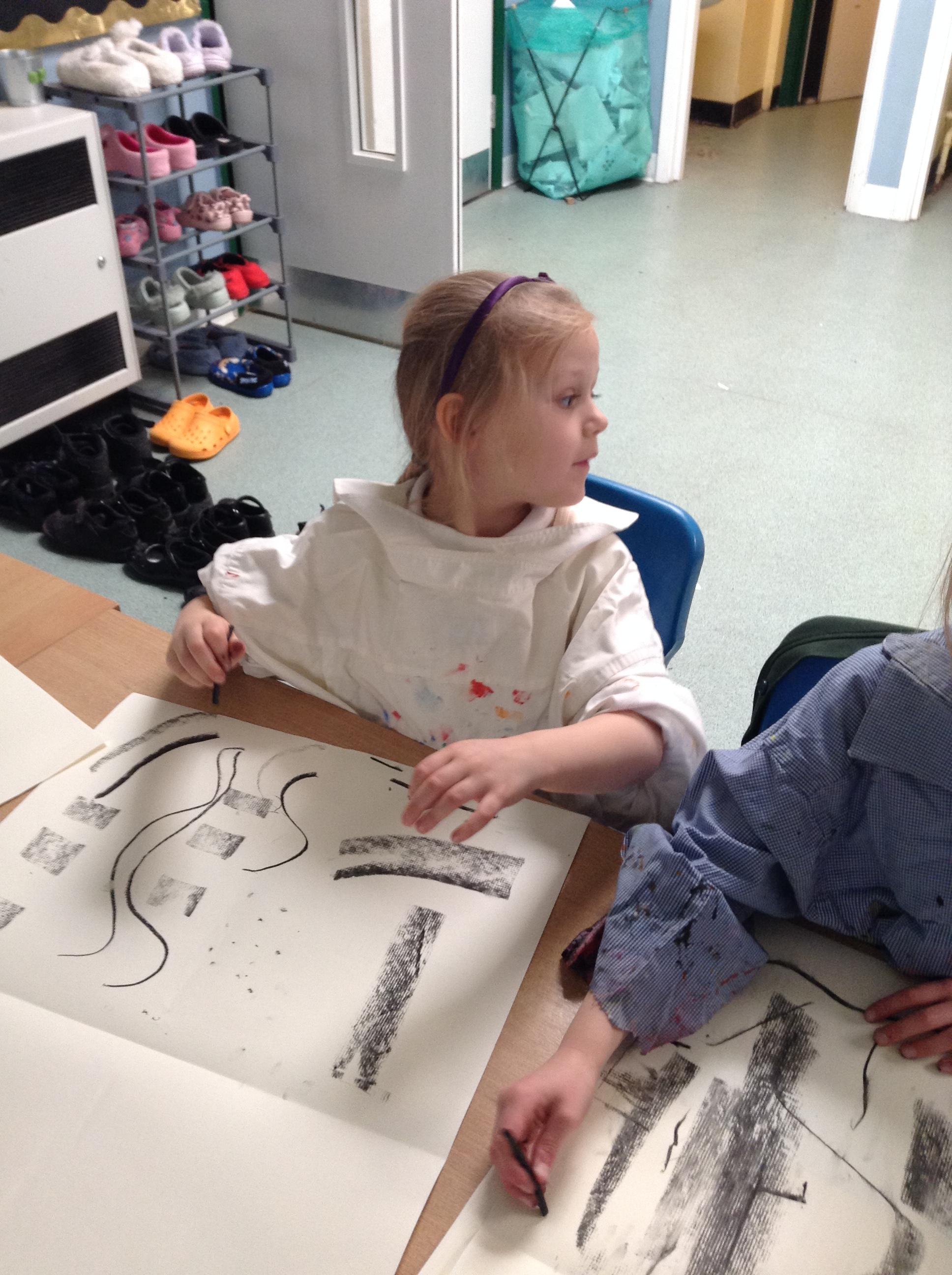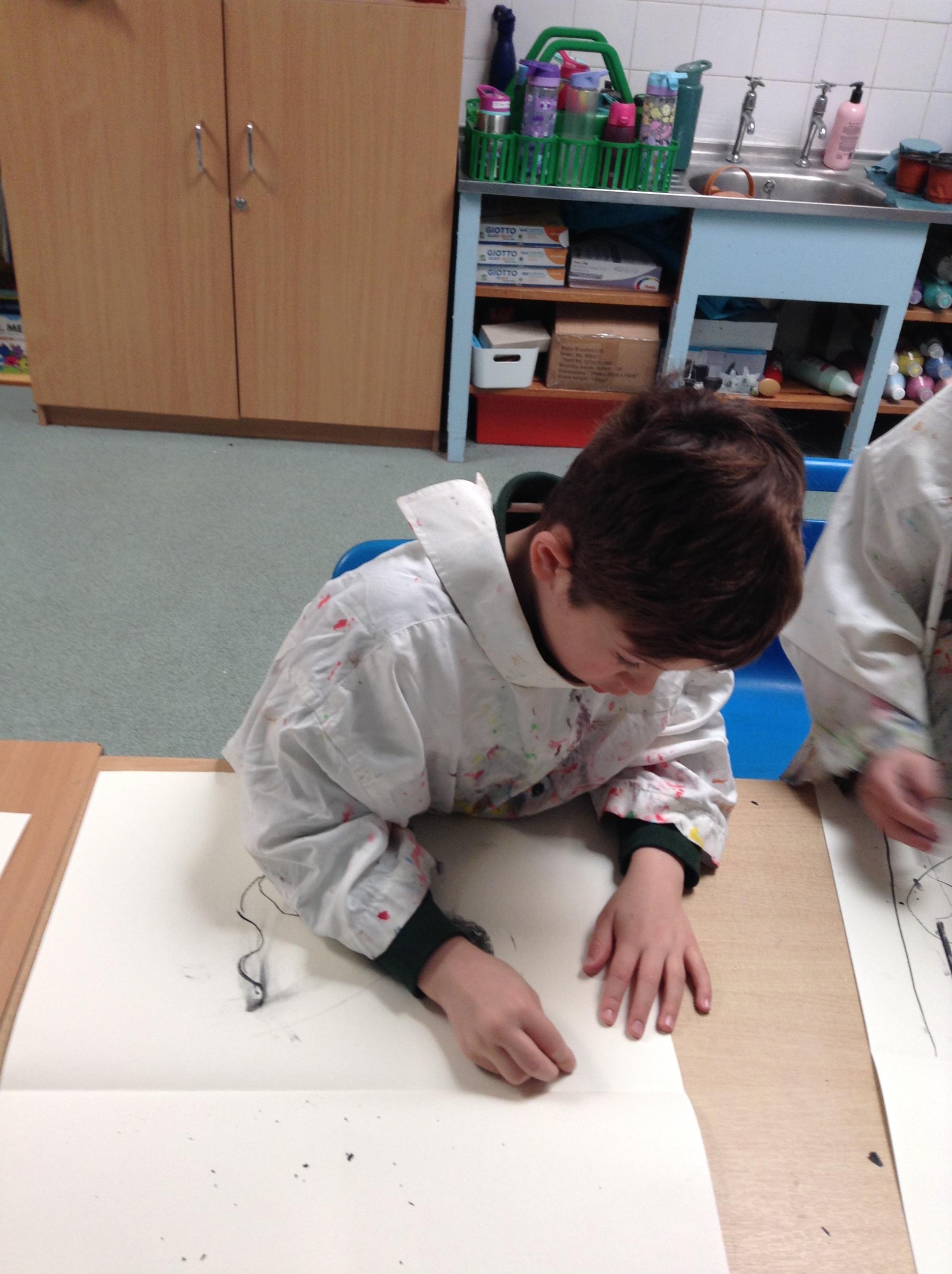 The children have been mark making with charcoal.