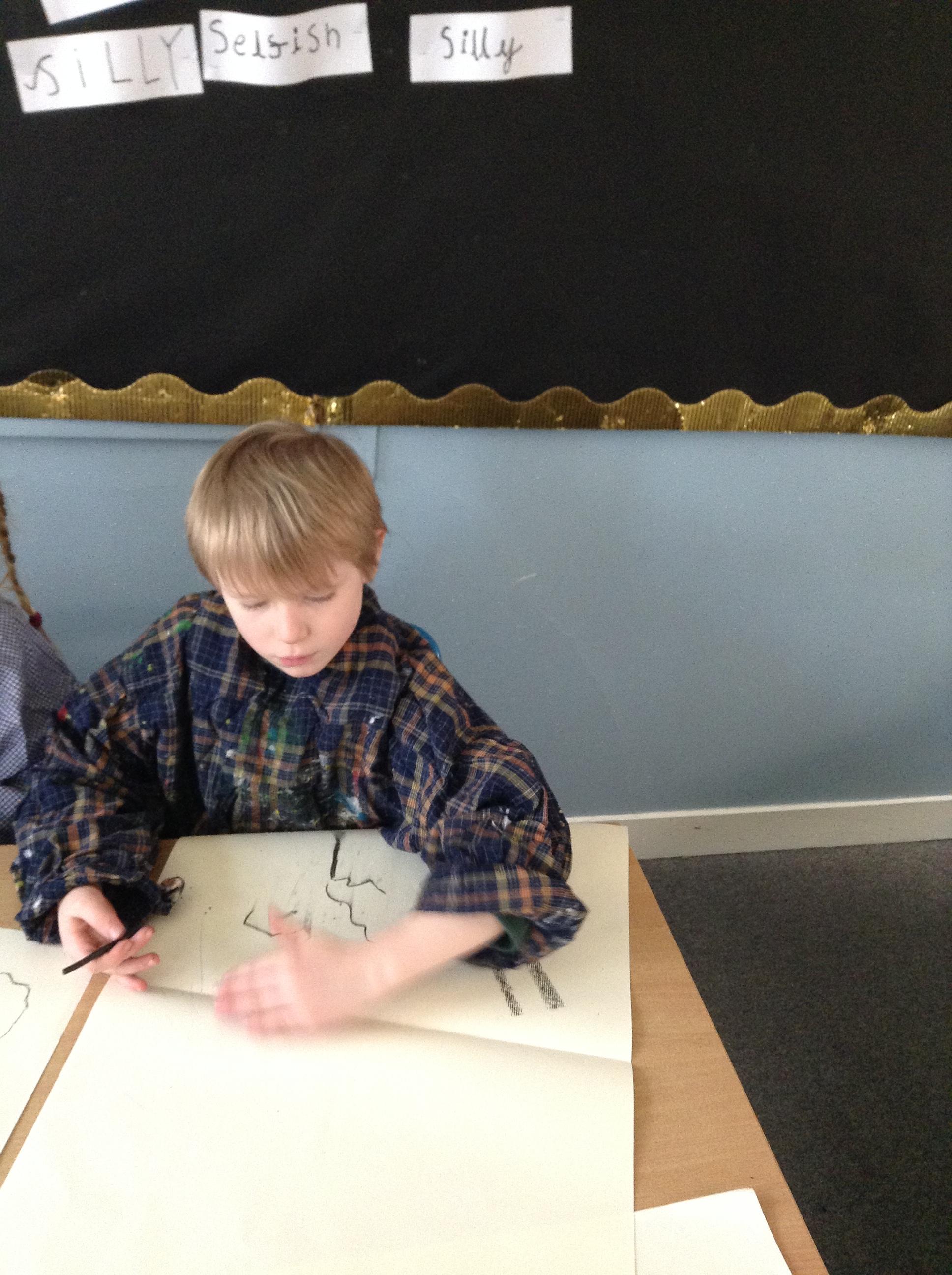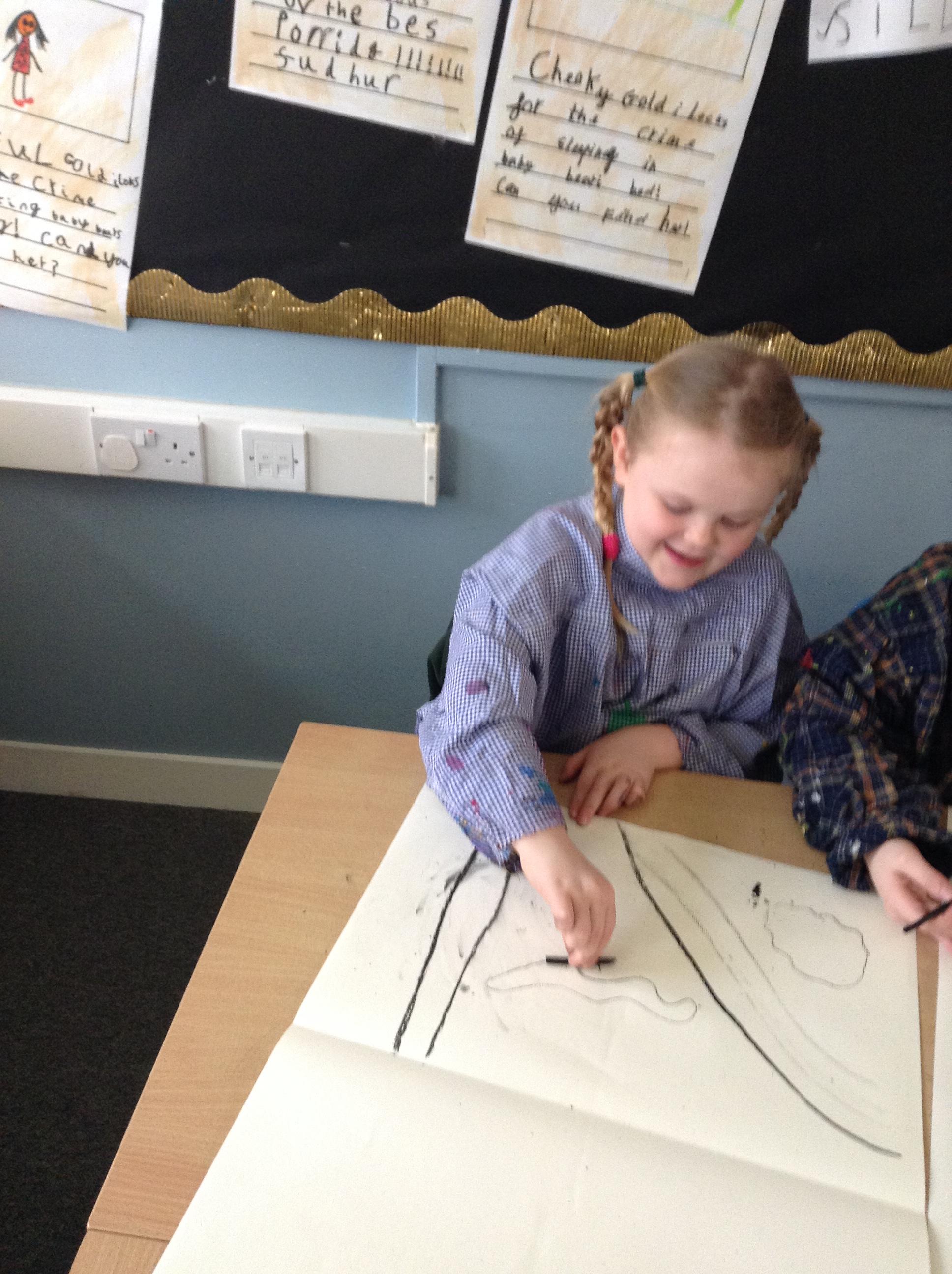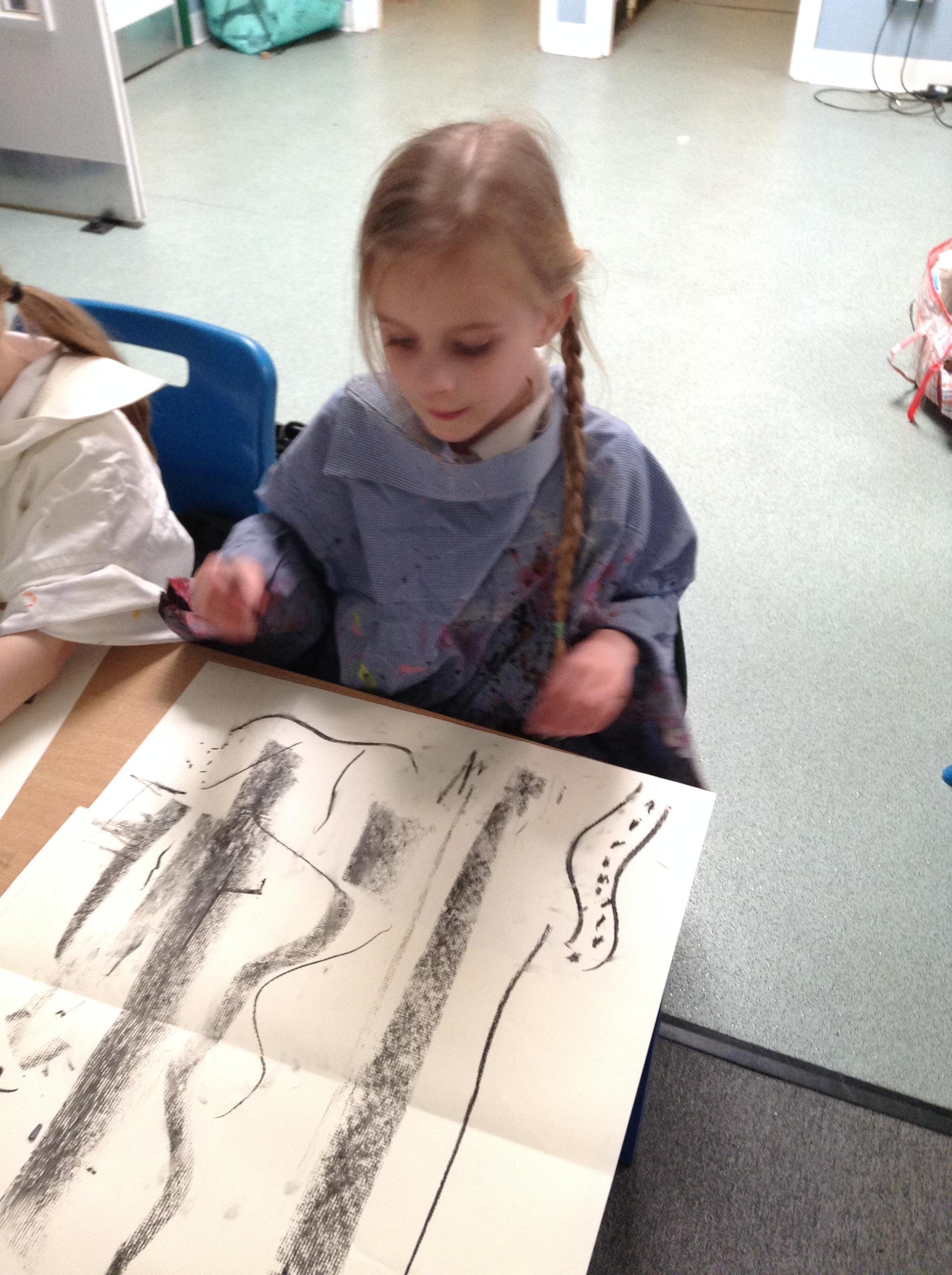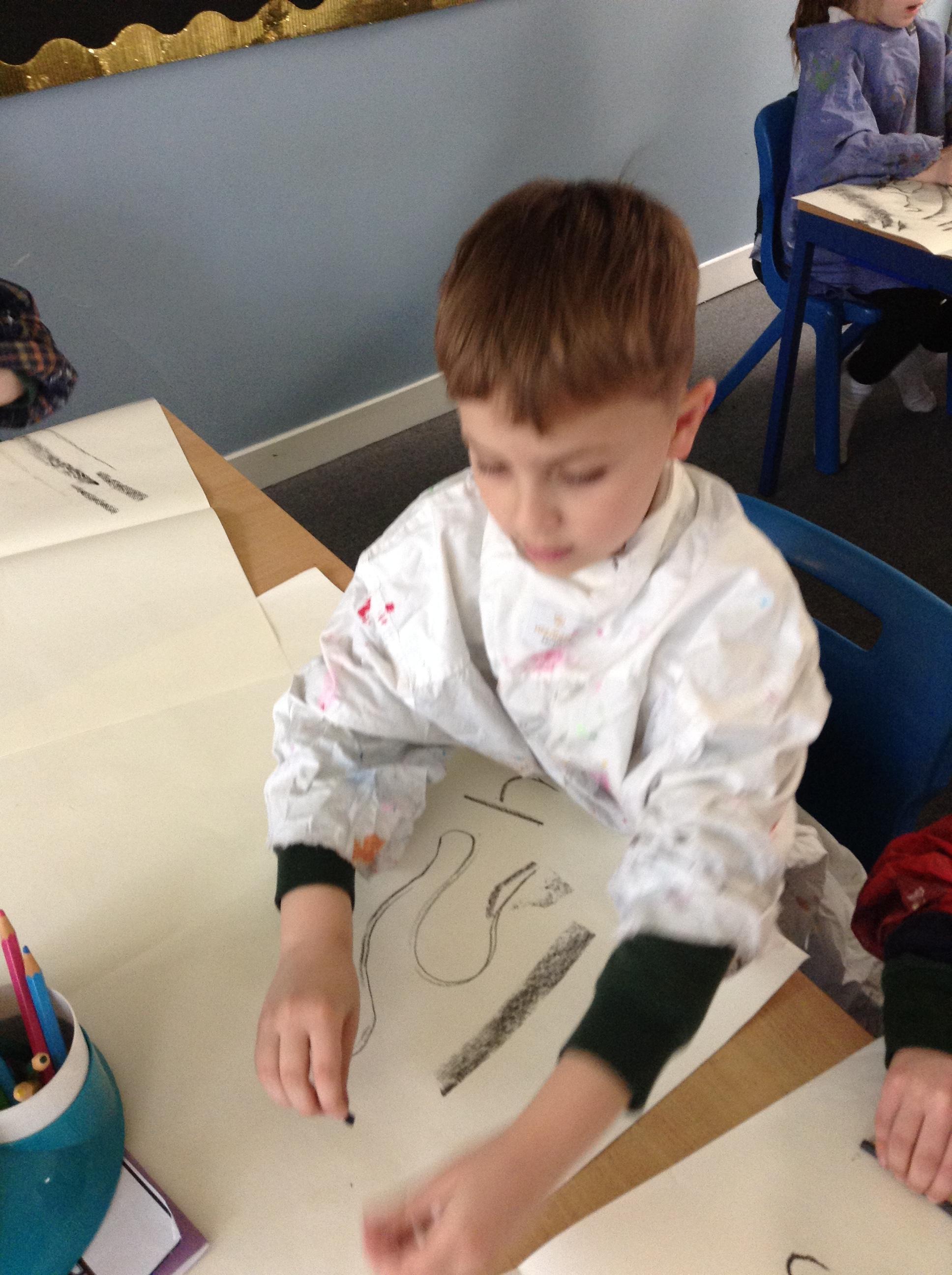 The children have been mark making with charcoal.