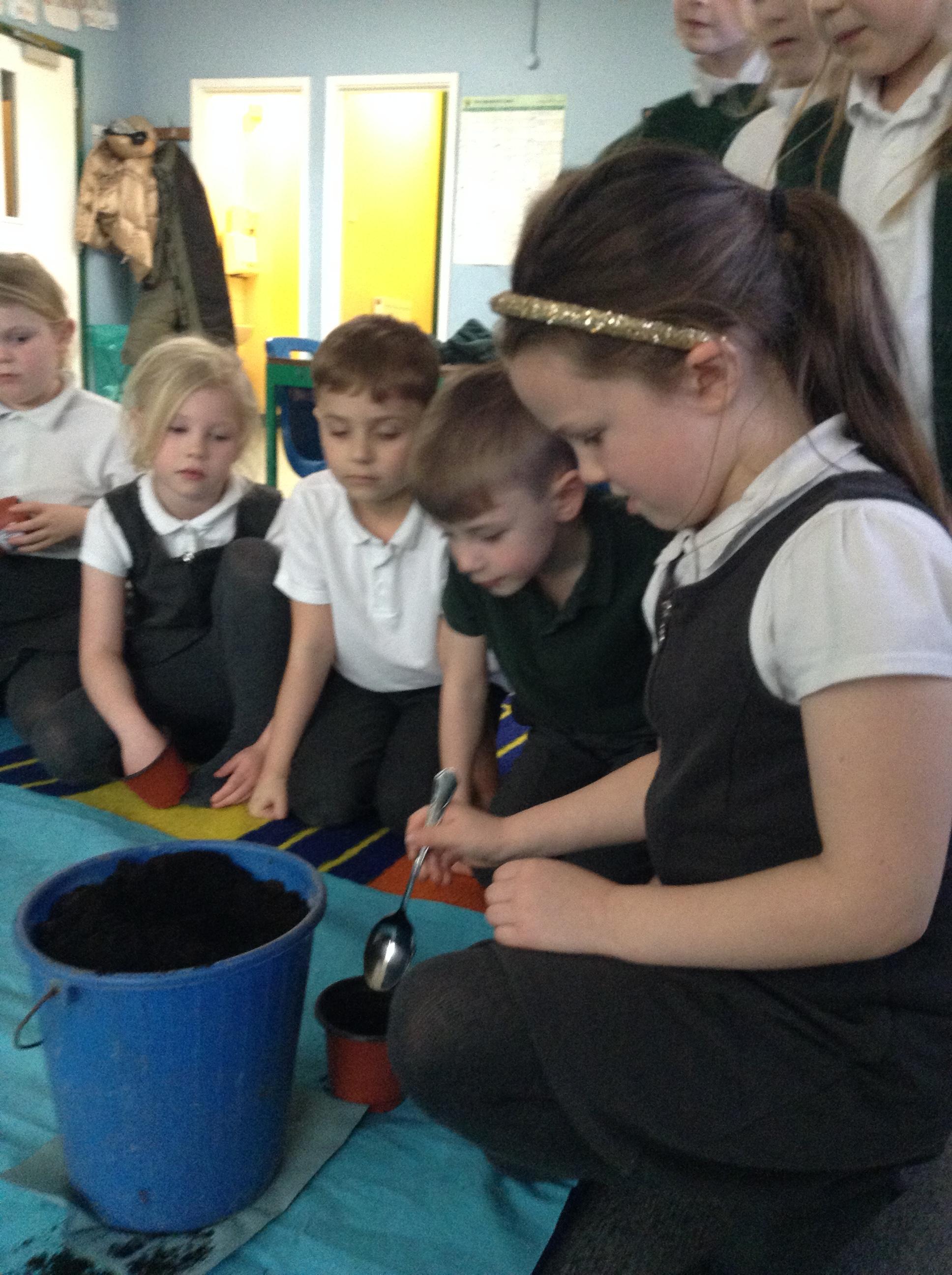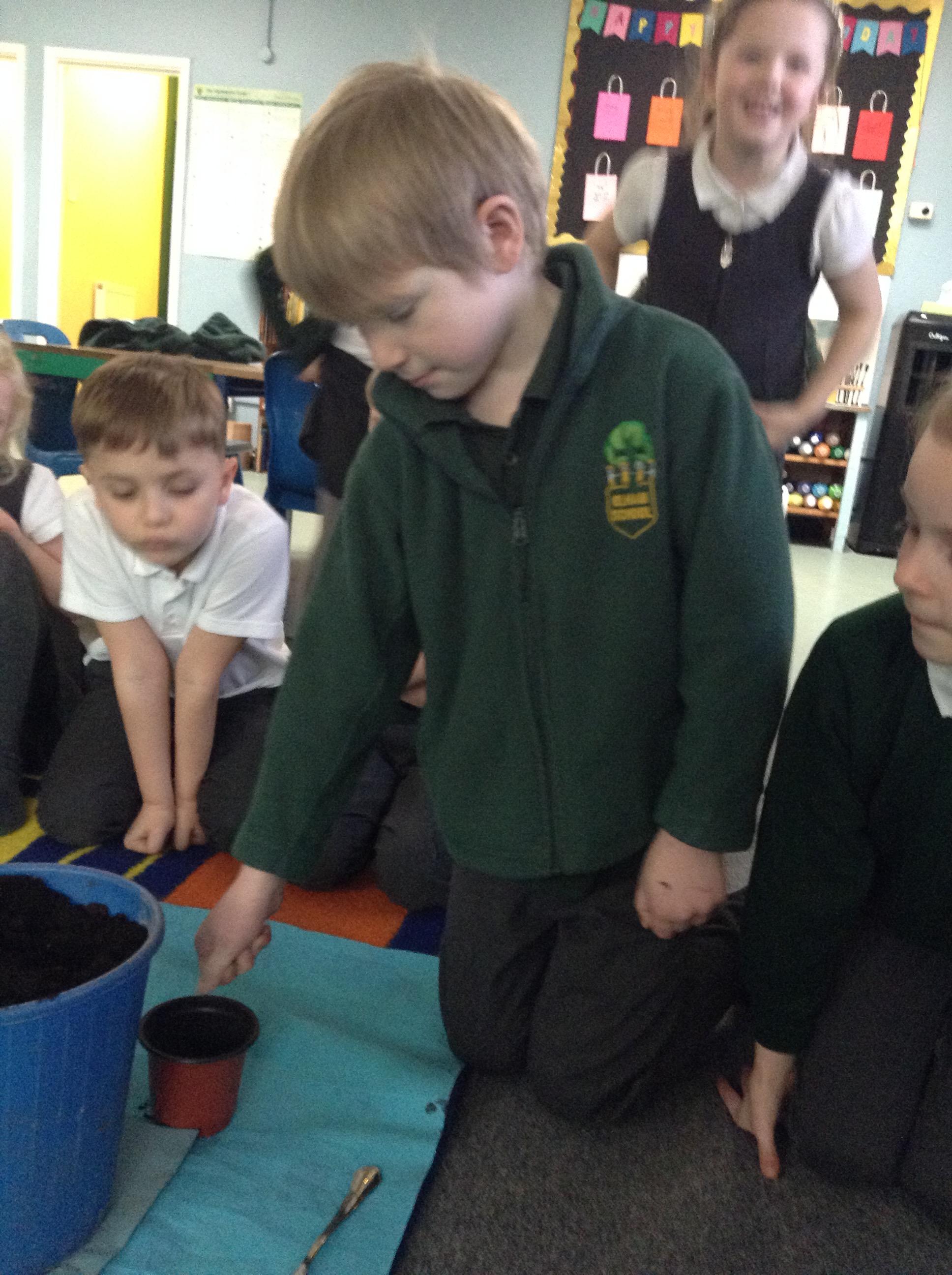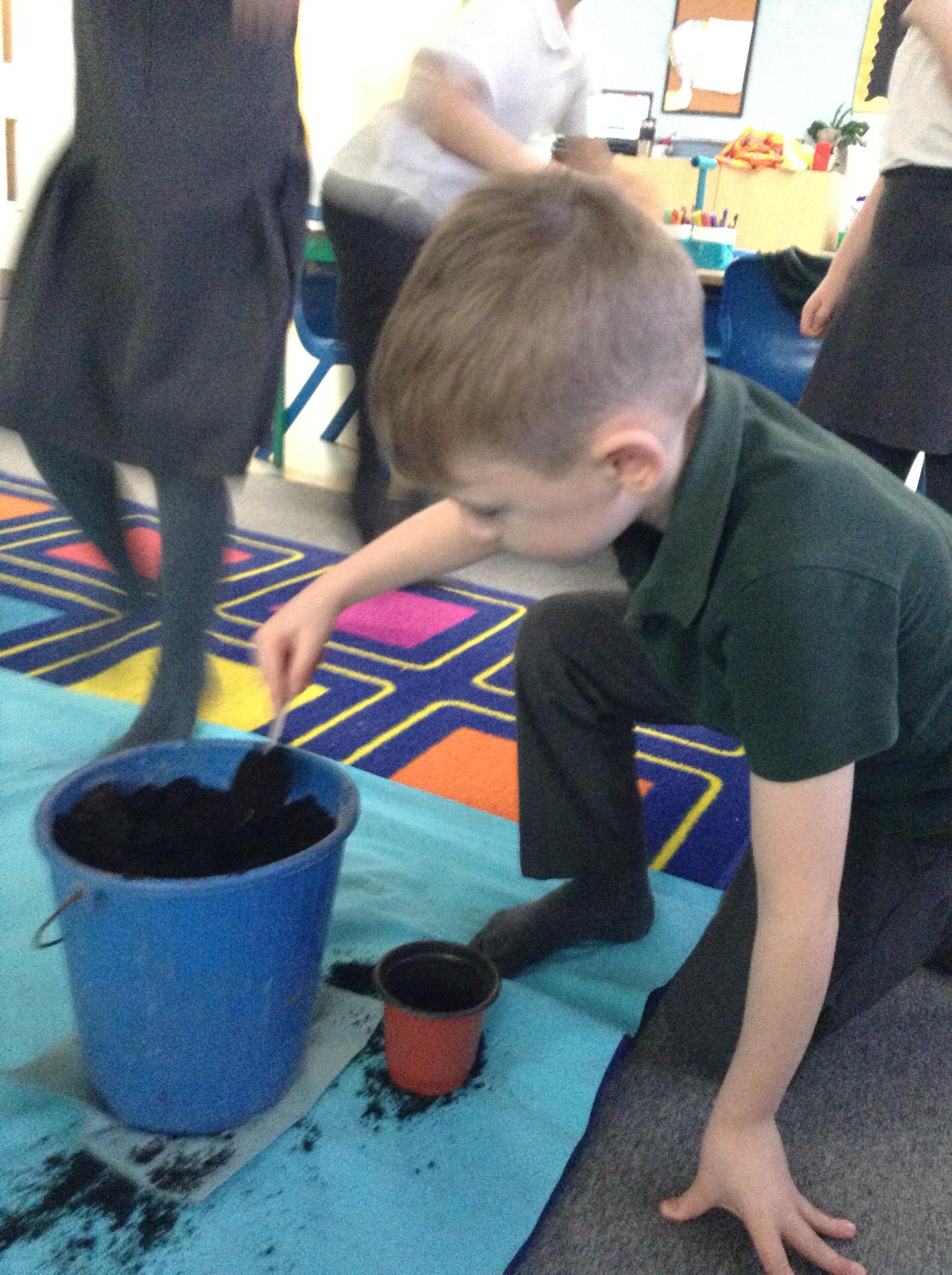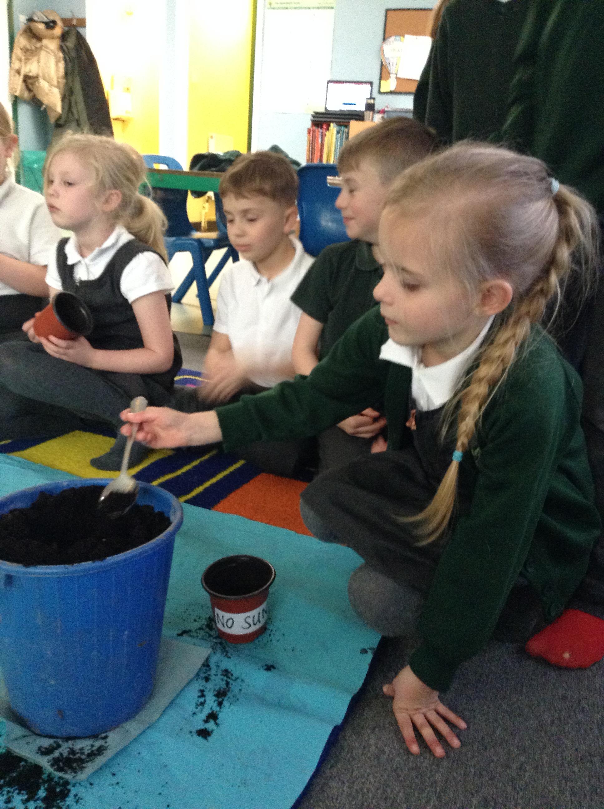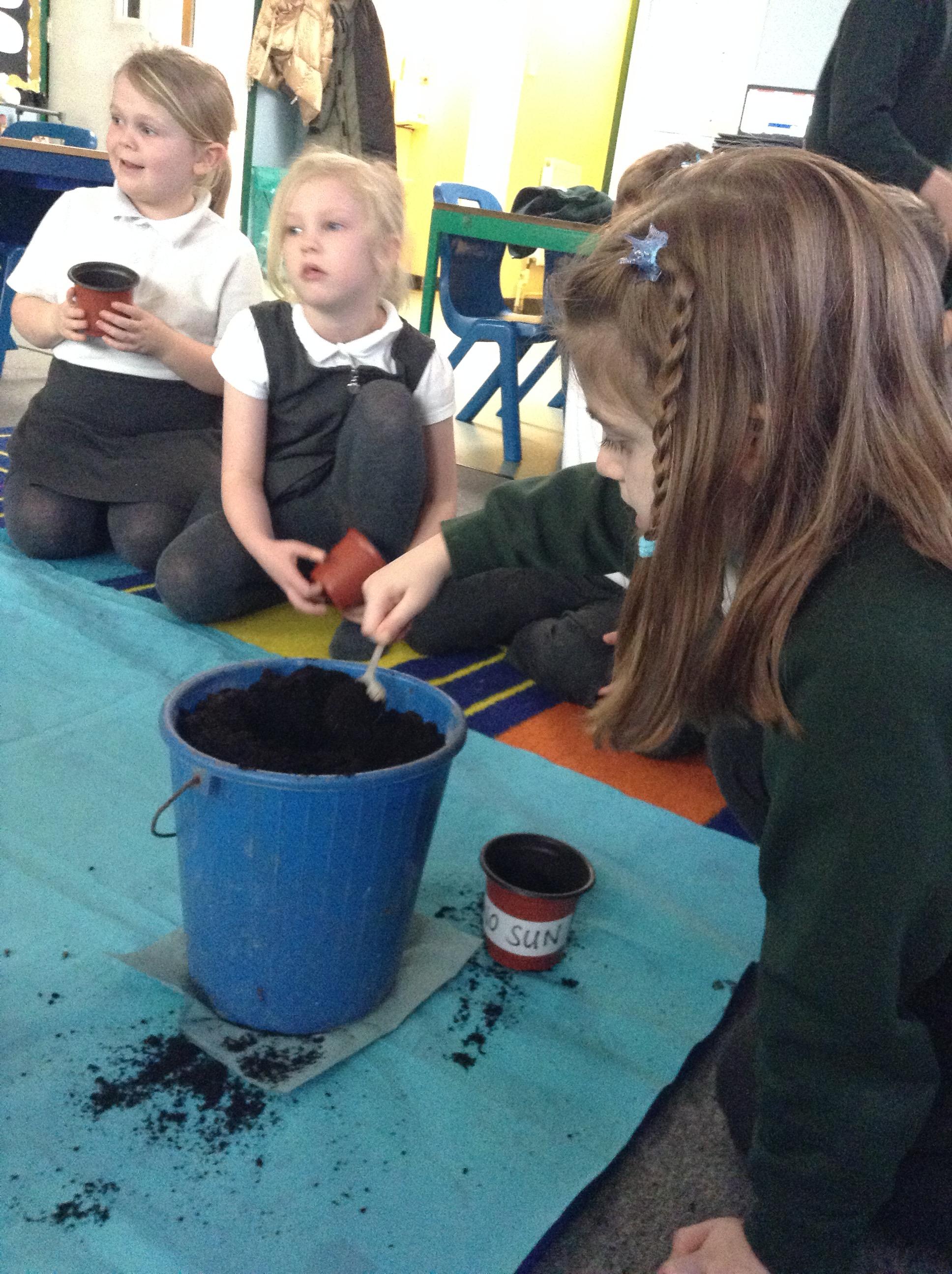 We have been finding out what conditions plants need for growth. We then planned a comparative test - we planted seeds into pots and will give some of the pots warmth, sunlight and water and some pots will miss out on either water, sunlight or warmth. The children enjoyed making predictions about which plants will grow (or not)