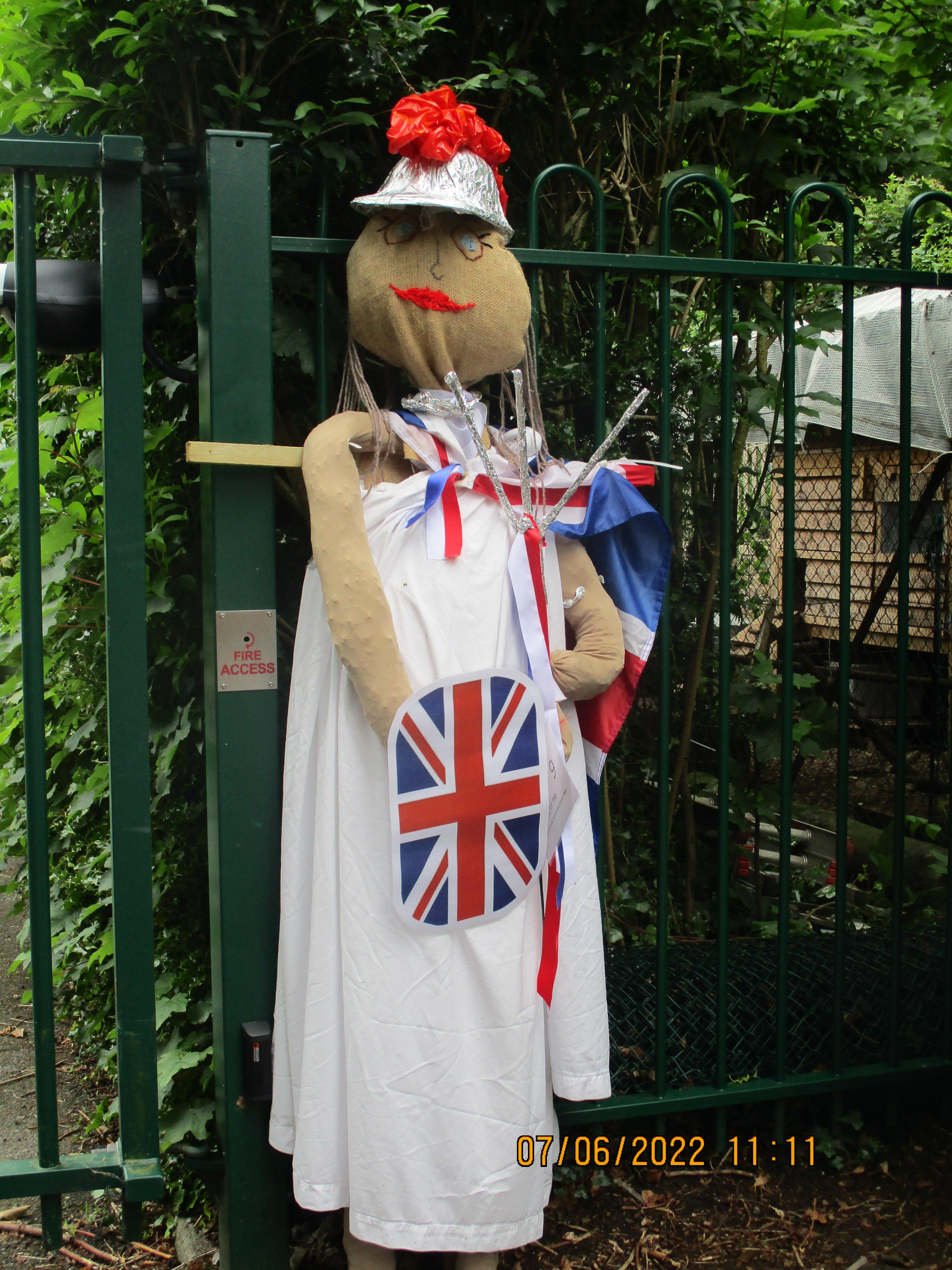 Of course we cannot talk about the end of this month and the beginning of the next without mentioning the queen's Platinum Jubilee. Each class had created a royalty-themed scarecrow for the annual village competition and Oak class decided to make theirs to look like Britannia. Have a look below for a photo.