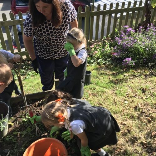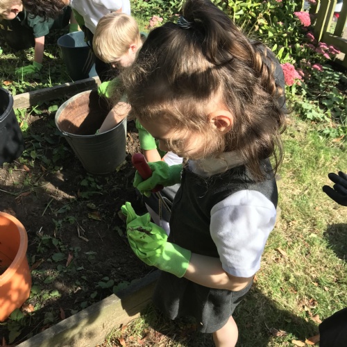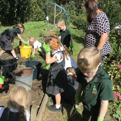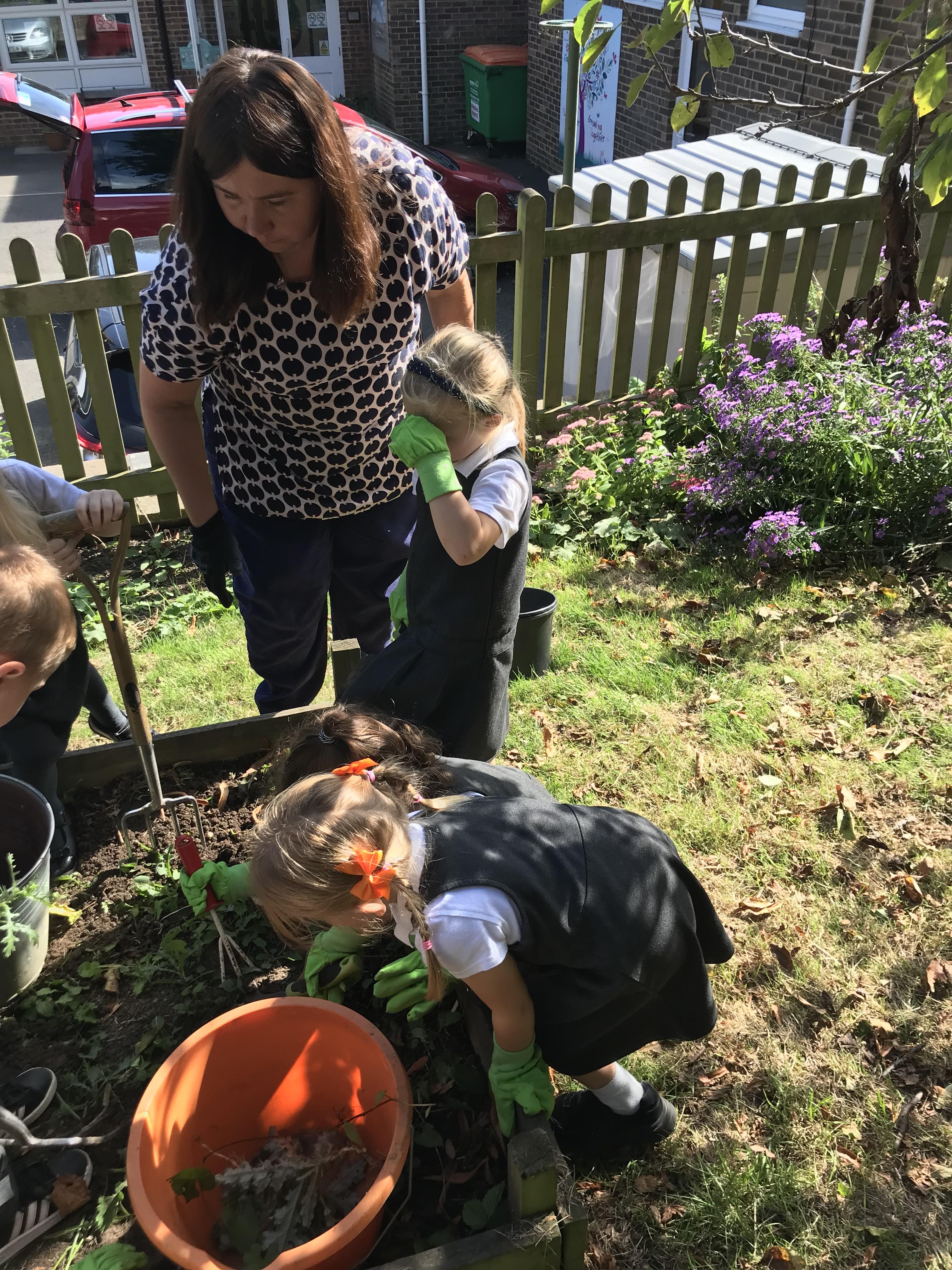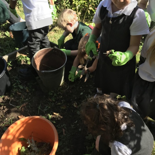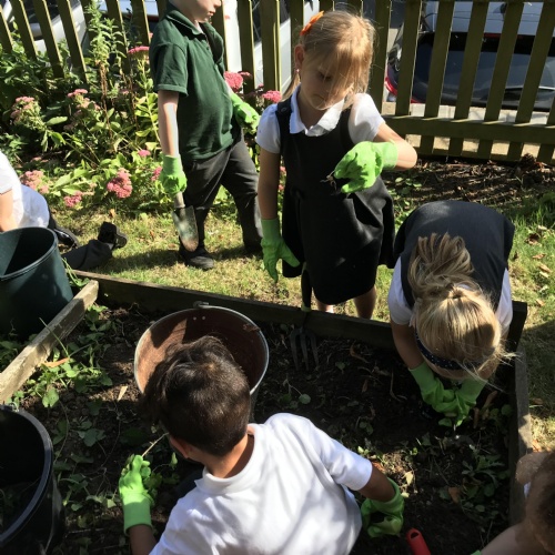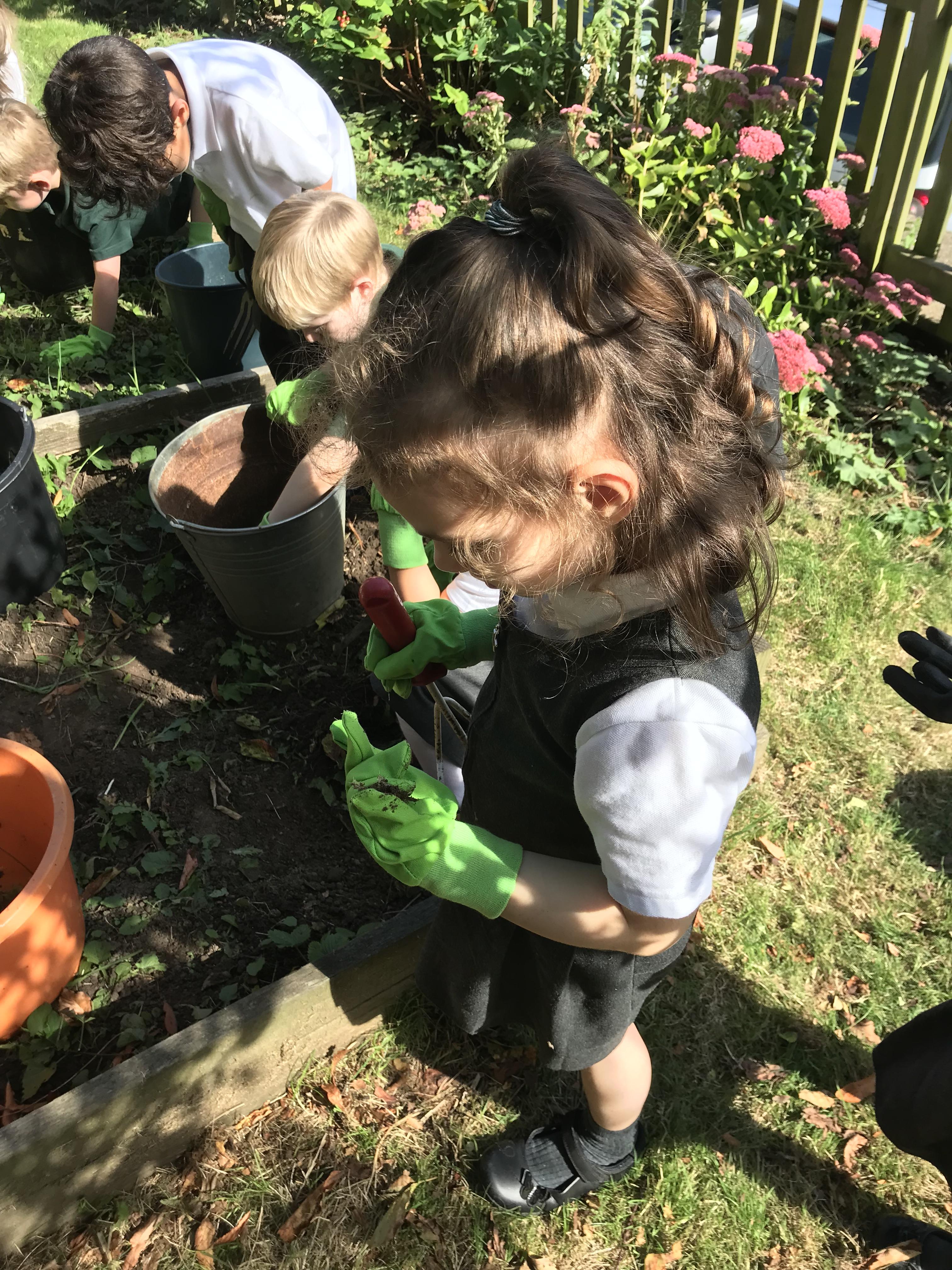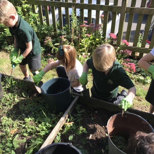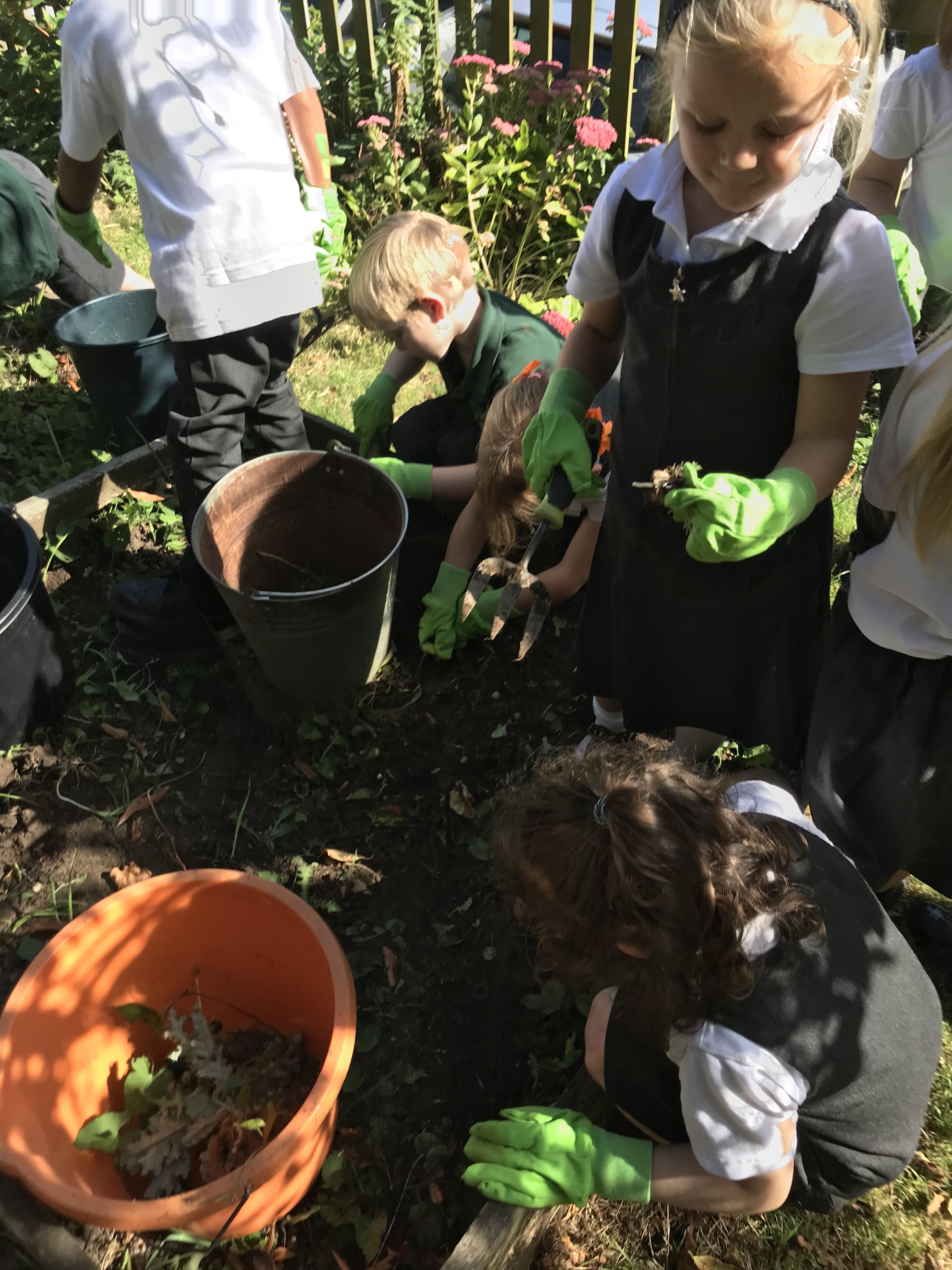 We have been gardening! First of all we had to clear the plot of weeds, then we sowed spinach. Over the week we will also sow broad beans and plant some spring flowering bulbs.