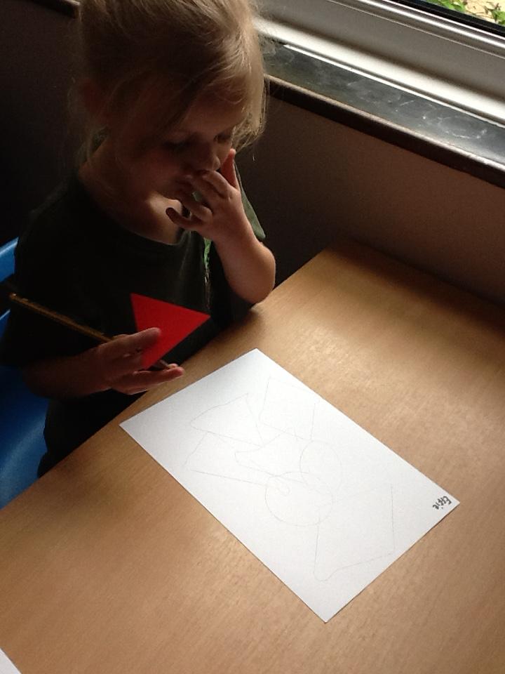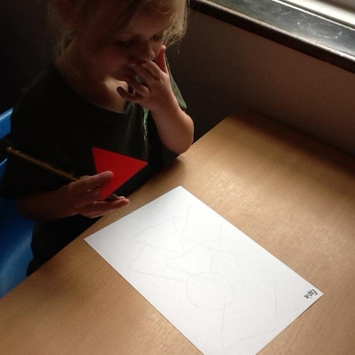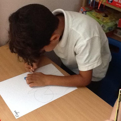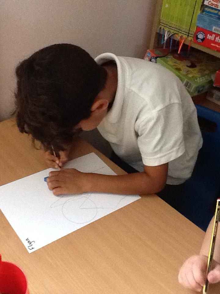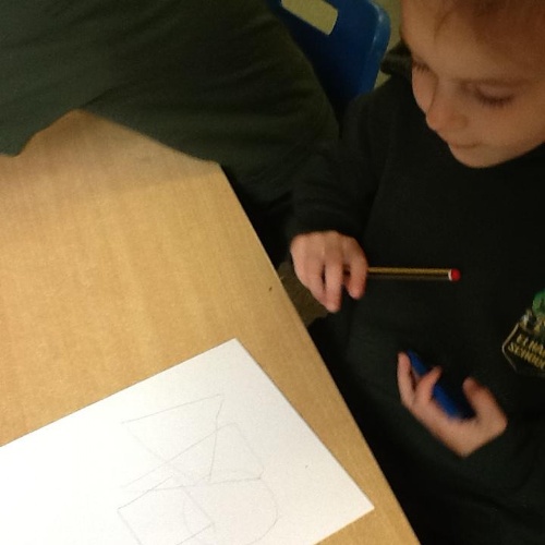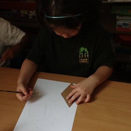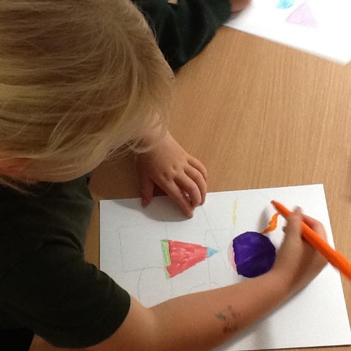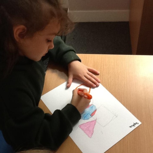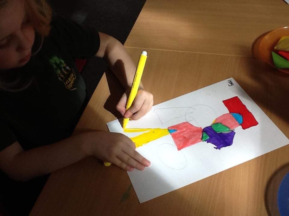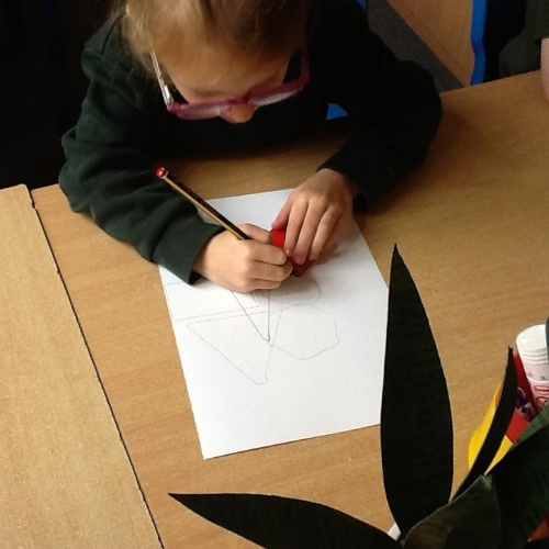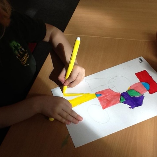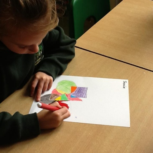 The quietest lesson of the week is always Art. The children are so focussed doing something they clearly enjoy, it's a shame every lesson can't be art! This week the children have created abstract pictures using geometric shapes and different media: crayon, pencils and felt tips.