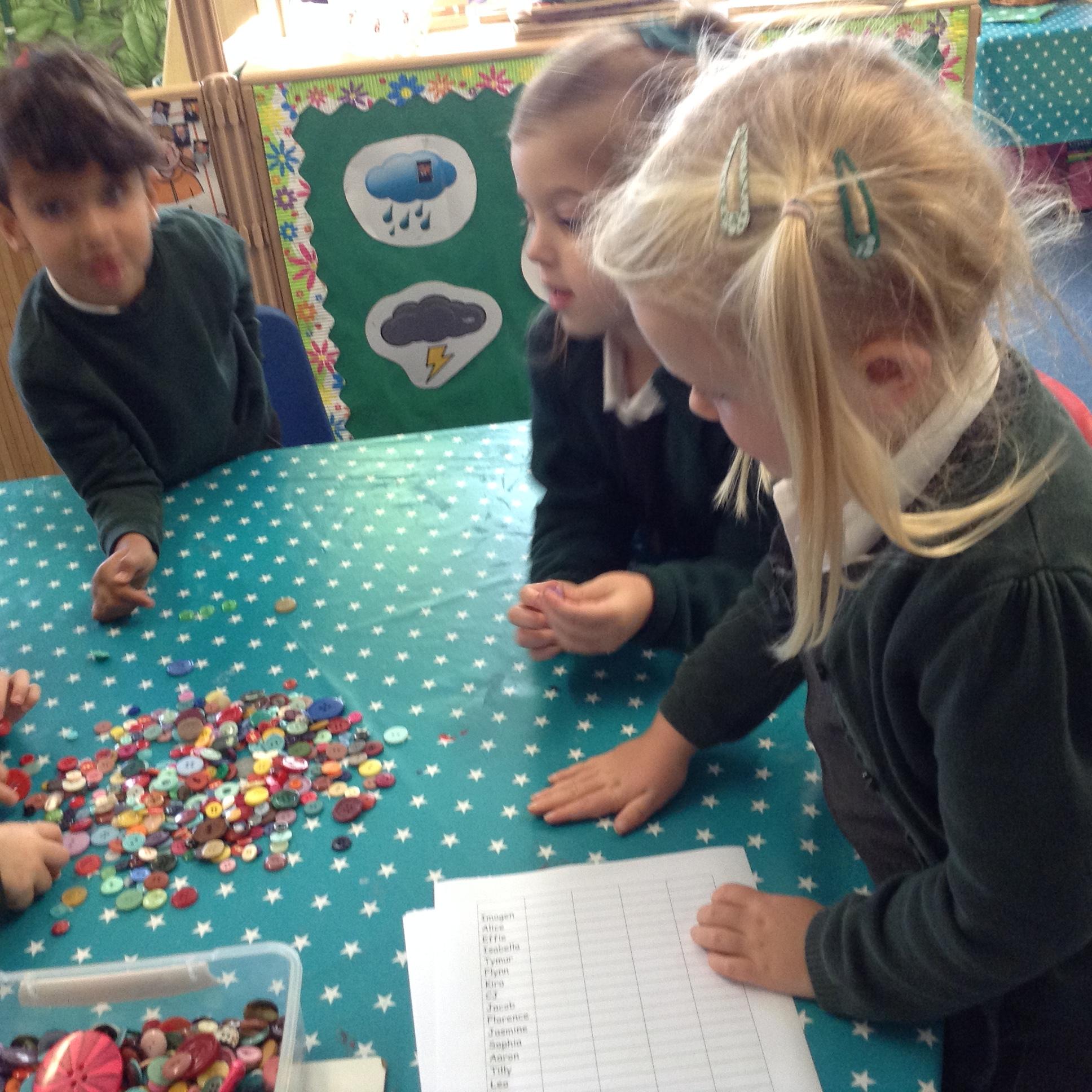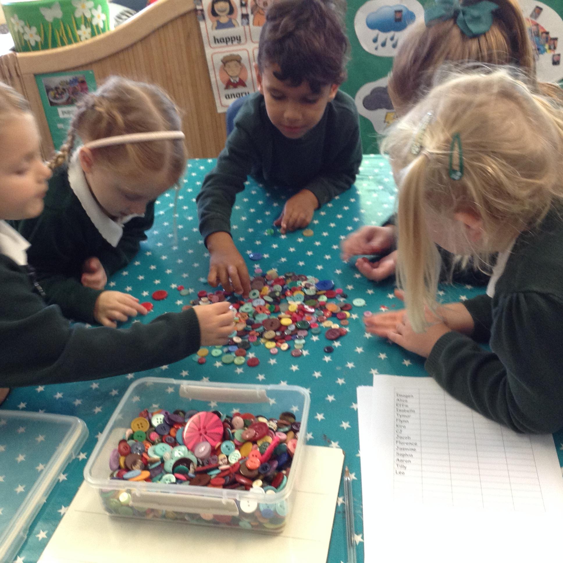We have also been sorting and matching for maths and had great fun sorting out lots of buttons.