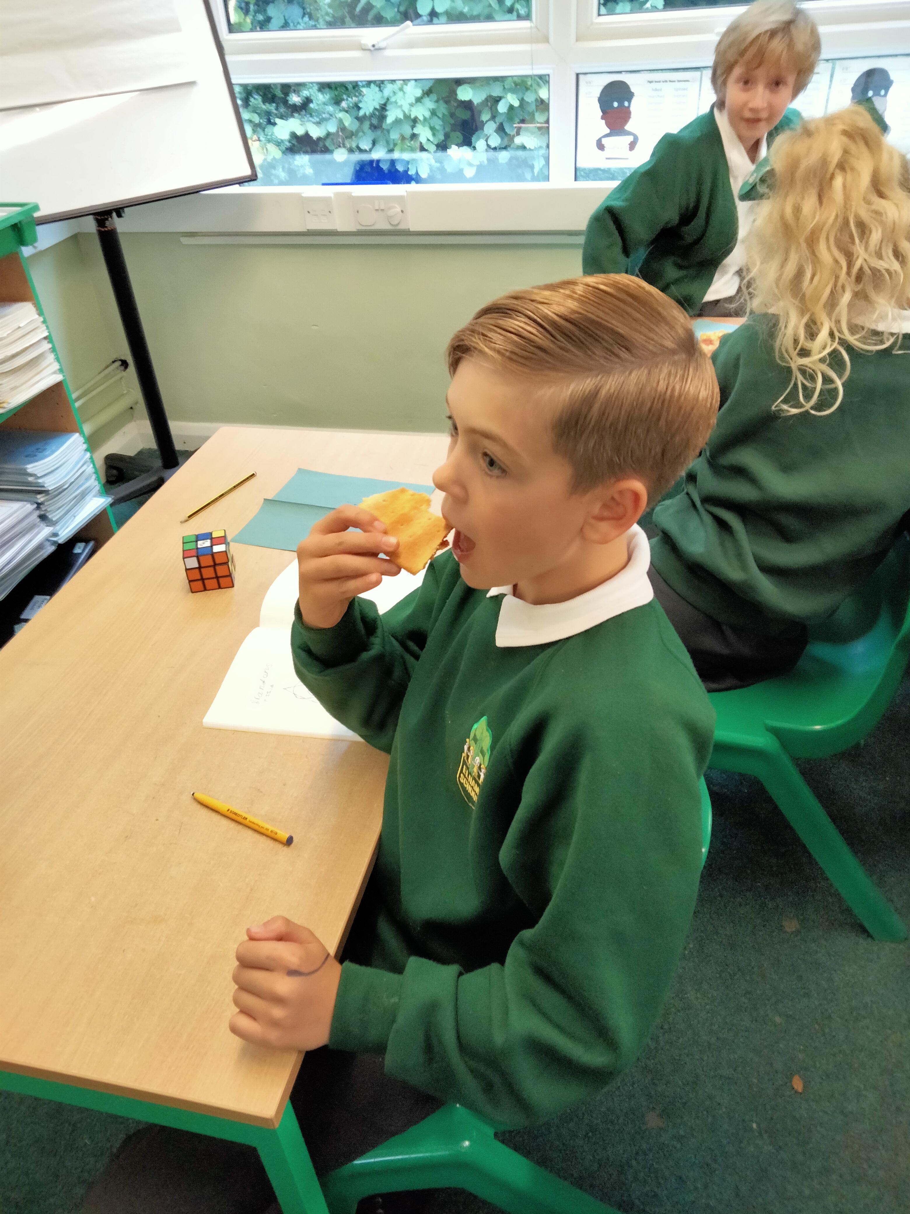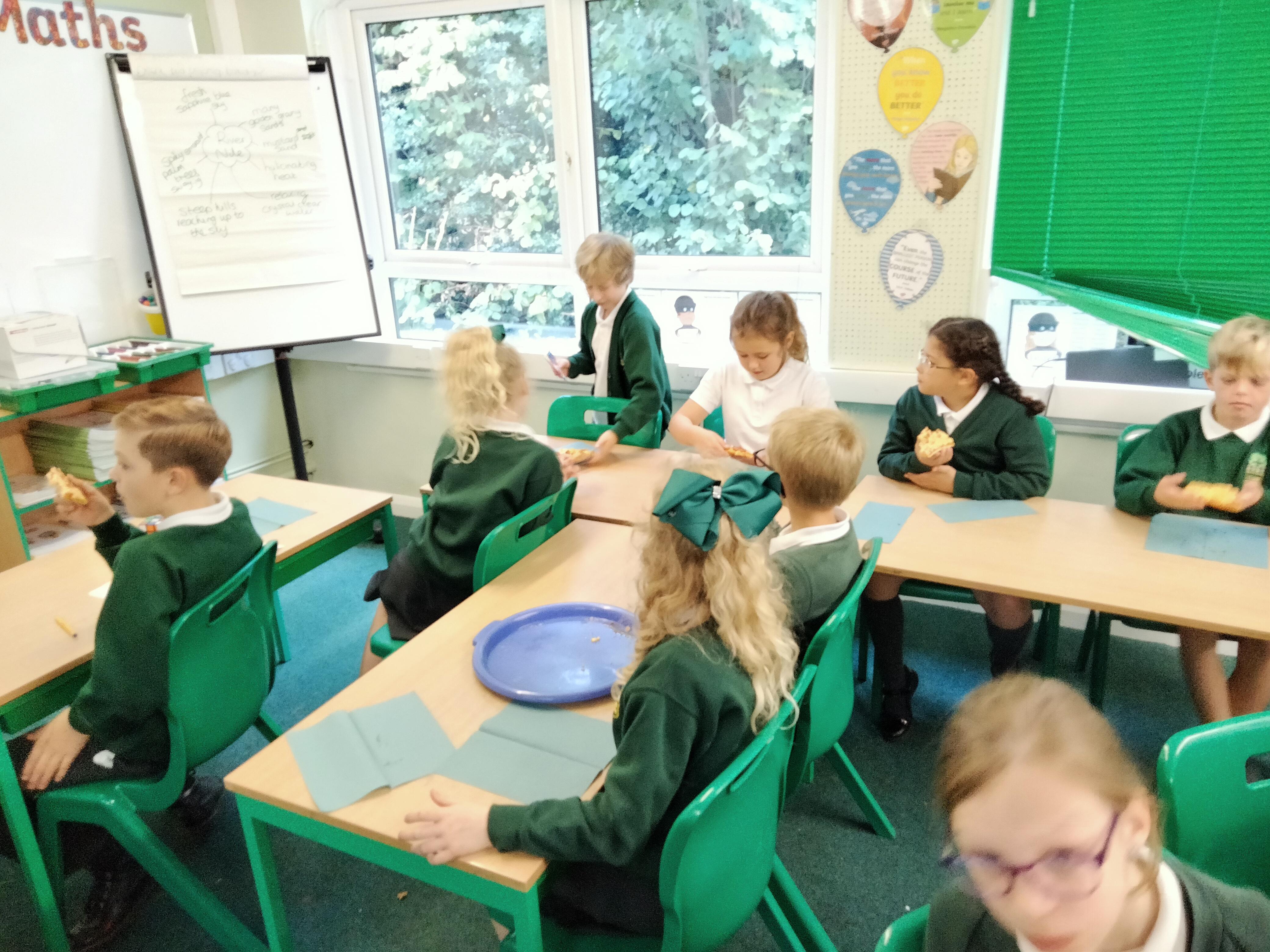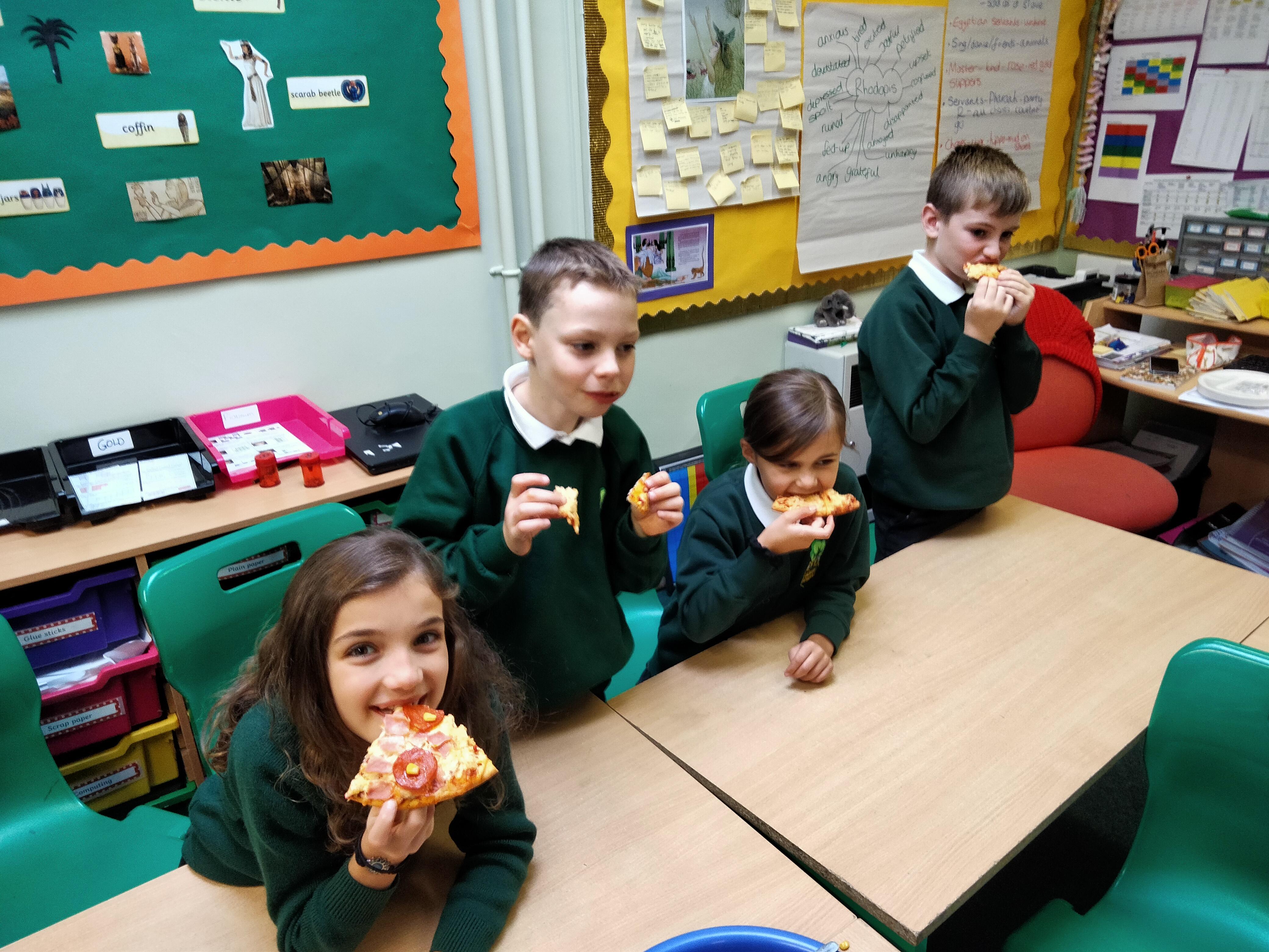 We've had a fun filled busy week doing a variety of different activities. We completed some blindfolded activities in RE, did a diamond 9 activity in Topic looking at the importance of the River Nile in Ancient Egyptian times. Some of us found the rounding in maths tricky, but after the second lesson we started to find strategies to help us and understood more about the concept. We began our new text in English; The Secrets of the Sun King, based on our Topic. Already, it's full of suspense and keeping us wanting to read on. We had a go at writing using suspense and making our writing intrigue the reader. Pizzas were made, the treat that Immanu'el chose for getting over 60 raffle tickets the week before last. We ate them whilst watching a video about space during our science lesson. We have been practising for our Harvest performance and have really enjoyed learning the song.