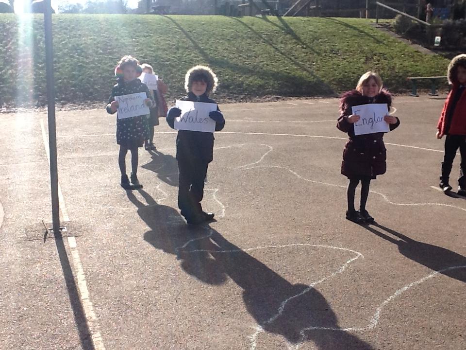 Mrs Fitzgerald used her amazing drawing skills to draw a big map of the United Kingdom for us on the playground. The children had to remember which countries make up the UK and where they are. They then learnt what the capital city of each country is. Keep practicing those capital cities as we found them a lot harder than the countries!