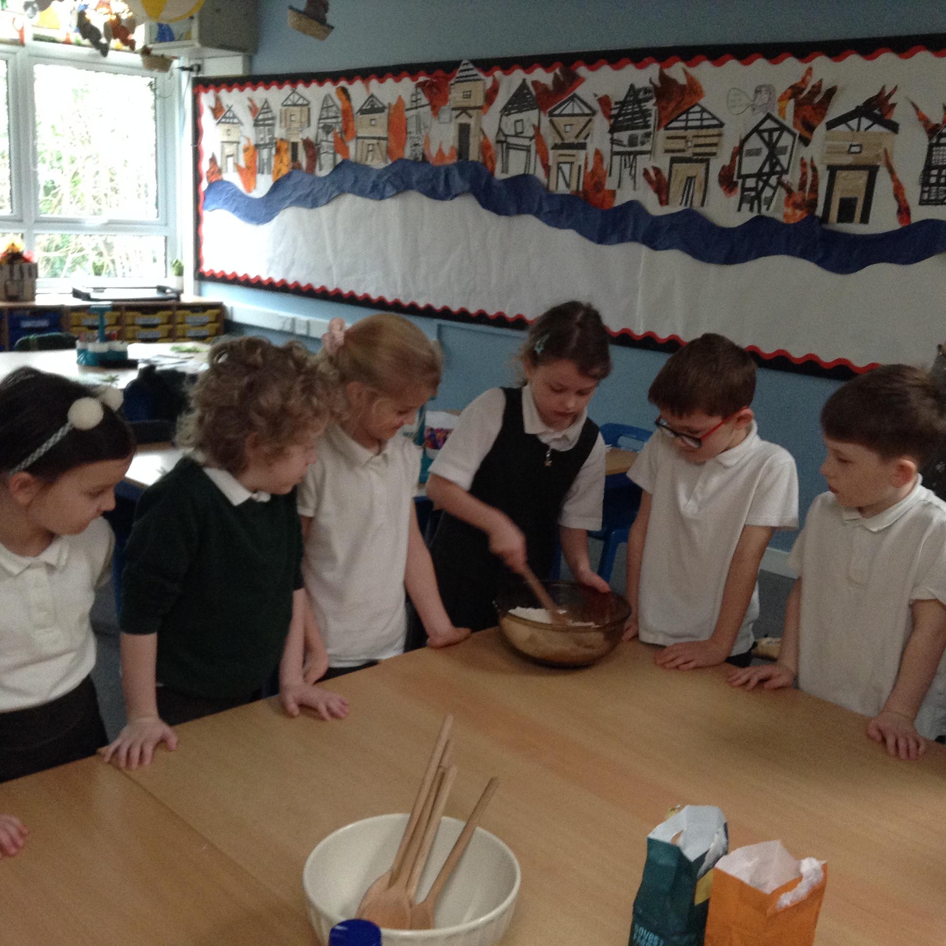 Today we have been making Manchet and Carter's bread. We found out about these breads last week and how they were eaten during the time of The Great Fire of London. Carter's bread is made from a mixture of rye and wheat flour and Manchet bread is made using fine white flour.