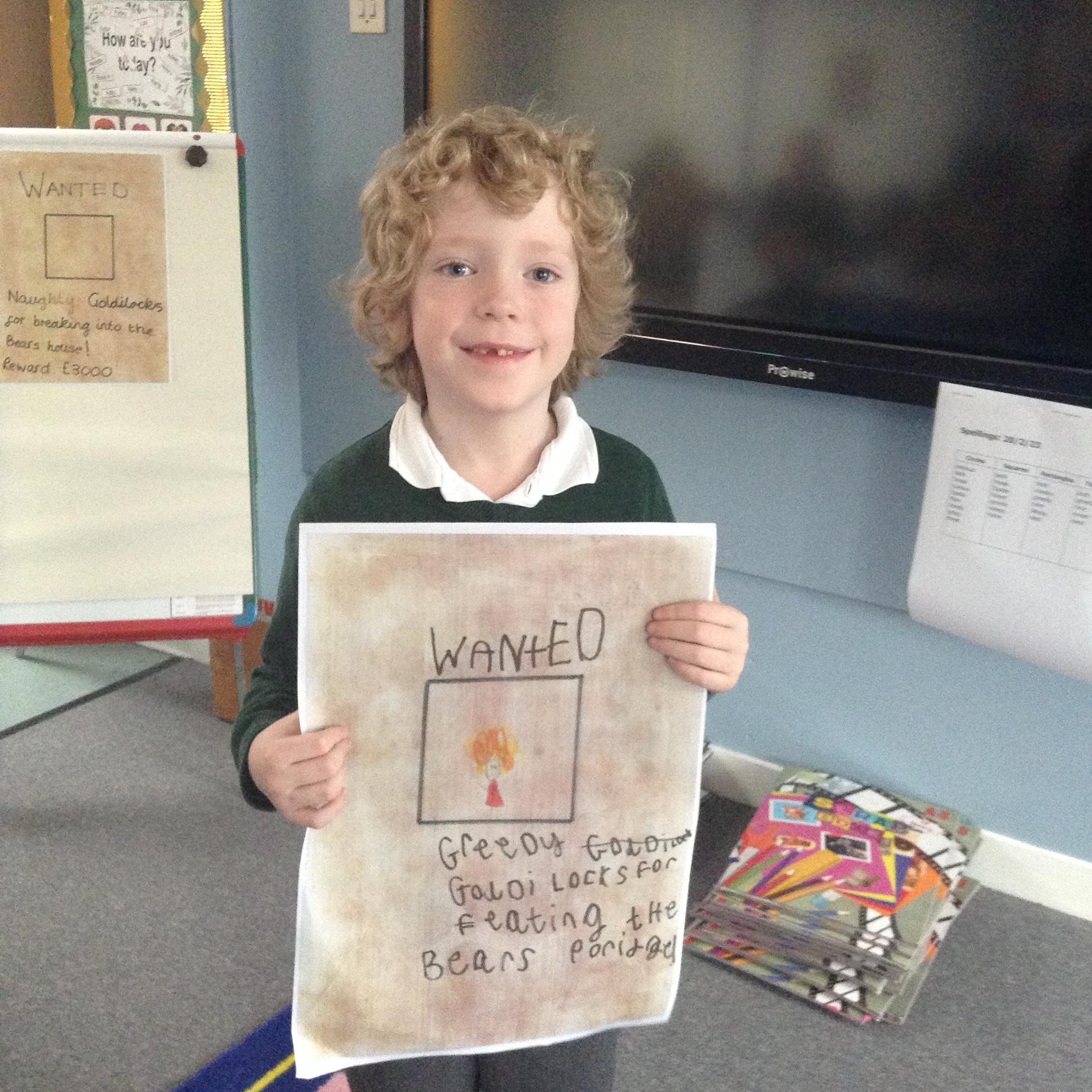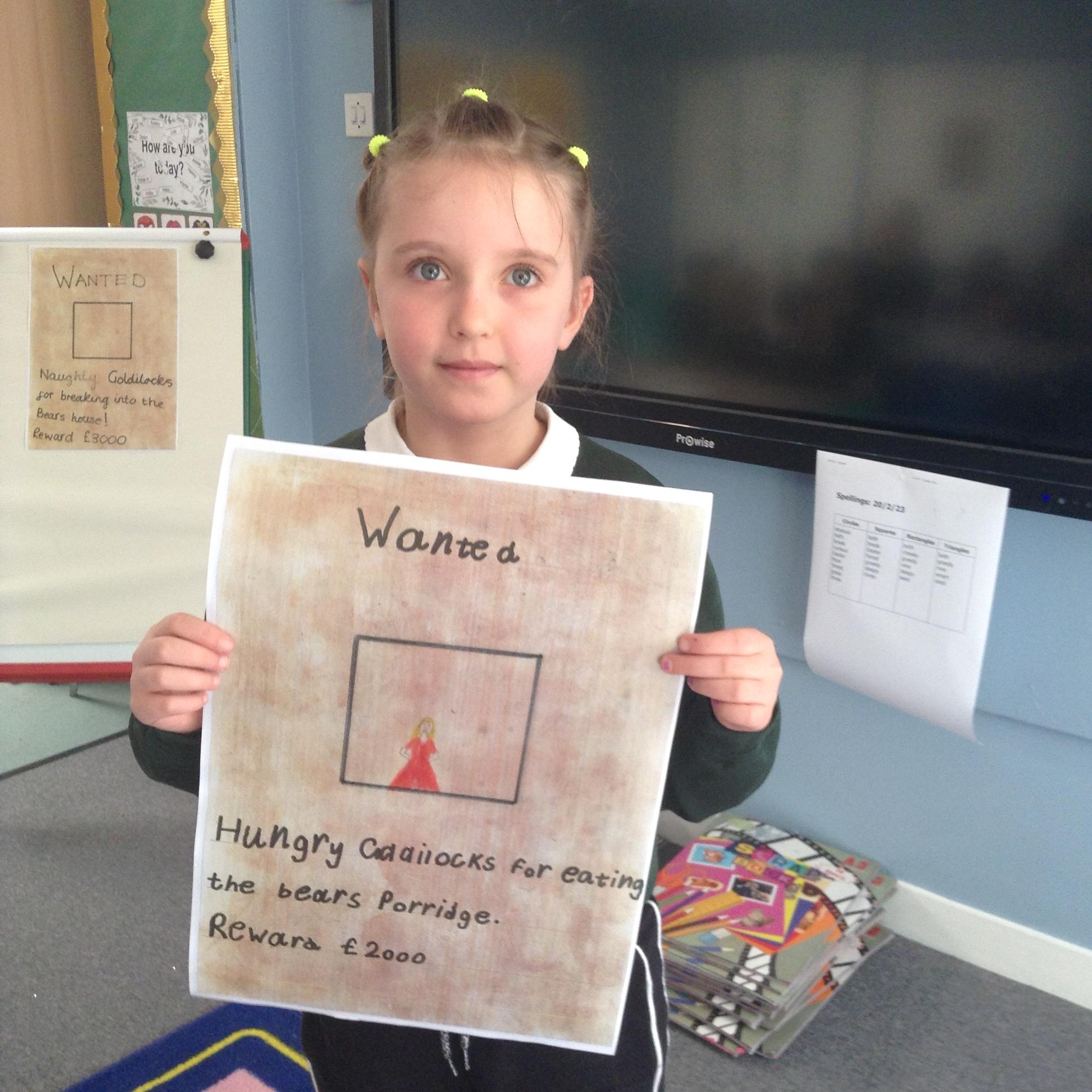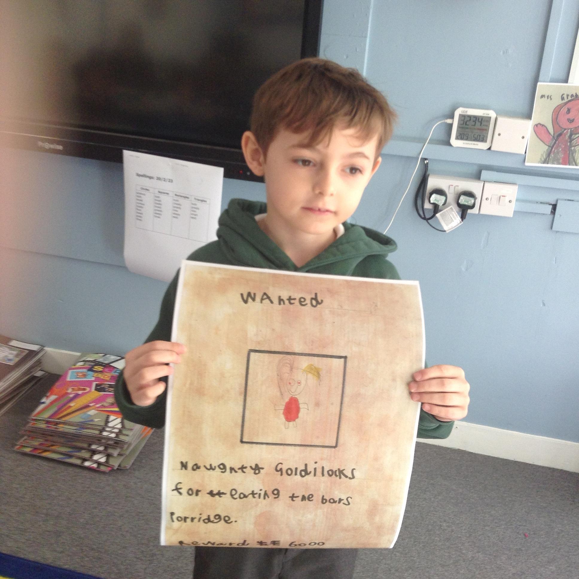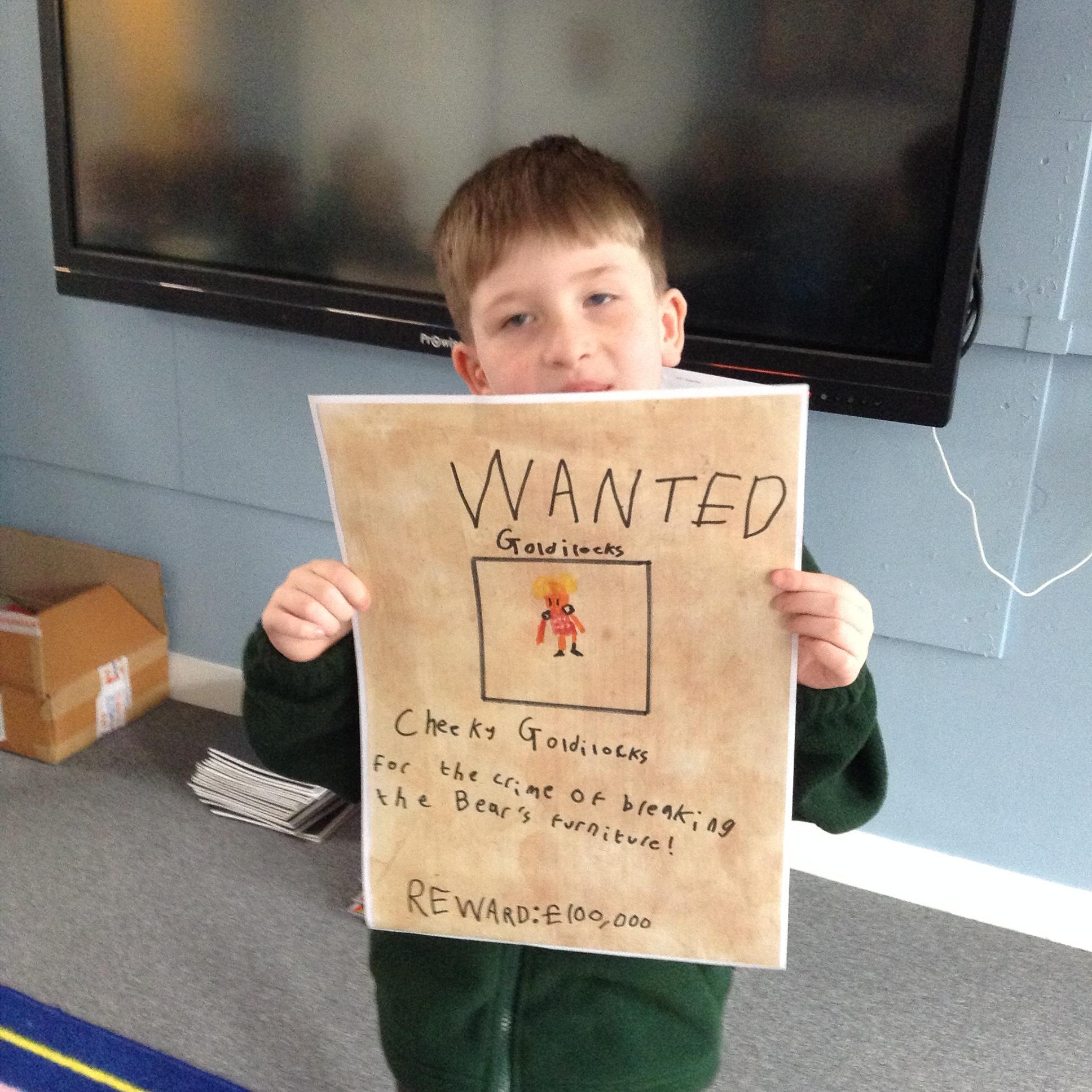 Goldilocks is still on the loose! The children have made wanted posters using adjectives to describe the actions of Goldilocks.