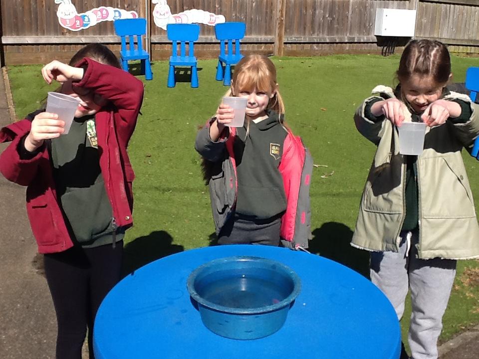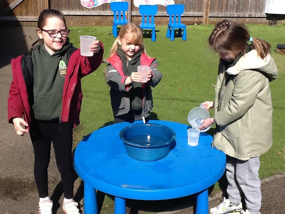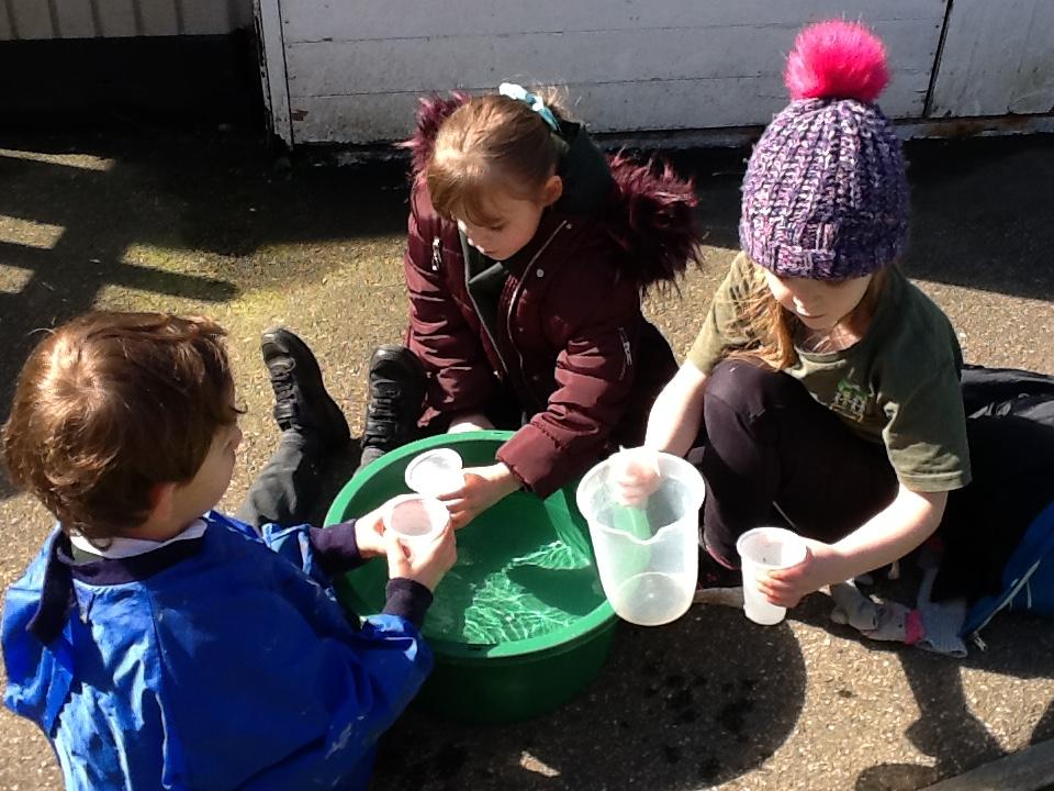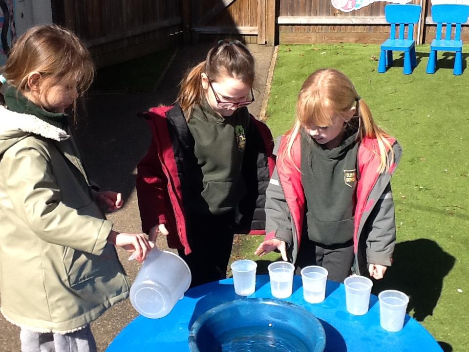 Last week the children learnt the difference between capacity and volume (and so did their teachers!). Capacity is how much a container can hold, volume is how much liquid is in the container. Today the children worked practically, filling containers with different volumes of water and putting them in order: empty, nearly empty, half empty/full, nearly full and full. Then they estimated how many beakers they needed to fill a jug and filled it to see if their predictions were correct.