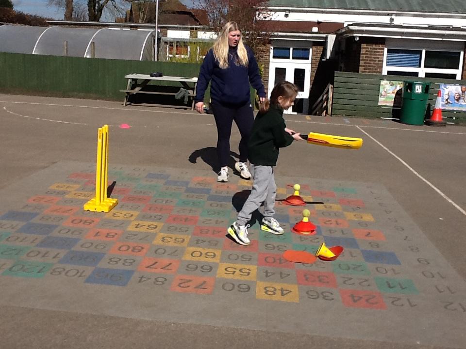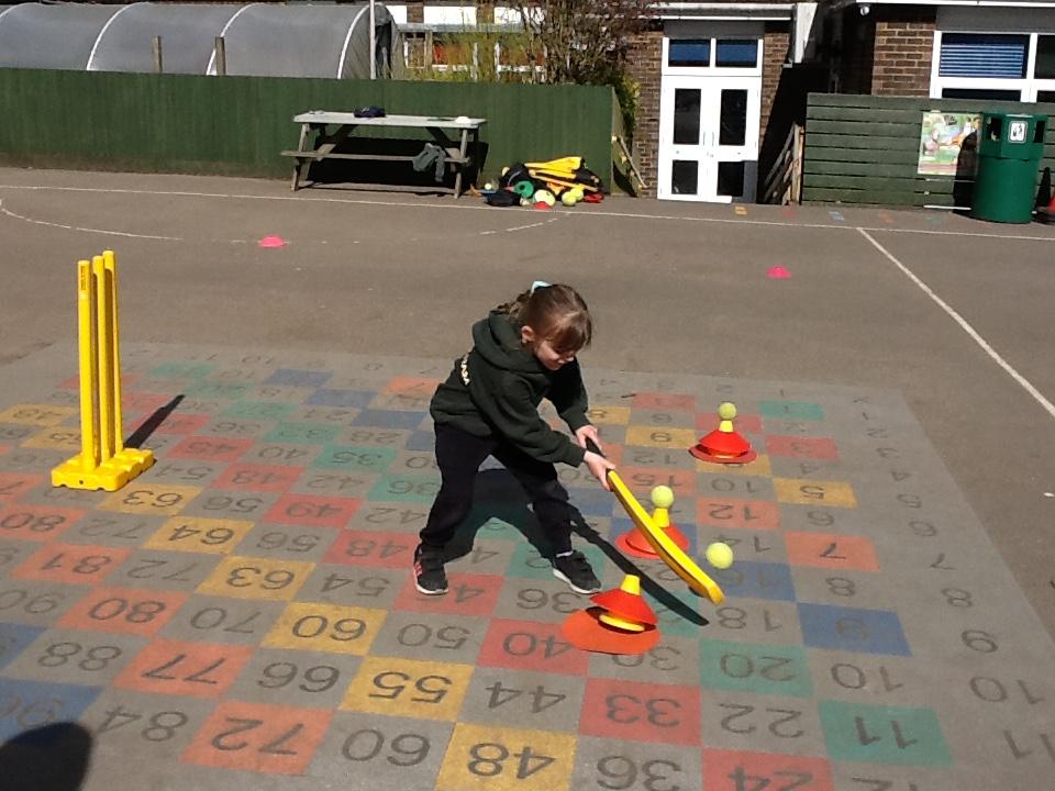 The children had a special cricket lesson today. There were only nine of them so they had lots of turns at everything! As always their behaviour was great with our visitor. The children learnt different skills: rolling, catching, fielding and hitting the ball.