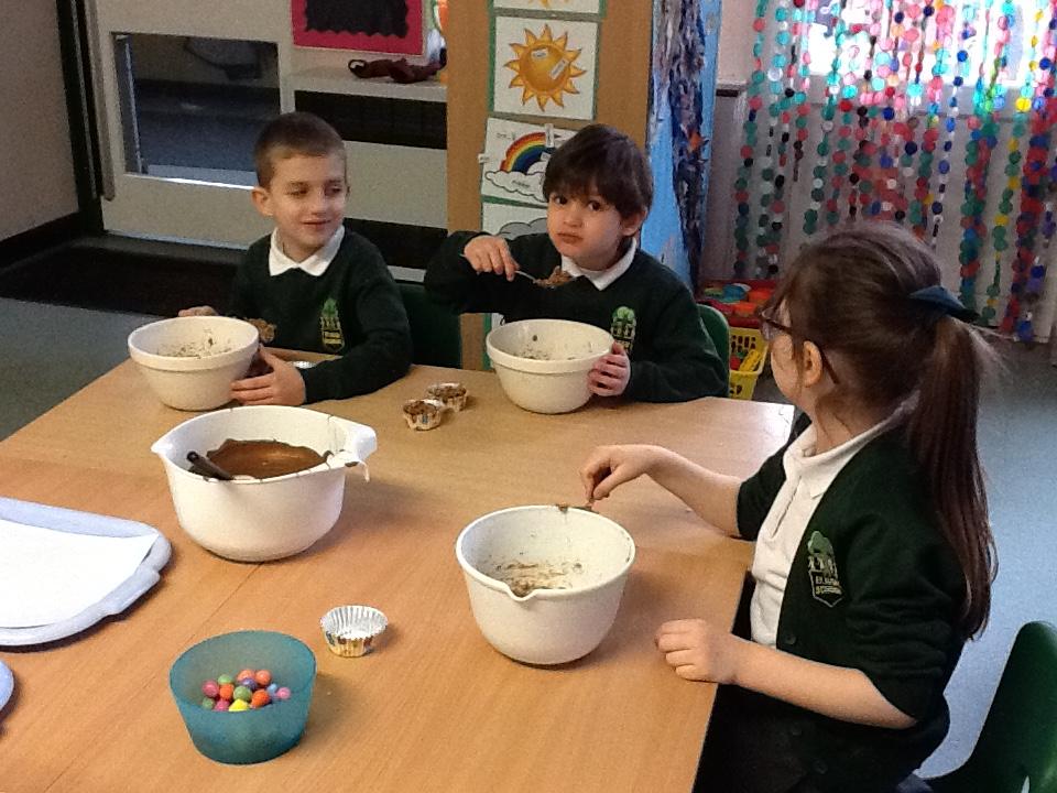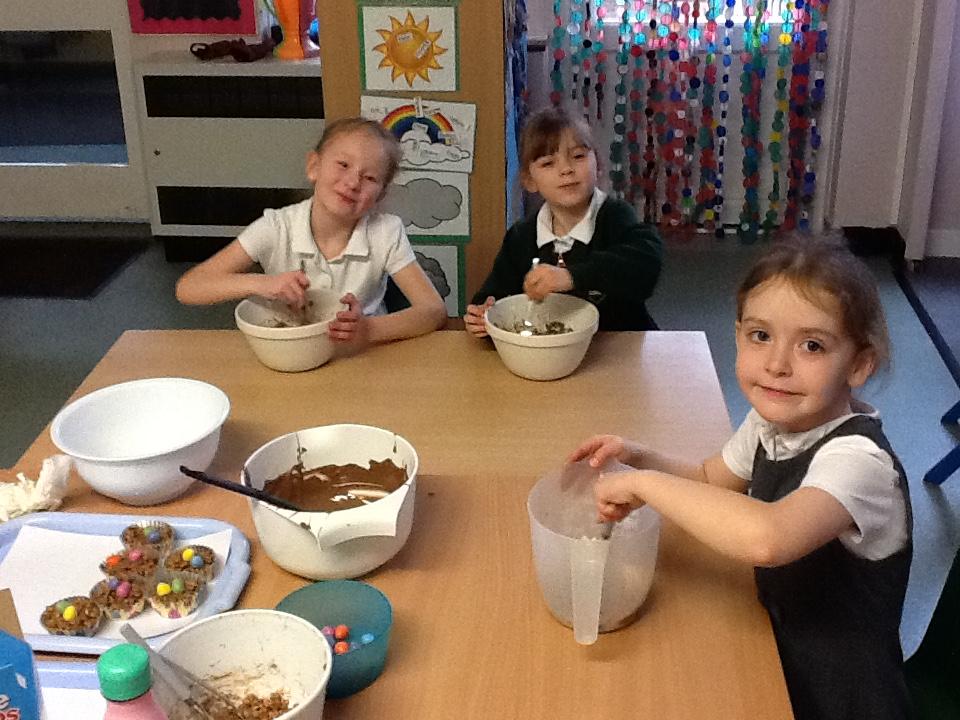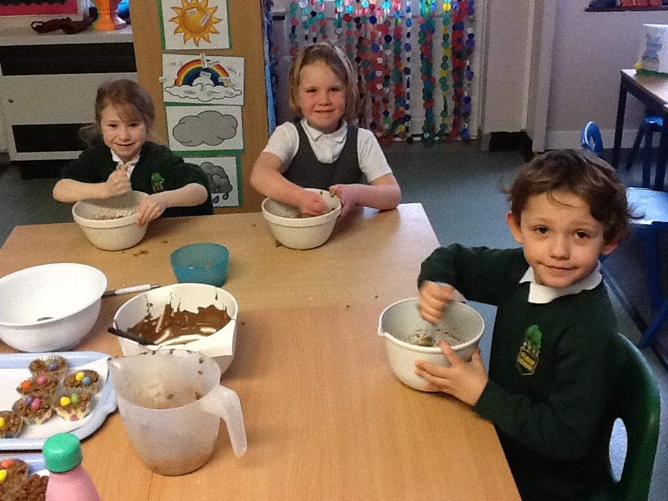 The children loved making their Easter cakes, hopefully they will make it home to you in one piece! Some of us have tasted them already as the temptation of licking the spoon was just too much!!